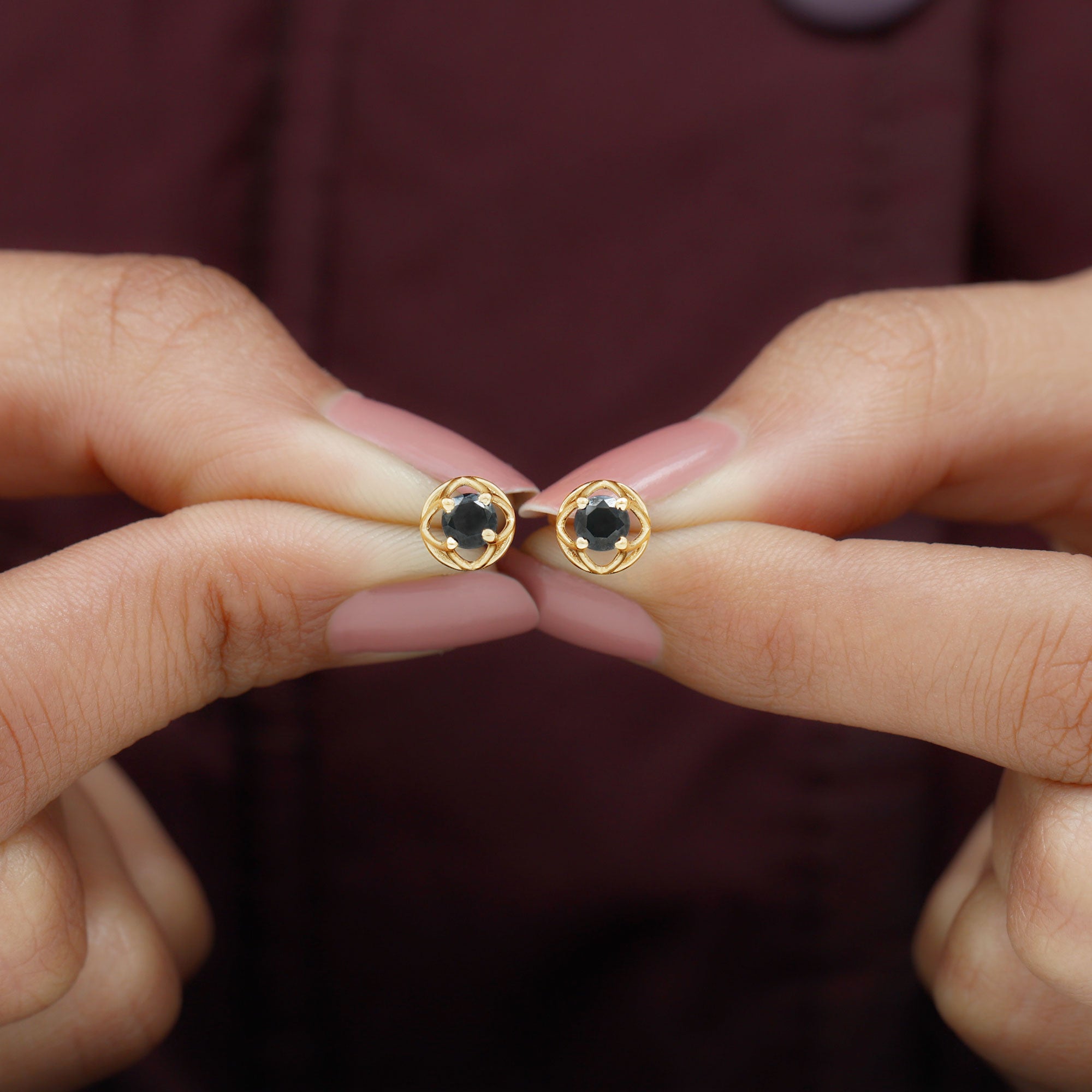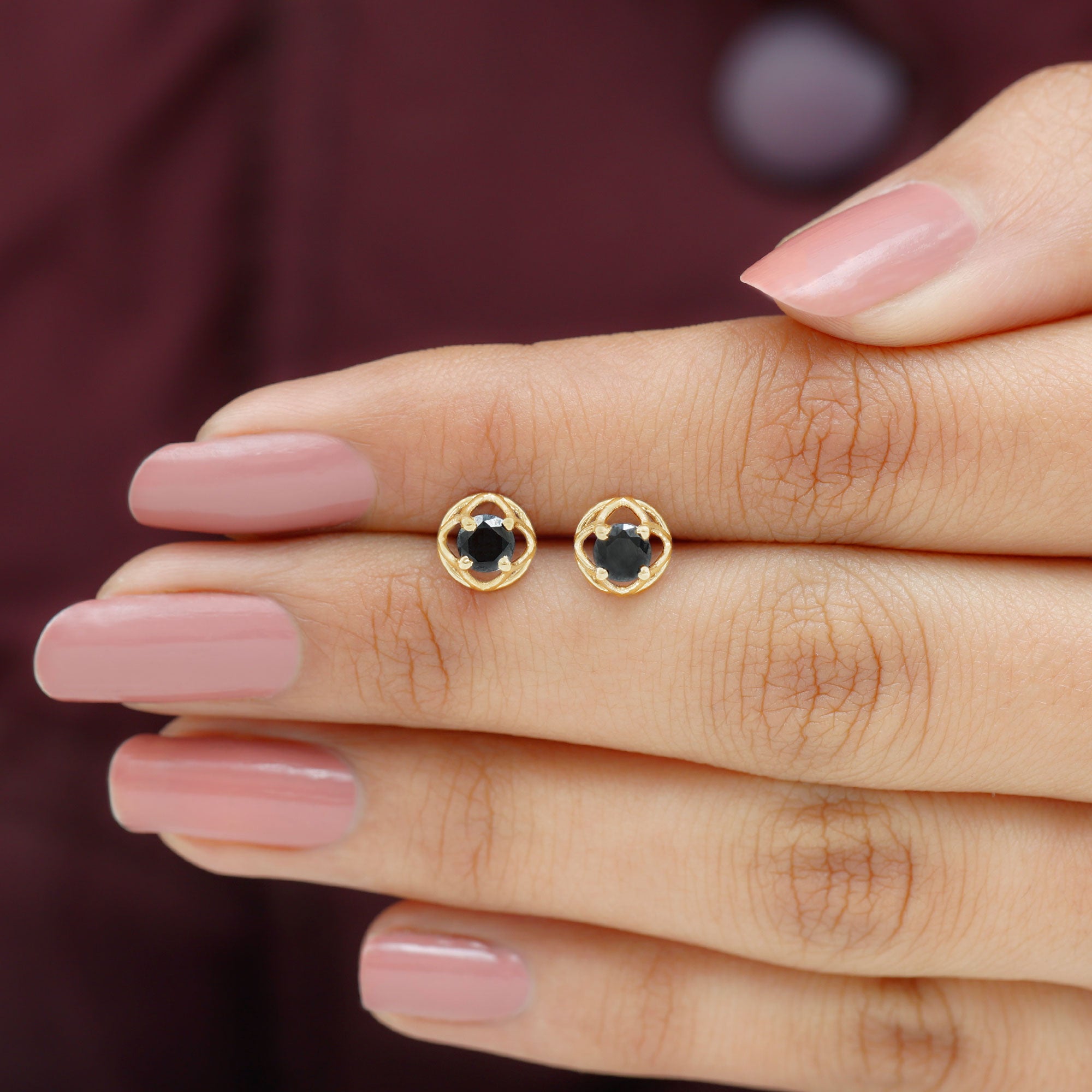 5 MM Black Onyx Solitaire Floral Stud Earrings in Prong Setting