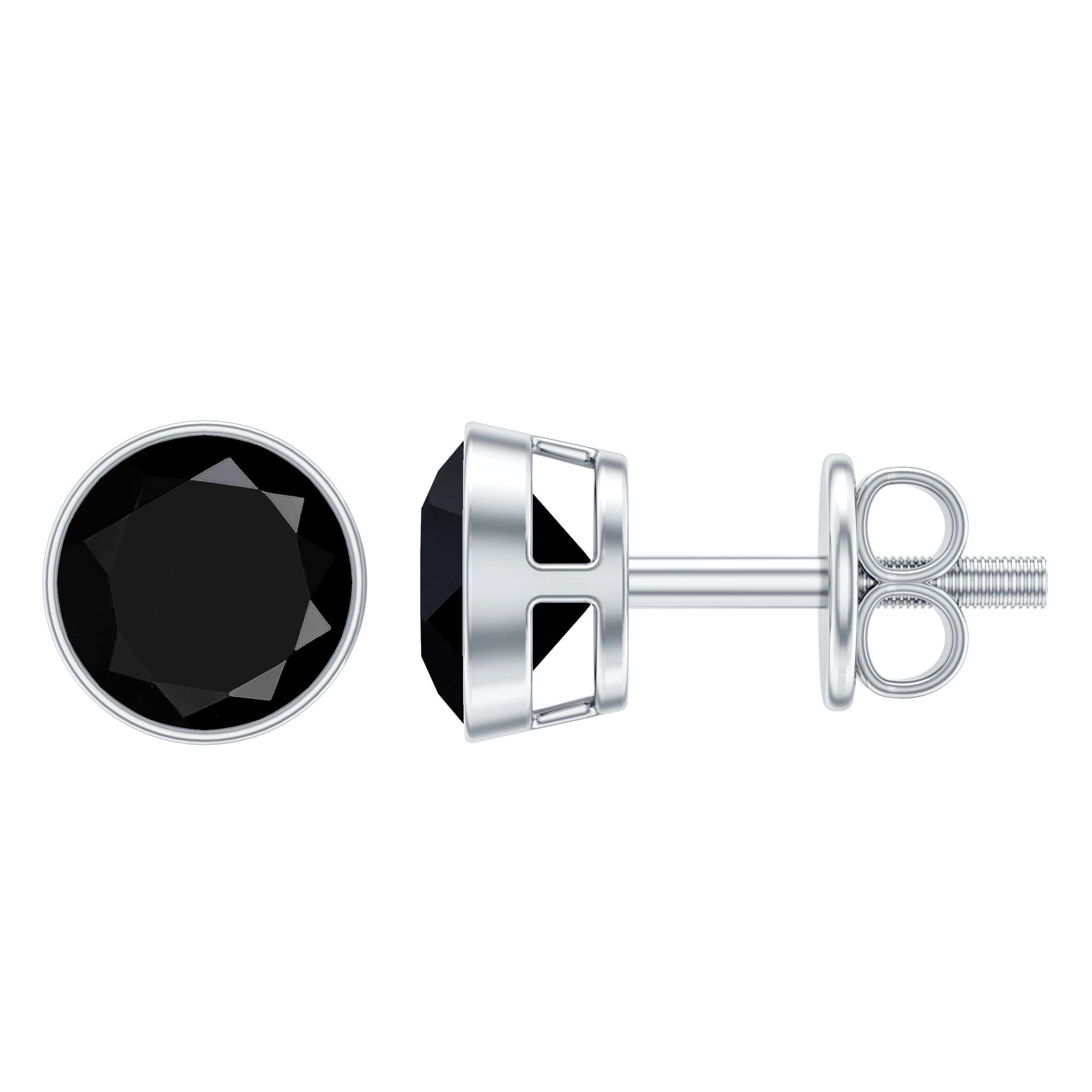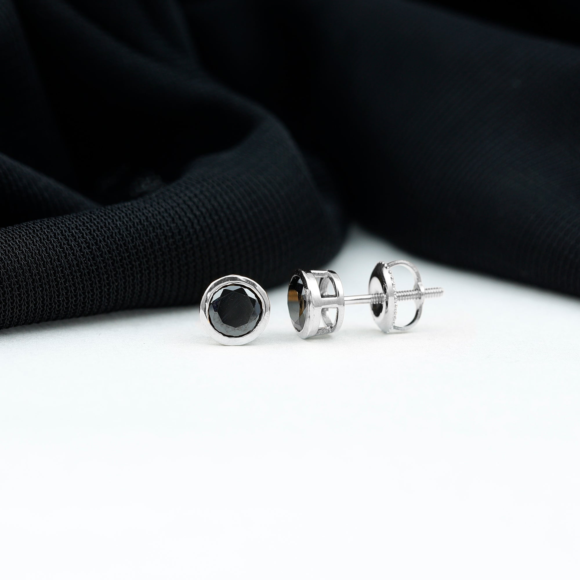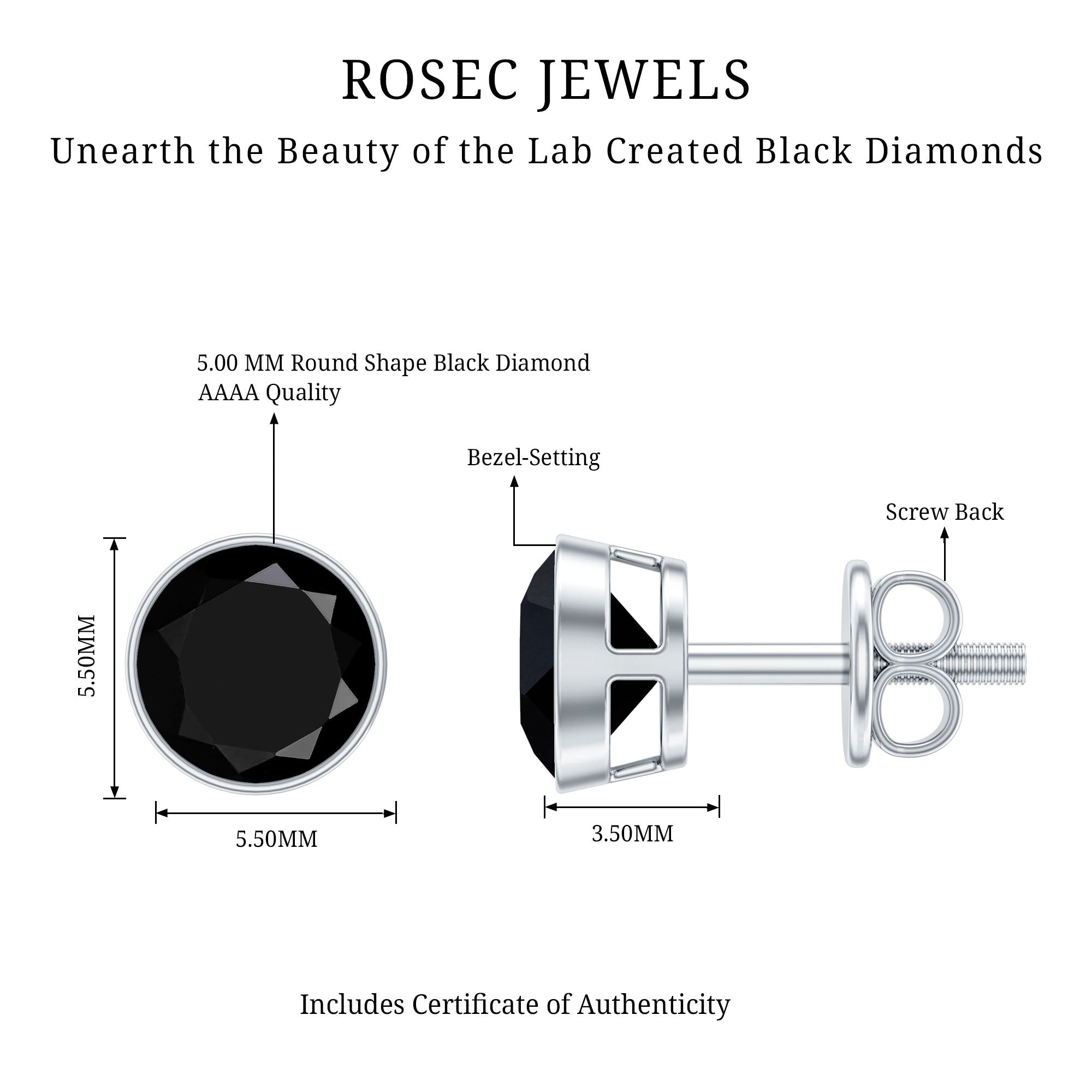 5 MM Created Black Diamond Solitaire Stud Earring in Bezel Setting