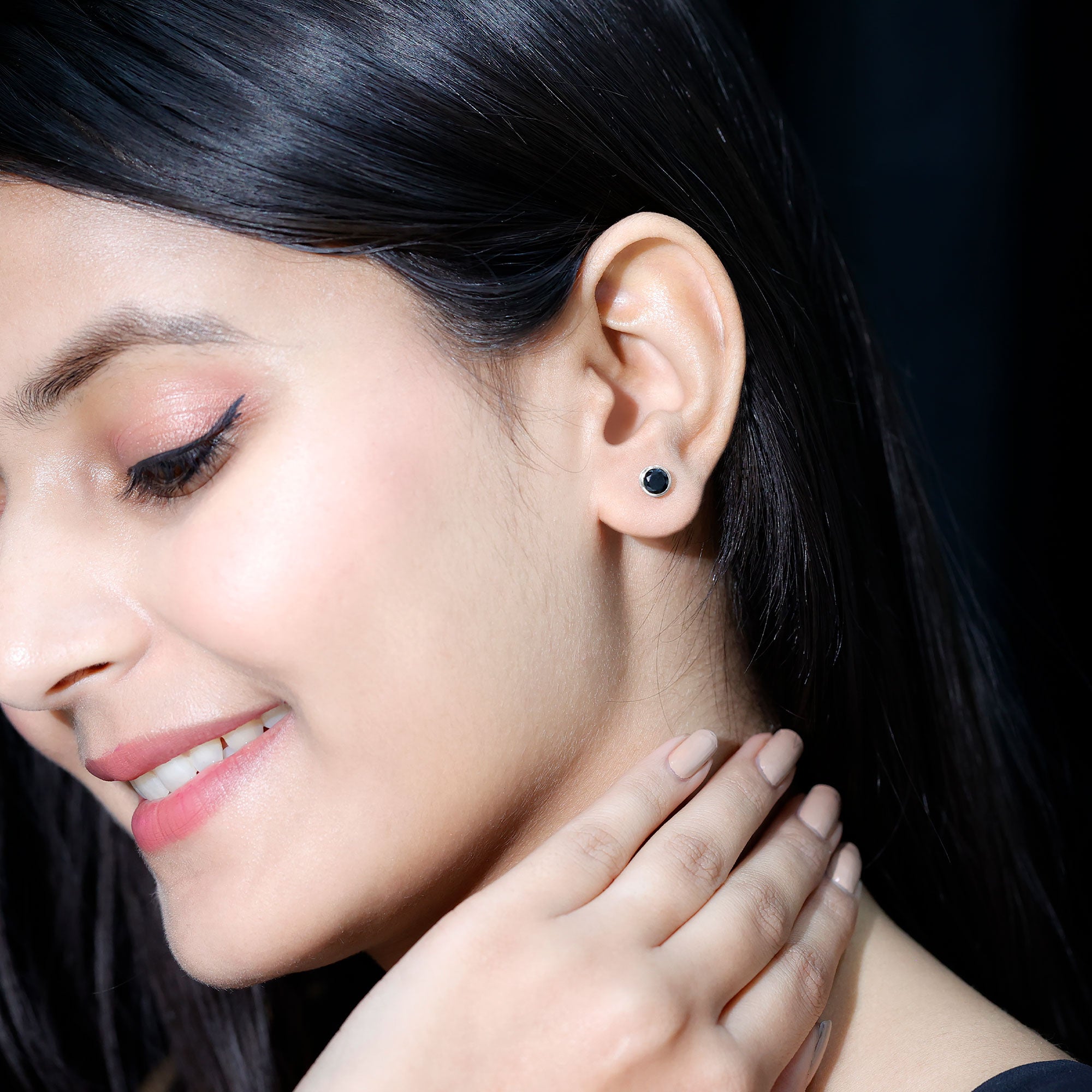 Simplicity meets elegance in these stunning Created Black Diamond Stud Earrings, delicately set in a Bezel Setting. The created black diamond gemstone exudes sophistication, making them a perfect accessory for any formal occasion. These classic solitaire stud earrings are a timeless addition to your jewelry collection.