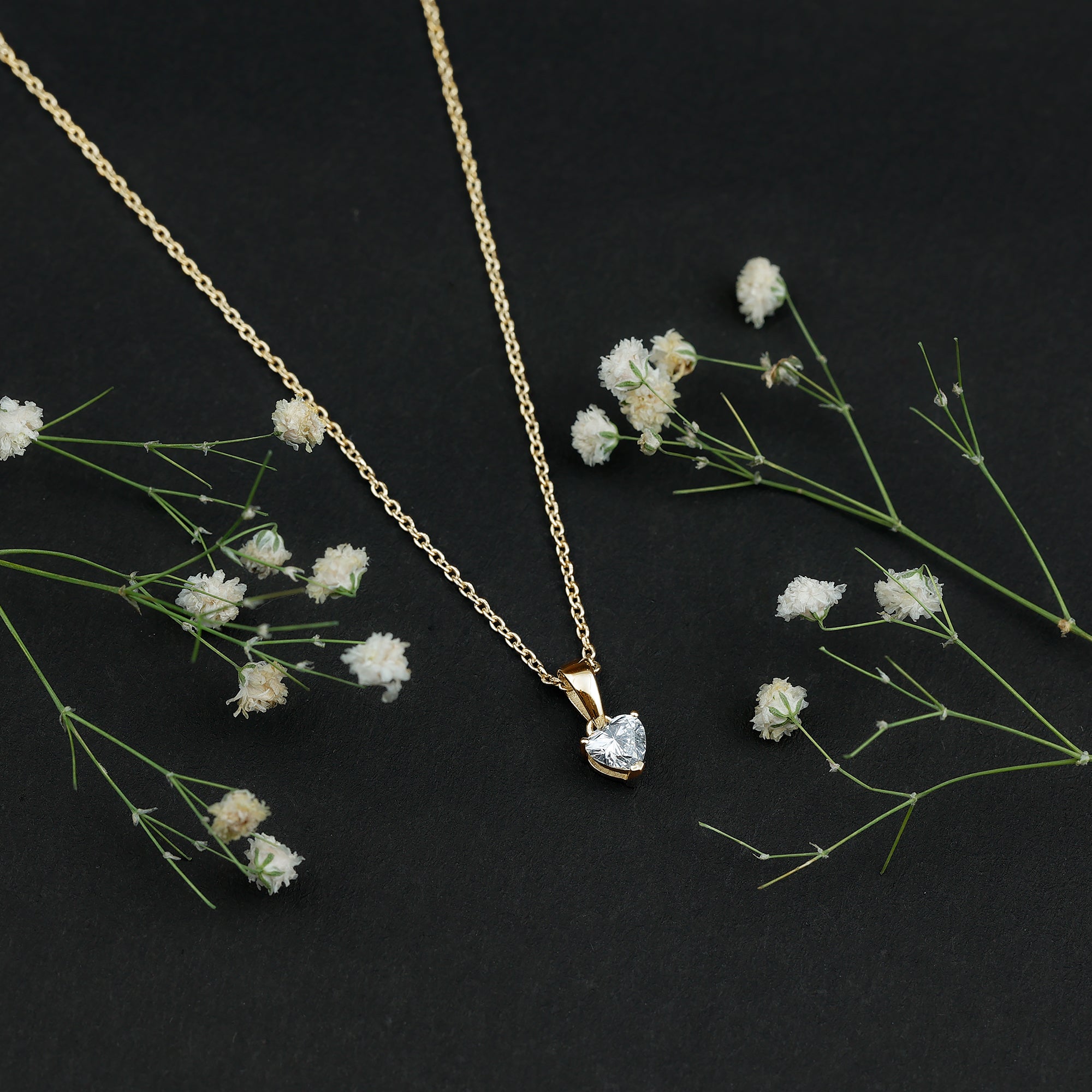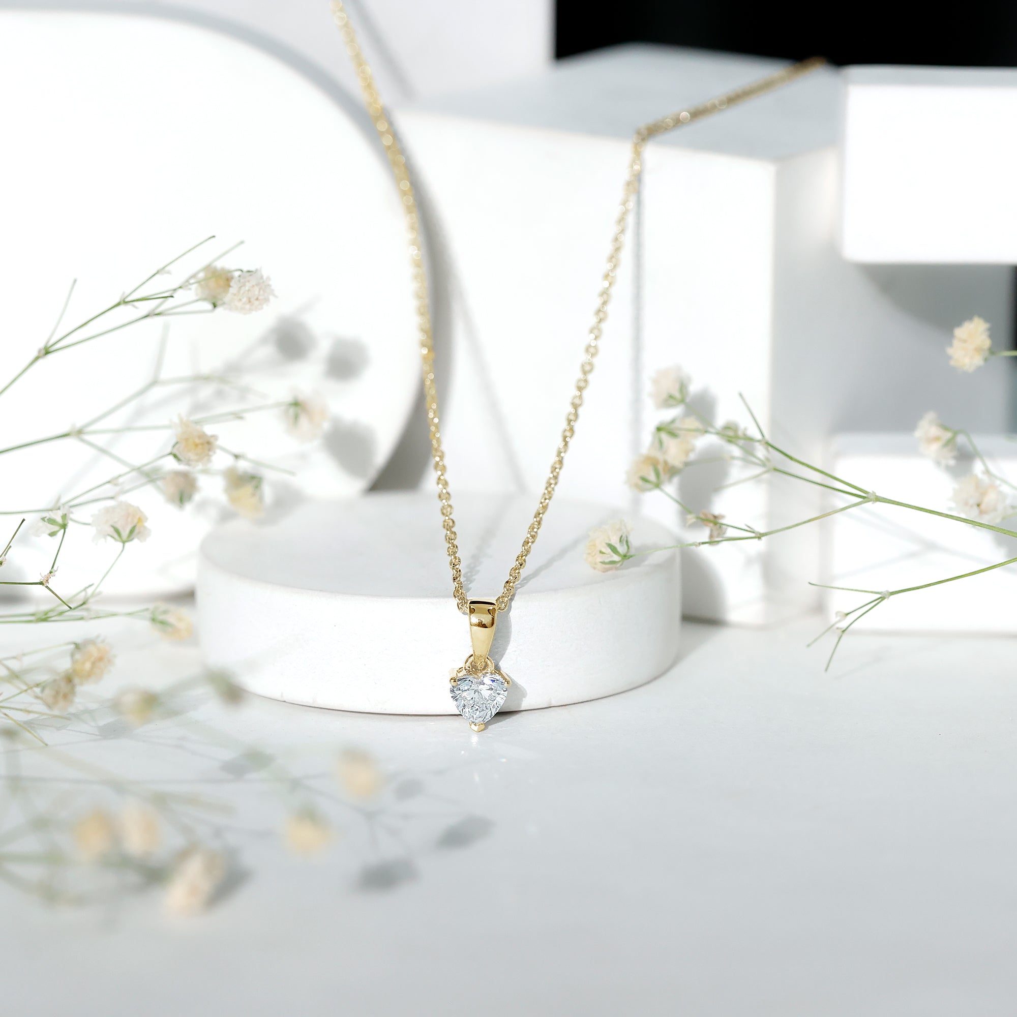 This Lab Grown Diamond Heart Necklace is a dazzling symbol of love that captures timeless elegance, truly a work of art in subtle sophistication. This Everyday Necklace features a 5 MM heart shaped lab grown diamond securely set in prong setting, carefully selected for its EF-VS quality and remarkable brilliance. This Single Diamond Necklace exudes refined beauty with every movement, creating a stunning blend of sophistication and contemporary style. The minimalist design of this Solitaire Pendant shines beautifully and always remains in fashion. It makes a statement without uttering a word. It is ideal for those who appreciate simplicity with a hint of sparkle and everlasting love. A single stone radiating infinite grace, this Heart Locket boasts a classic design that is perfect for birthdays or anniversaries.