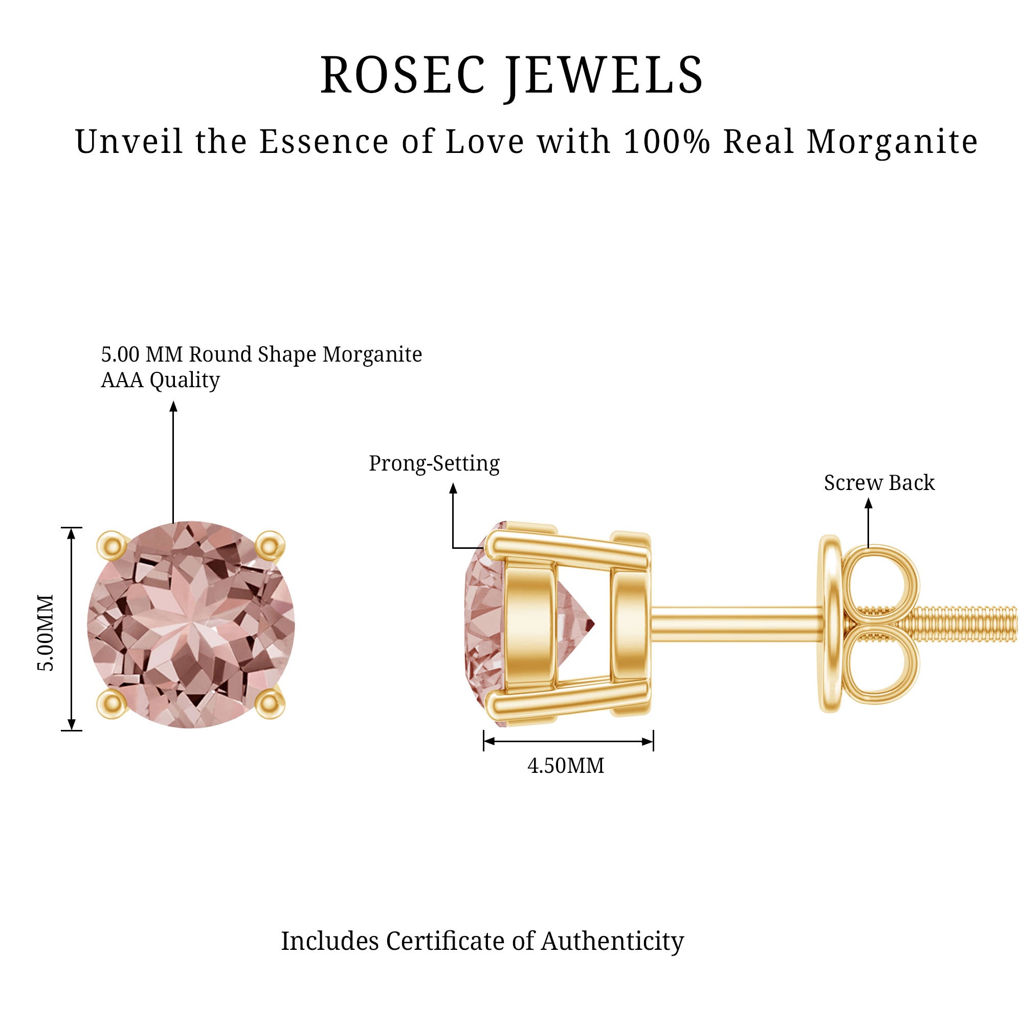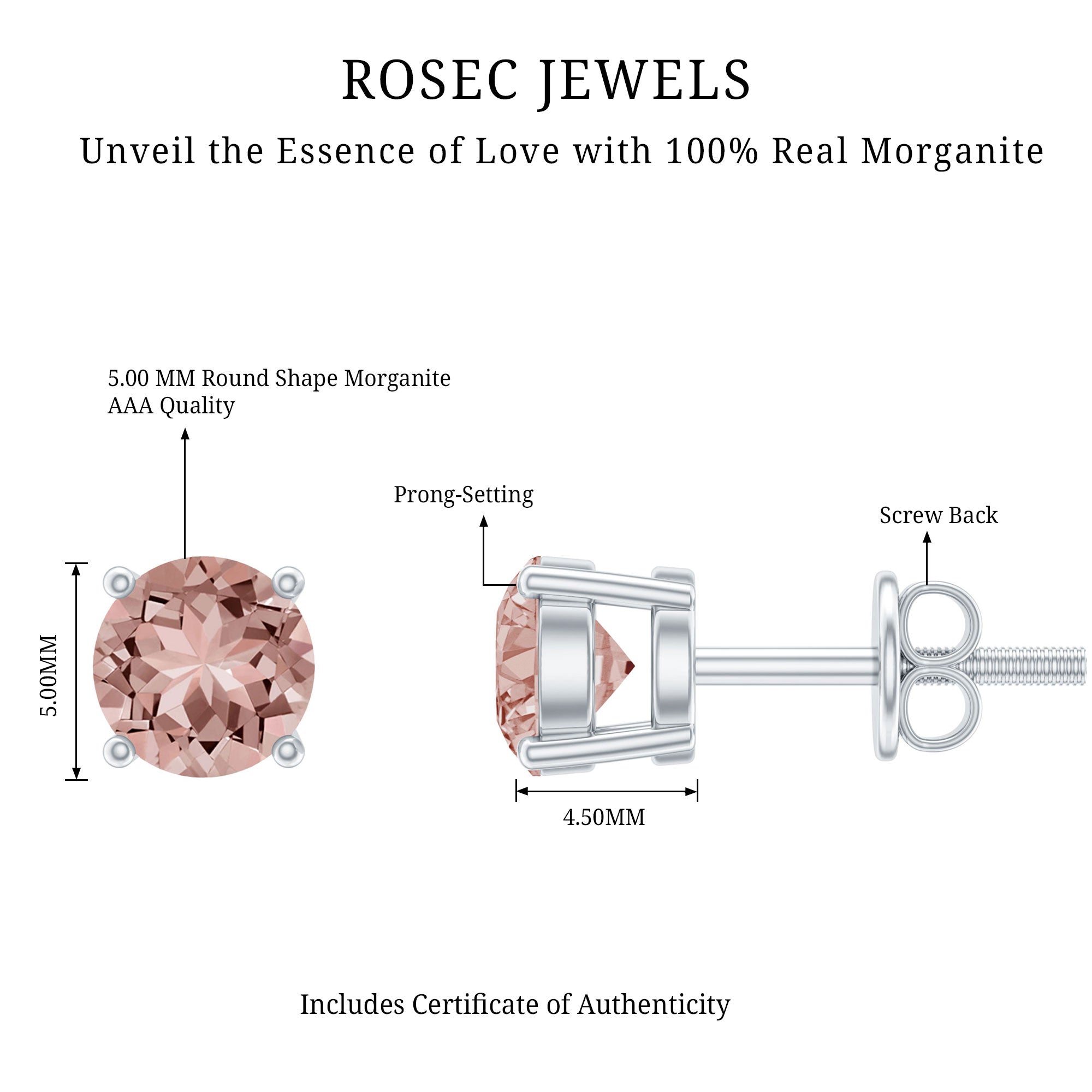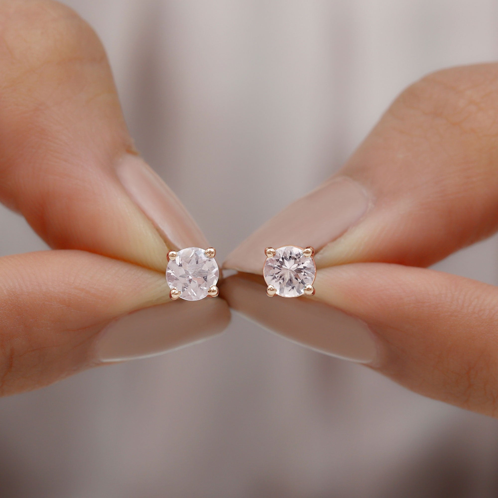 5 MM Morganite Solitaire Stud Earrings in 4 Prong Setting