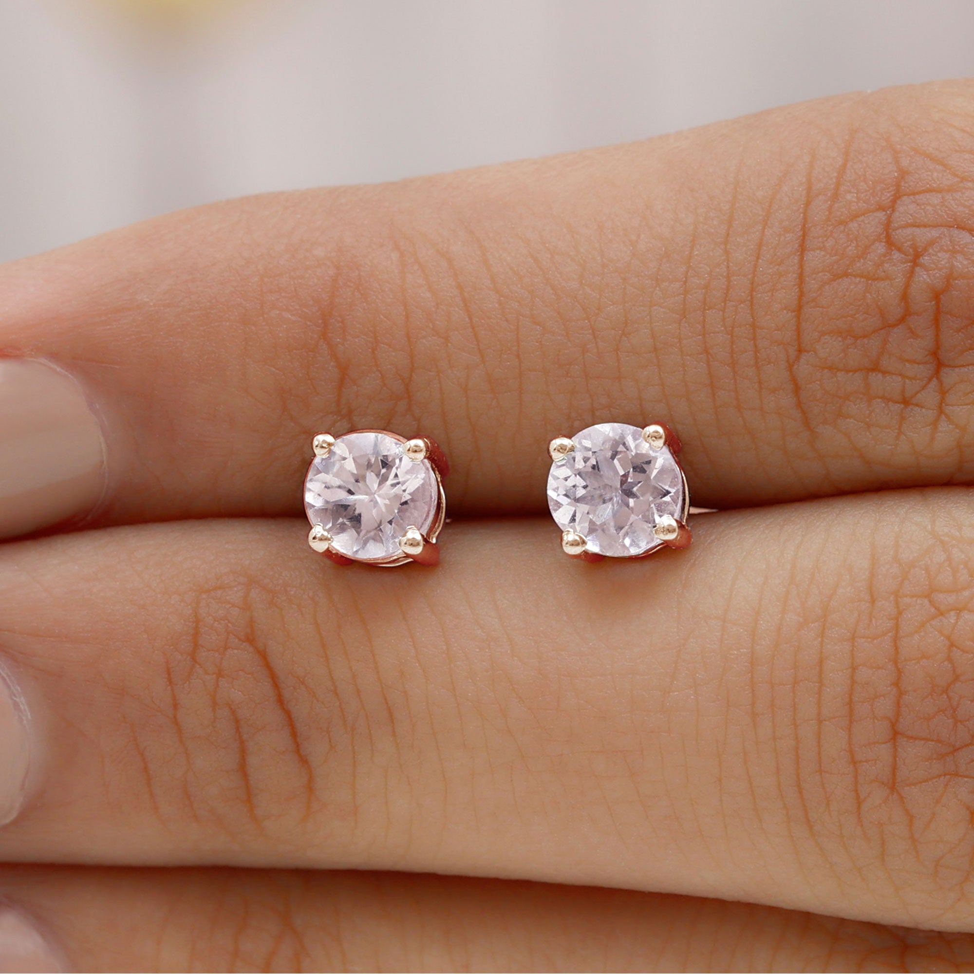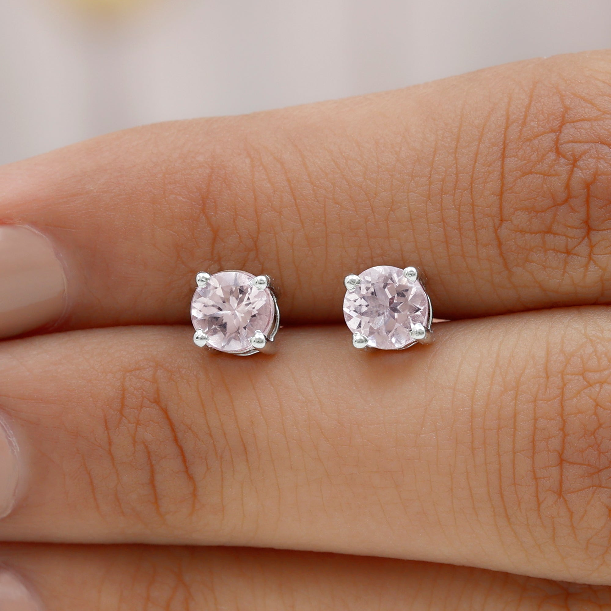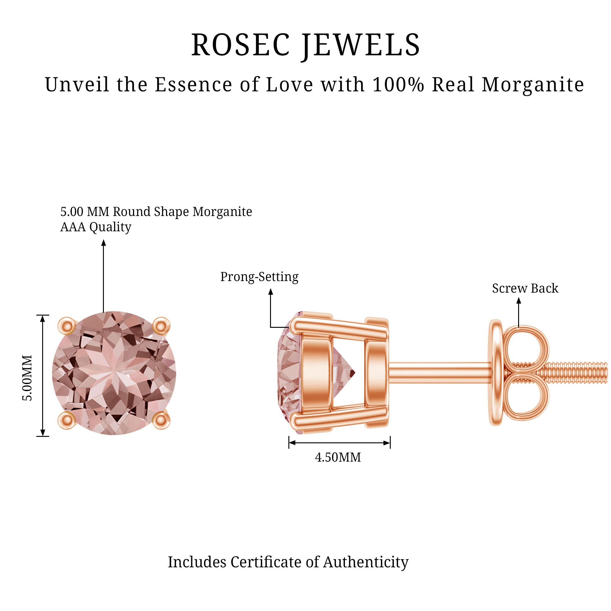 5 MM Morganite Solitaire Stud Earrings in 4 Prong Setting