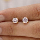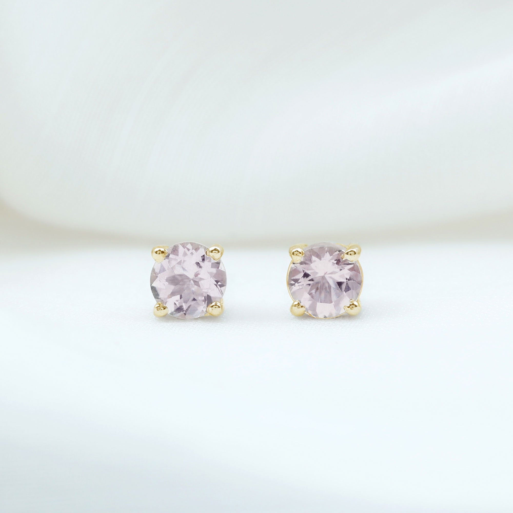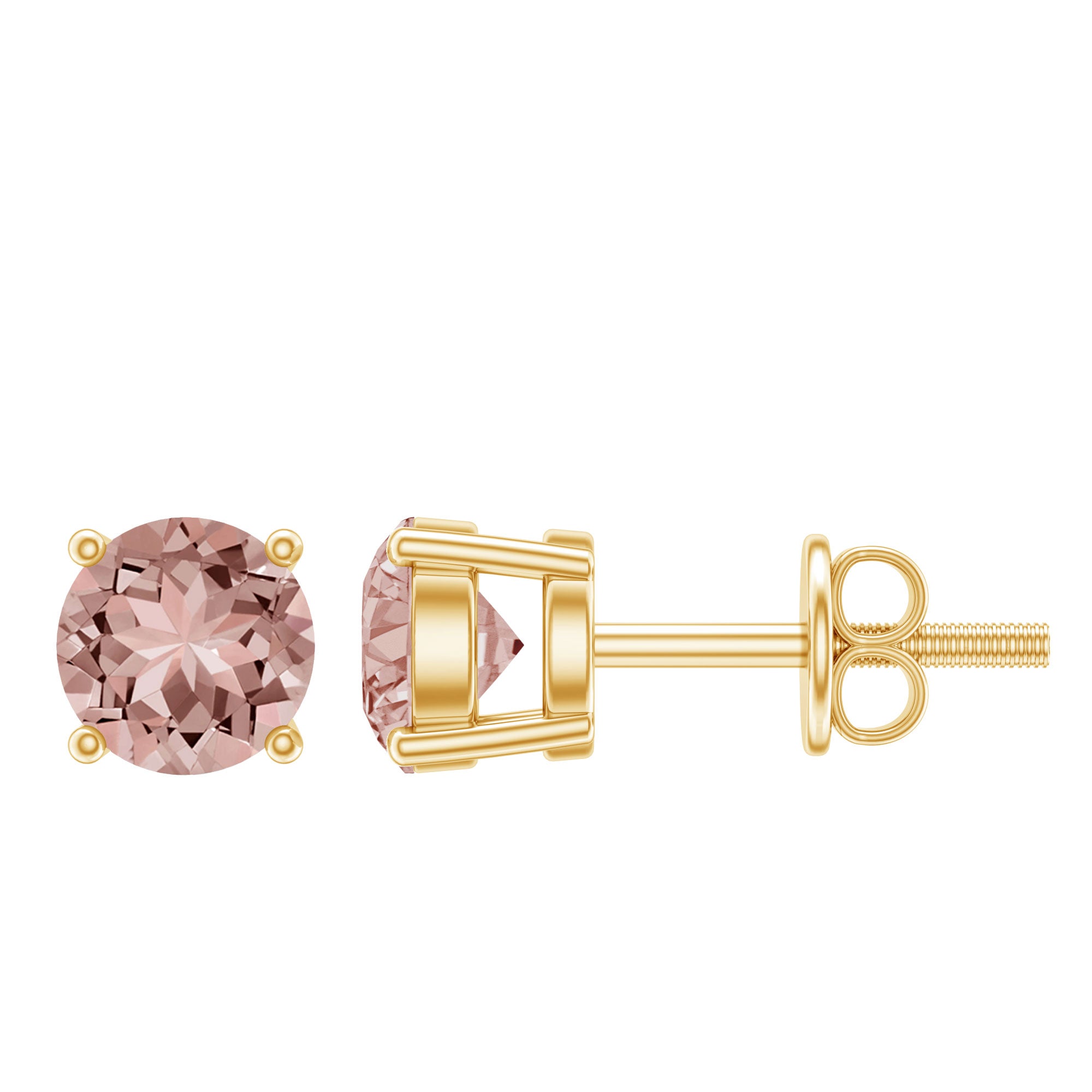 These gorgeous Classic Solitaire Stud Earrings are embellished with the Round Cut Morganite set as the solitaire in 4 Prong Setting, crafted in Solid Gold Metal.