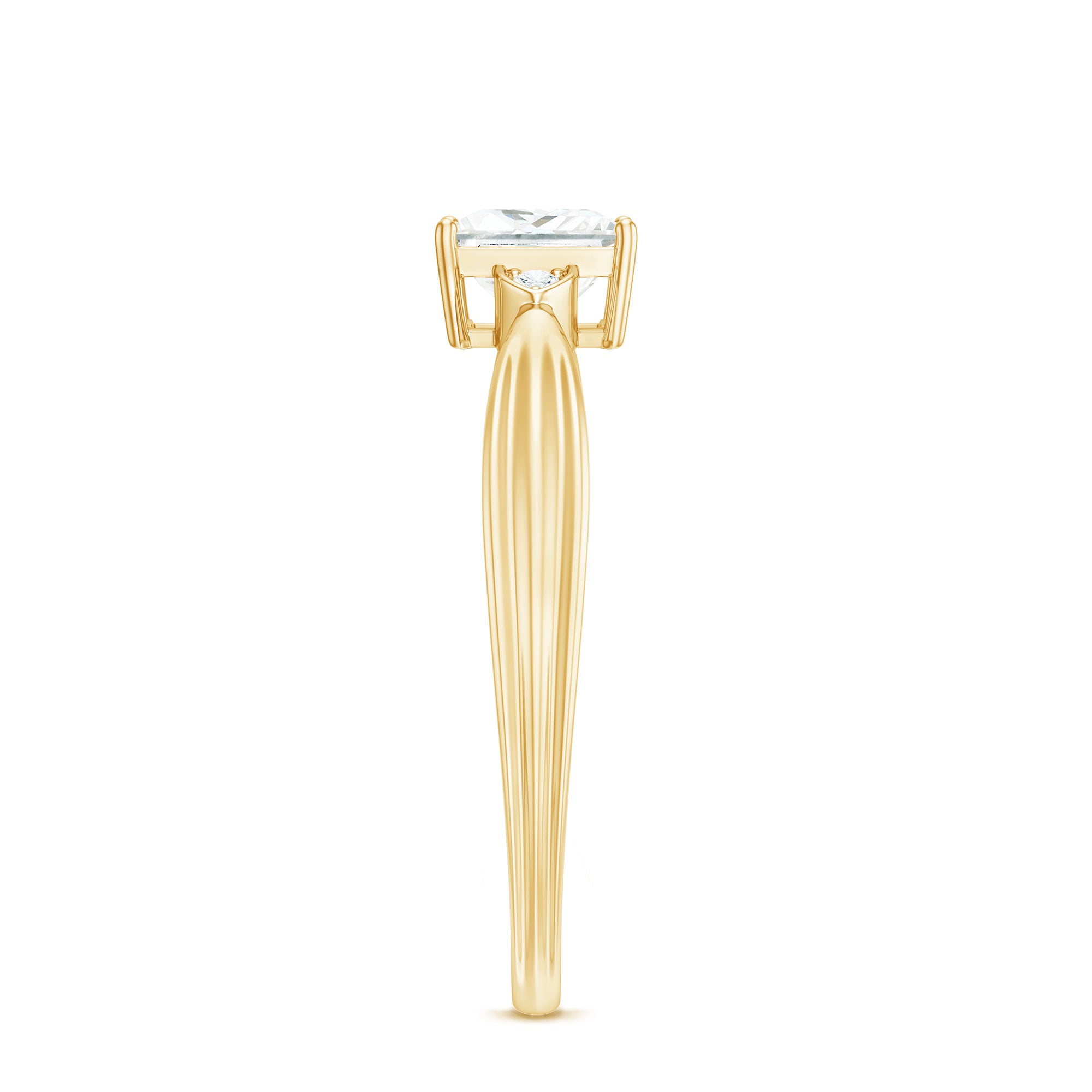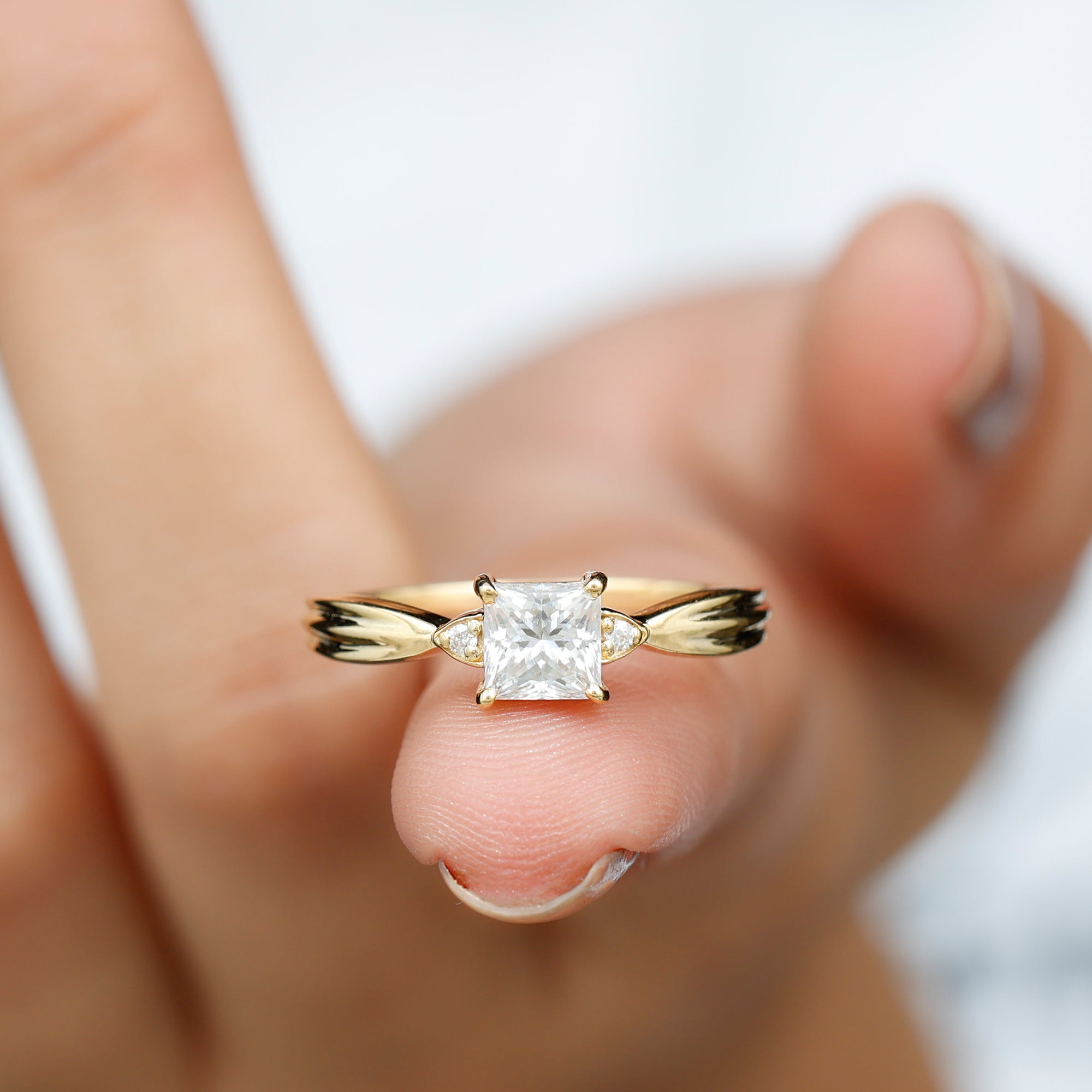 Wrap your love story around your finger in the form of this stunning Diamond Promise Ring. Designed with a pinched shank, this Solitaire Ring offers a delicate yet sophisticated look, enhancing the beauty of the dazzling princess cut lab grown diamond at its center. To add an extra touch of brilliance, two delicate stones are set on either side, subtly enhancing the overall charm without overpowering the centerpiece. Whether you are planning a dream proposal or simply want a 1 ct Diamond Ring for her that tells your love story, this piece has it all. Let this Princess Cut Ring be a shining reminder of the love you share and the memories yet to be made.