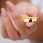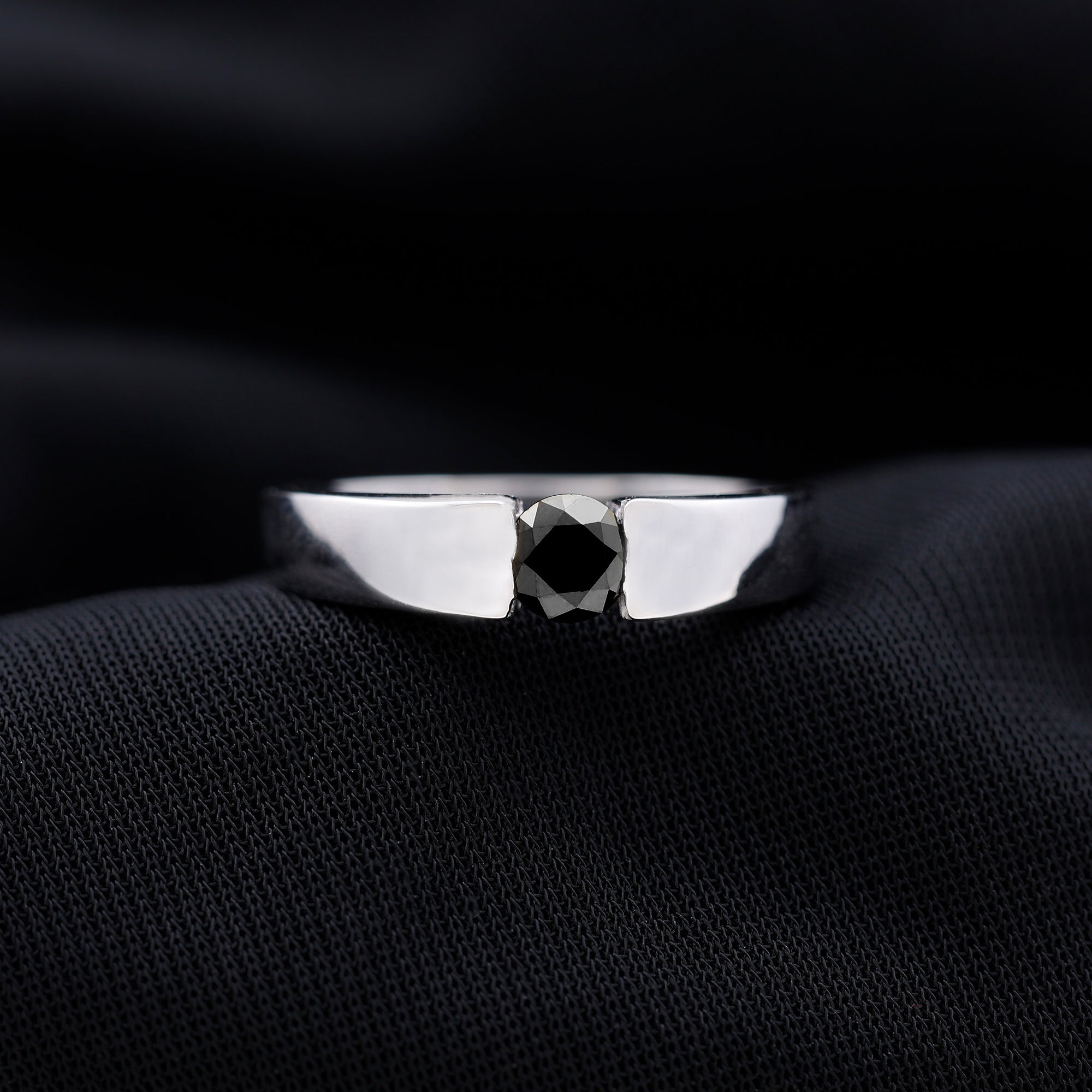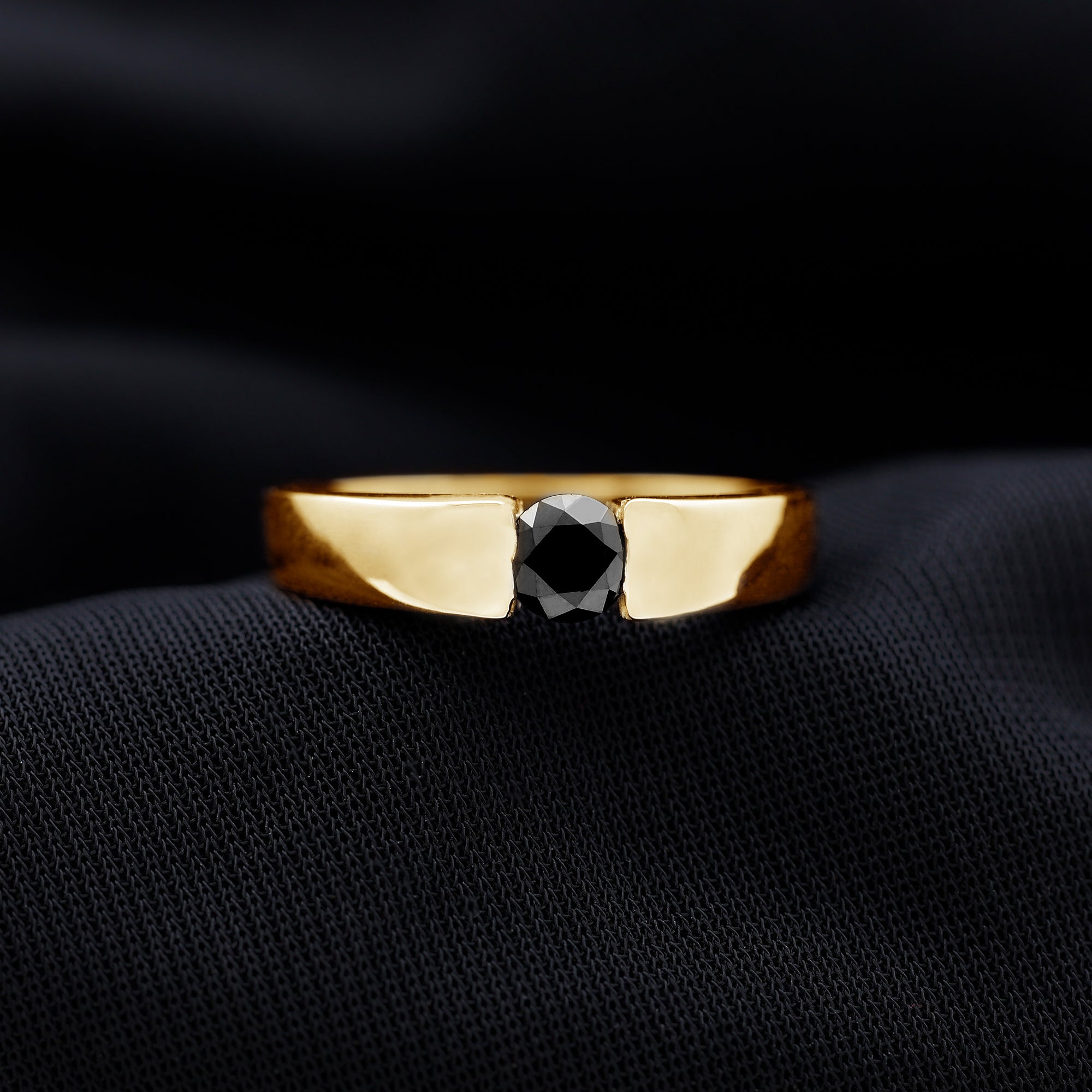 Go trendy with this lovely Solitaire Band adorned with Round Cut Black Diamond in Tension Mount Setting. Solid Gold build gives a luxurious appeal to this Simple Solitaire Band.
