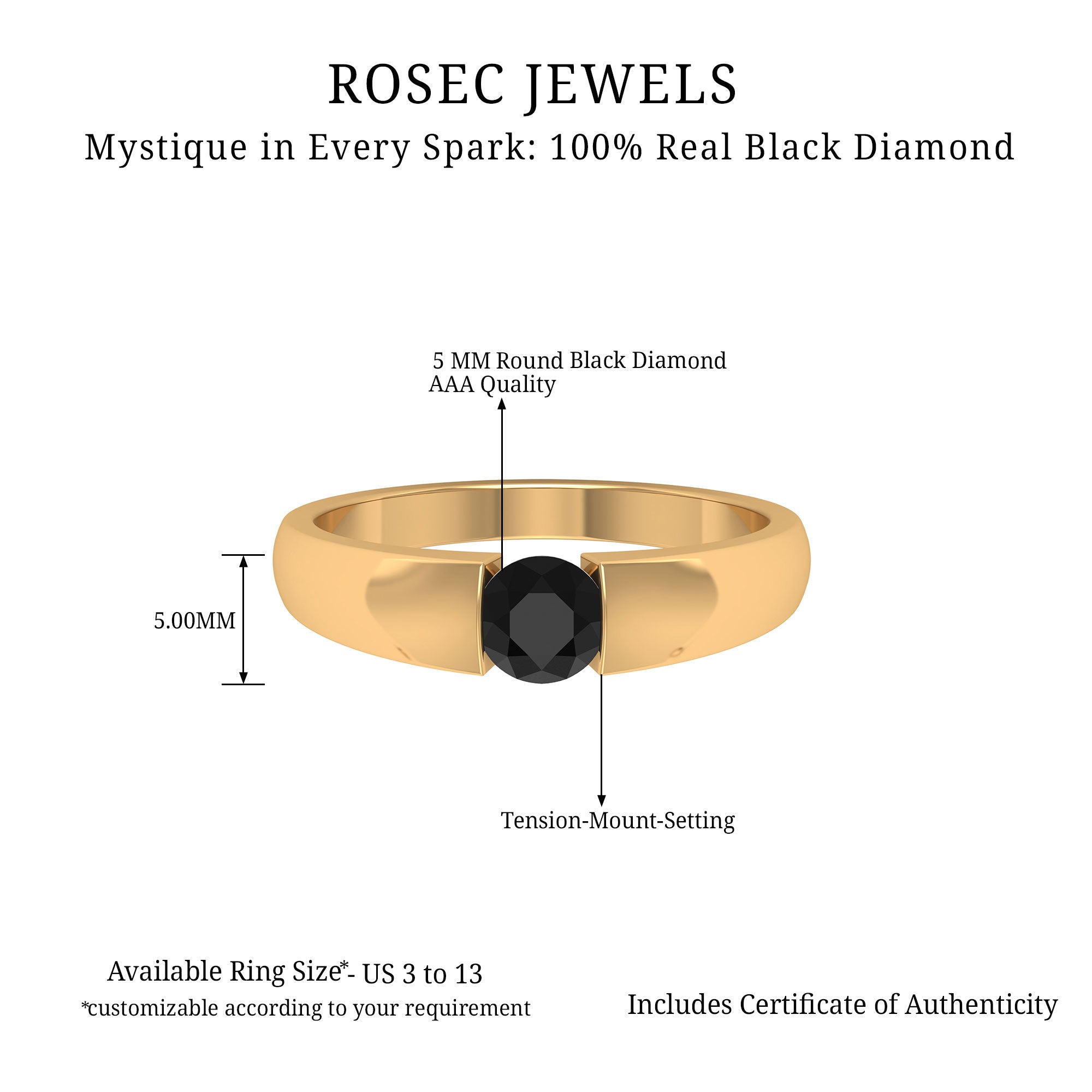 5 MM Round Cut Black Diamond Solitaire Band in Tension Mount Setting