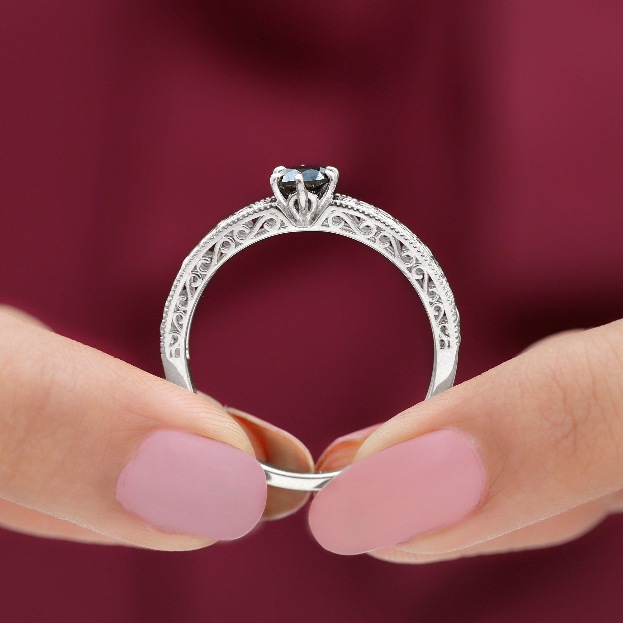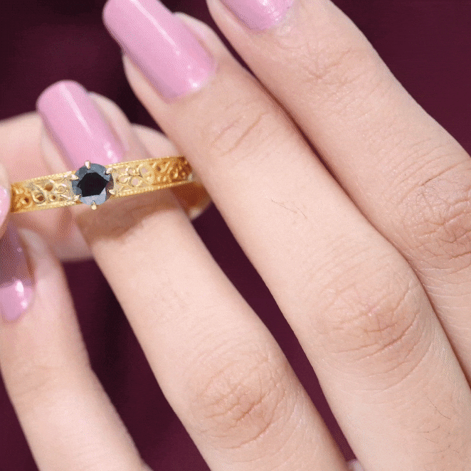 Your love deserves all the dazzle, so present her this Black Diamond Ring. Being embellished with Round Shape Black Diamond in 6 Claw Prong Setting on Solitaire Ring. Composed of Gold, this Black Diamond Filigree Ring could be a great choice to go for.