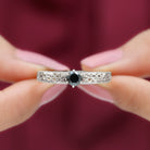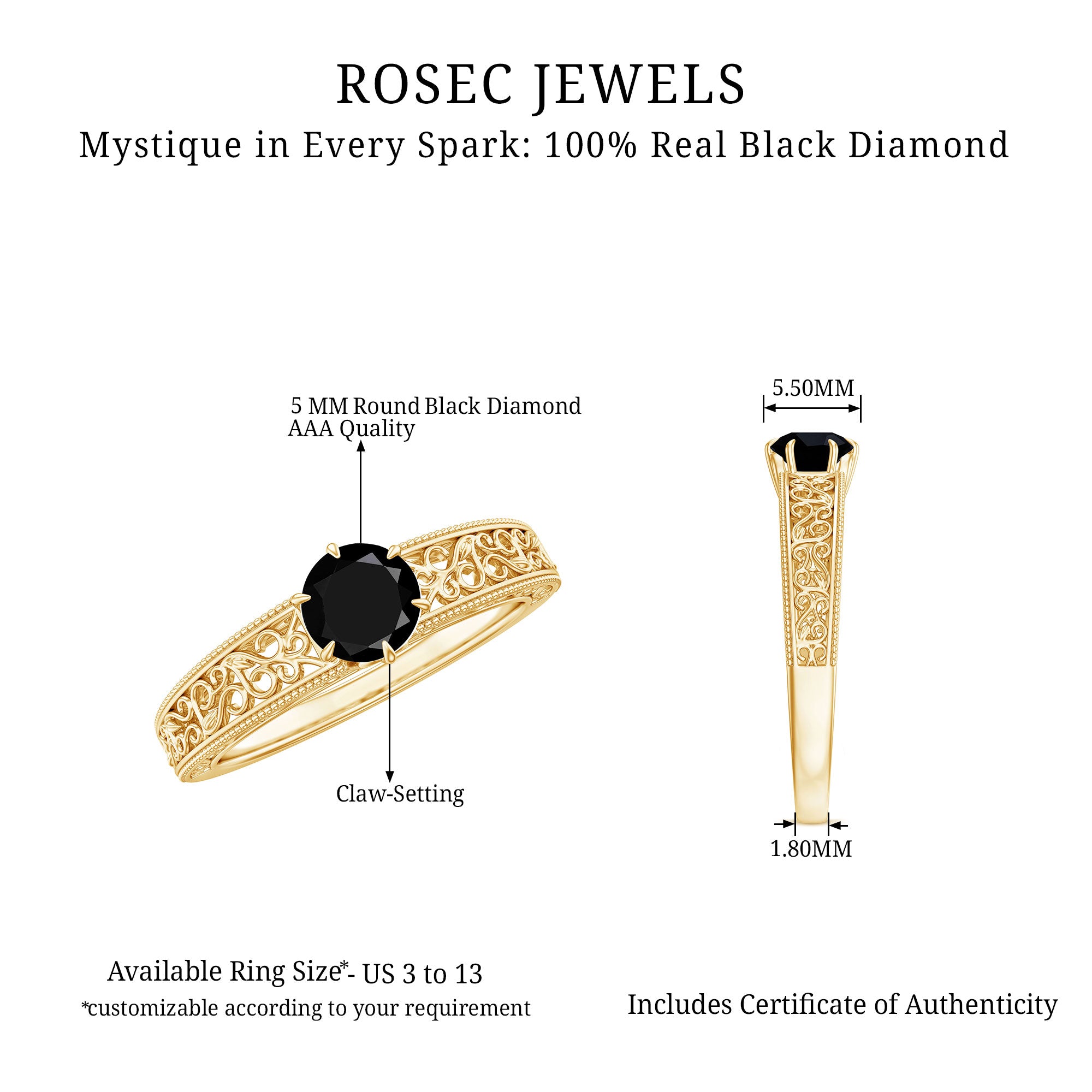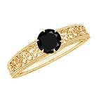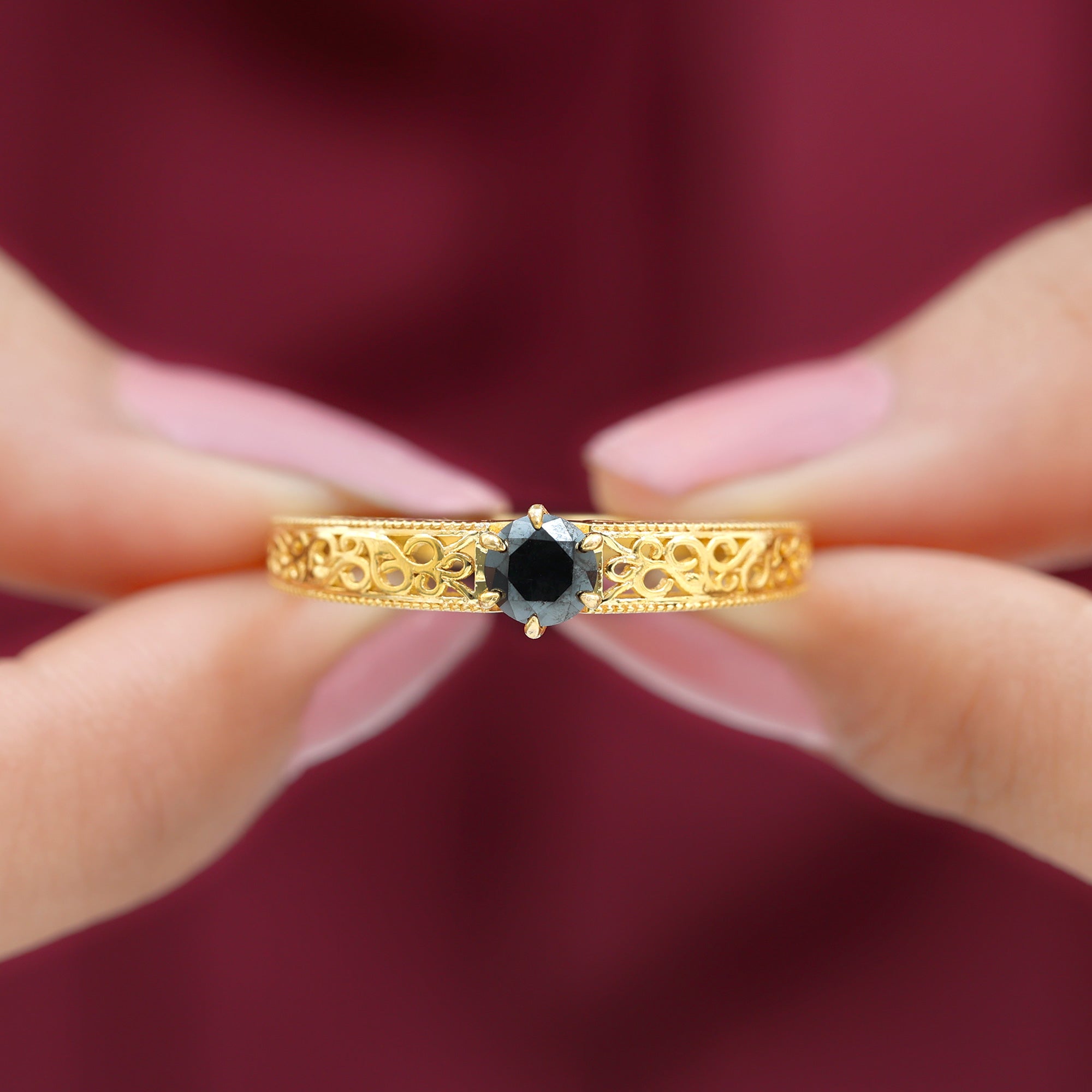 5 MM Round Cut Black Diamond Solitaire Gold Filigree Ring