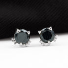 5 MM Round Lab Created Black Diamond Solitaire Cat Stud Earrings