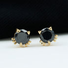 Elevate your style with these cute kitty stud earrings, featuring a radiant round lab-created black diamond set in a prong setting at the center. The solid gold metal adds a playful cat-inspired touch, while the screw back ensures a comfortable fit. This lab-created black diamond earring is the must-have accessory for every womens wardrobe.
