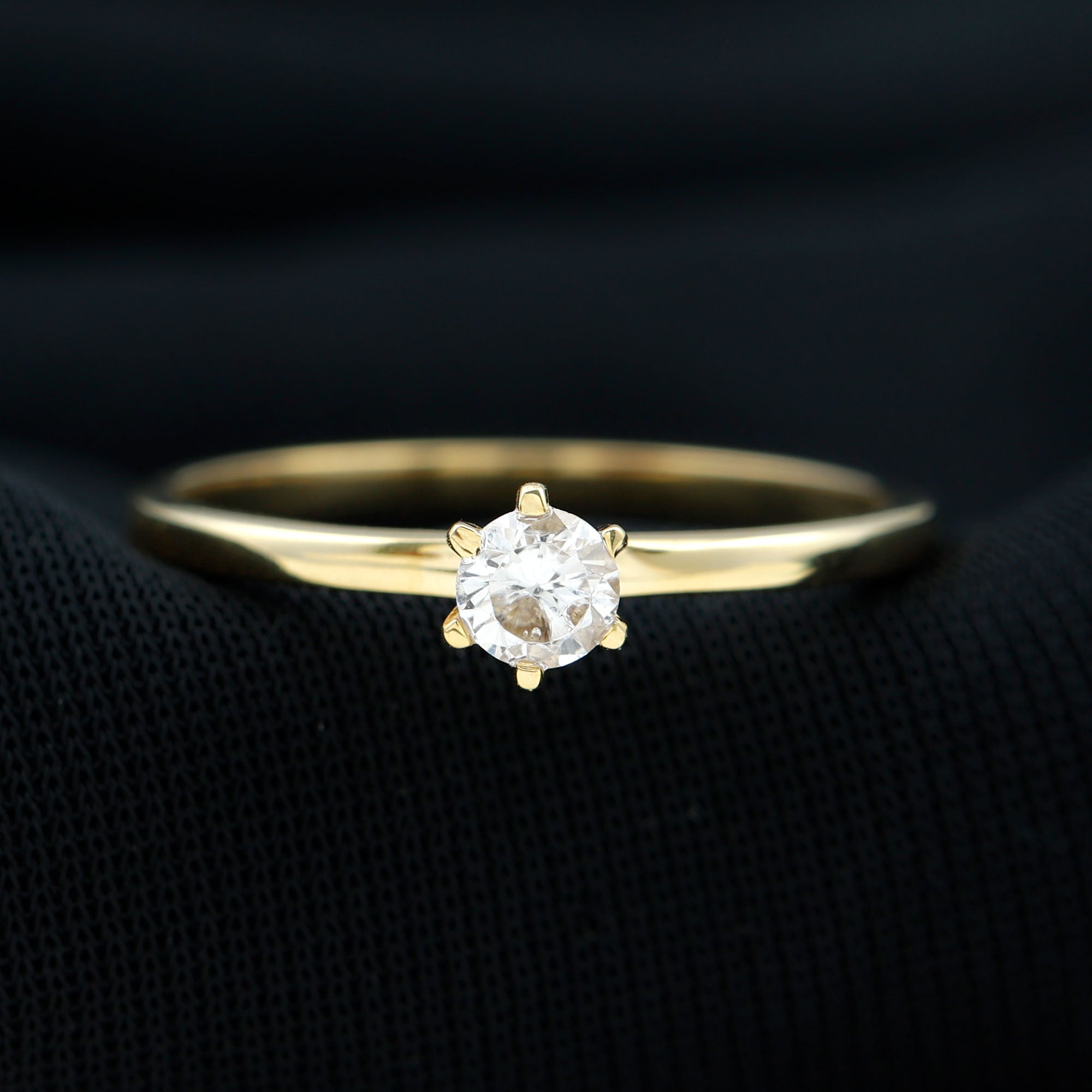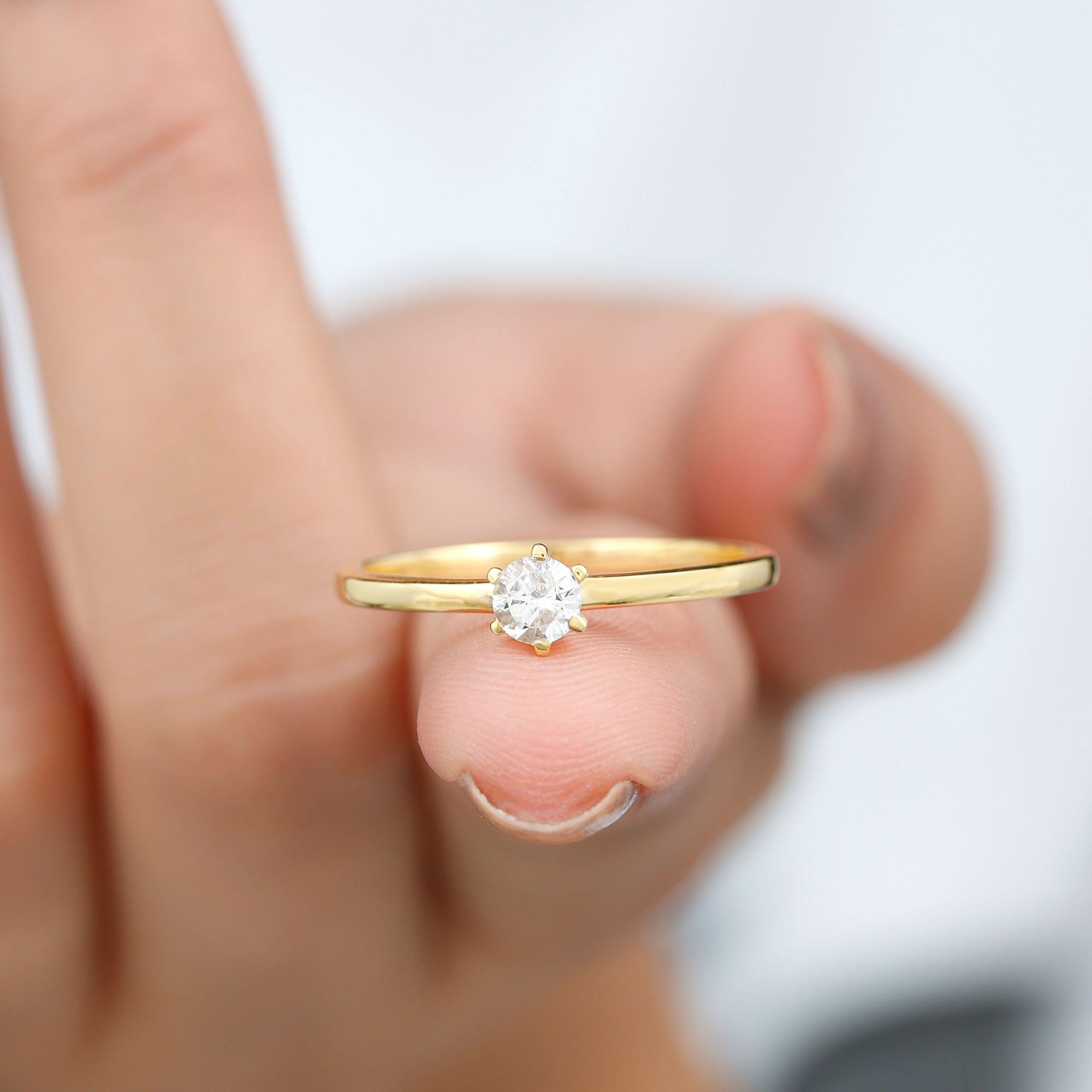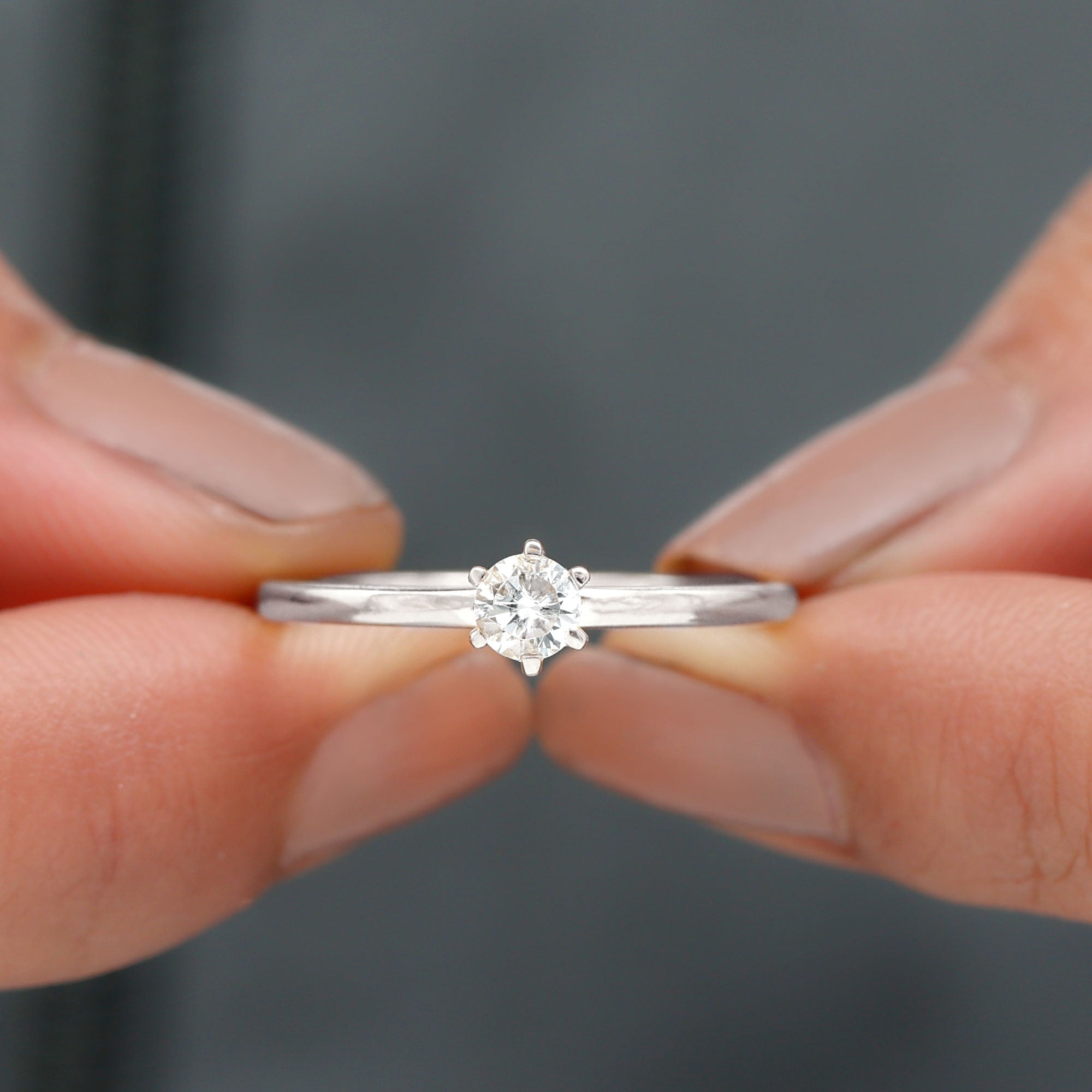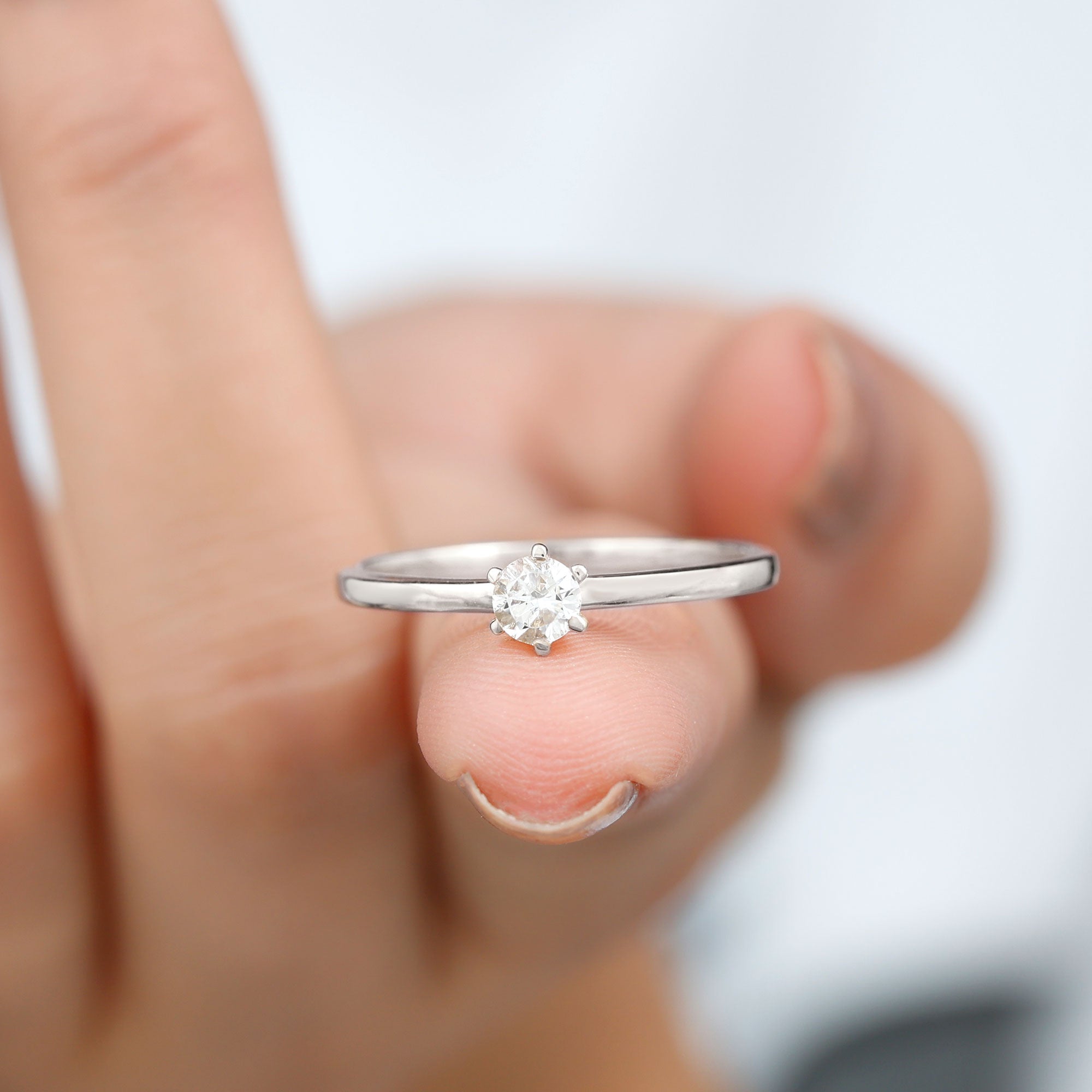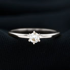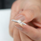Exuding a minimalist essence, this solitaire zircon ring is ideal for those who appreciate a blend of simplicity and elegance. Resting gracefully on a metal band, the round Cubic Zirconia set in a peg head setting radiates with its continuous glimmer. The traditional shank adds a touch of timeless sophistication to this cz solitaire ring, catering to those with a penchant for classic charm.