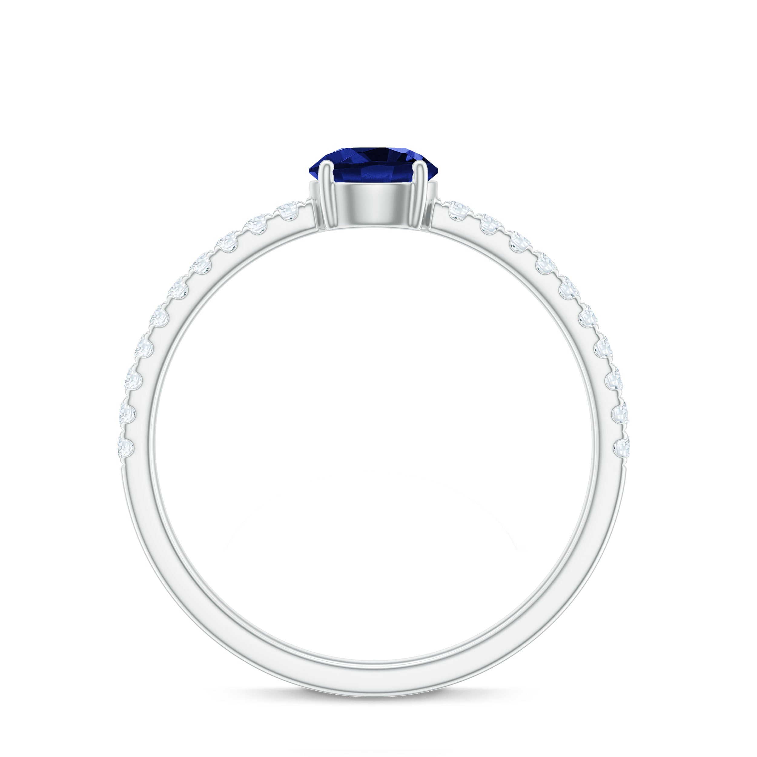 5mm Lab Created Blue Sapphire Promise Ring with Diamond Side Stones