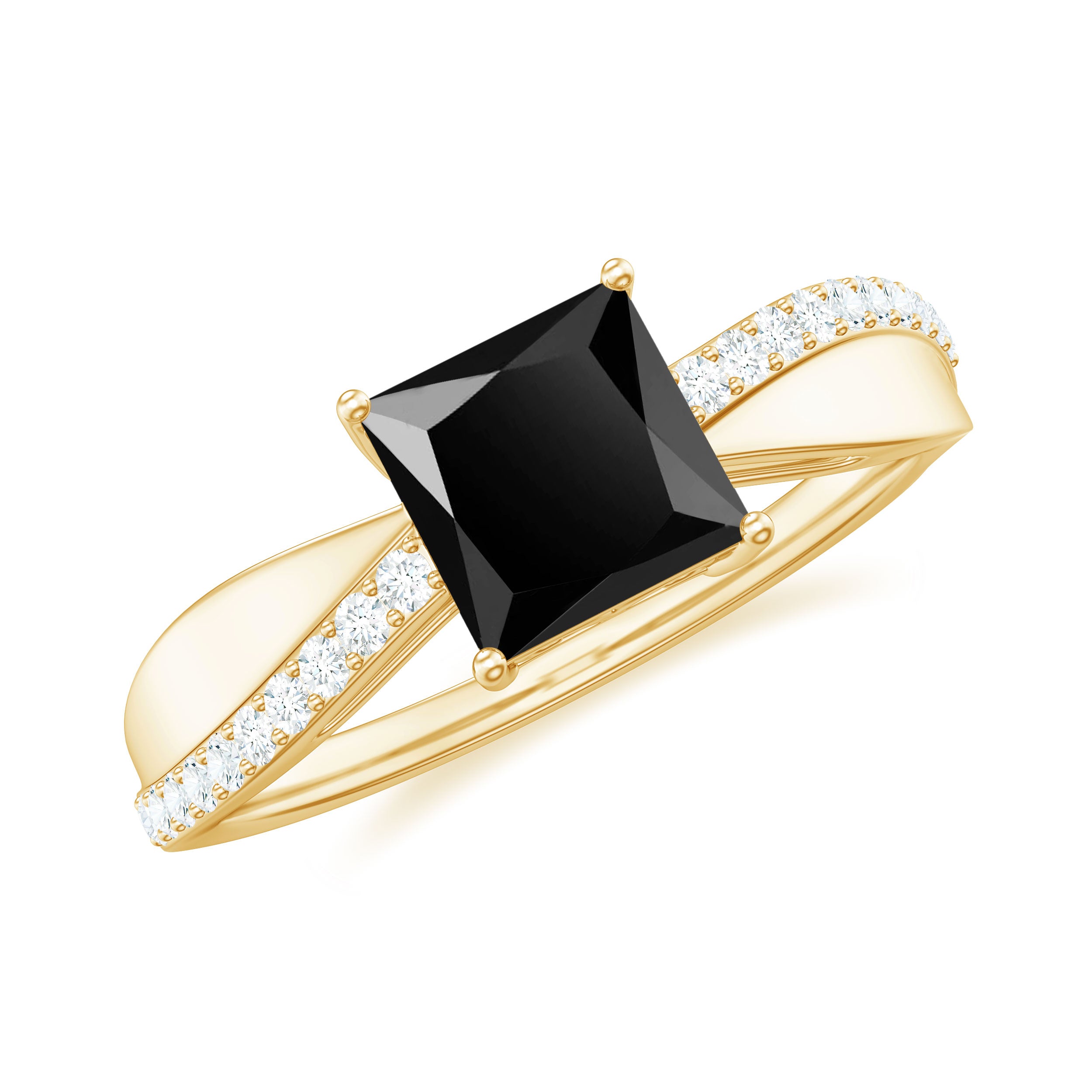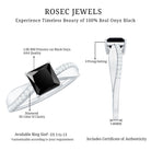 Add some sparkle to your life with this Black Onyx Engagement Ring, featuring 5 mm Princess Cut Black Onyx set at the center as solitaire in a prong setting with petite round diamond accents set on the pinched style shank on both sides. Distinct in its design, this Solitaire Engagement Ring is an essential piece of jewelry suitable for any occasion, consistently exuding brilliance. It showcases a 5 MM Princess Cut Black Onyx positioned at the center as a solitaire in a 4 Prong Setting, complemented by a Pinched Shank adorned with small round diamonds, resulting in a breathtaking accessory that will illuminate your hand. The elegance and simplicity of this Natural Black Onyx Engagement Ring are sure to capture your heart. This Princess Cut Onyx Ring has a total weight of 1 Carats and displays AAA quality Black Onyx and HI Color SI Clarity Diamonds. All our gemstones are certified and undergo rigorous quality inspections. The blend of timeless elegance and contemporary brilliance renders this piece a treasured keepsake for years to come. Available in a variety of metal colors and ring sizes, this 1 Carat Engagement Ring for Weddings is ideal for those who appreciate both understated beauty and radiance. It is presented in exquisite packaging, ready to commemorate your love story and commitment in a manner that is both considerate and unforgettable.