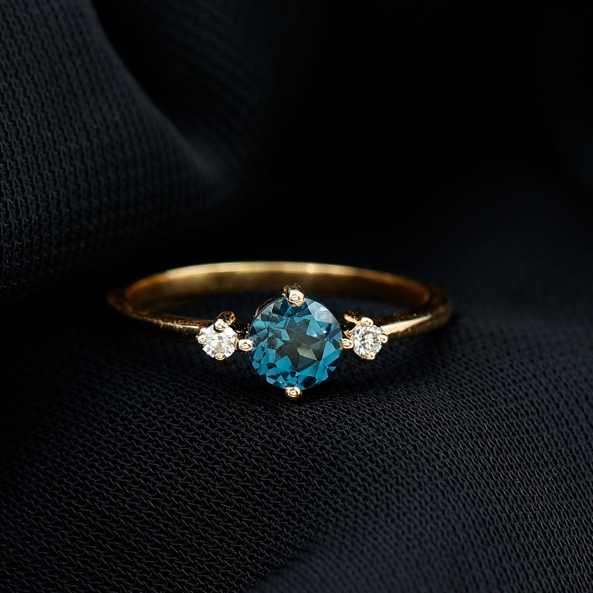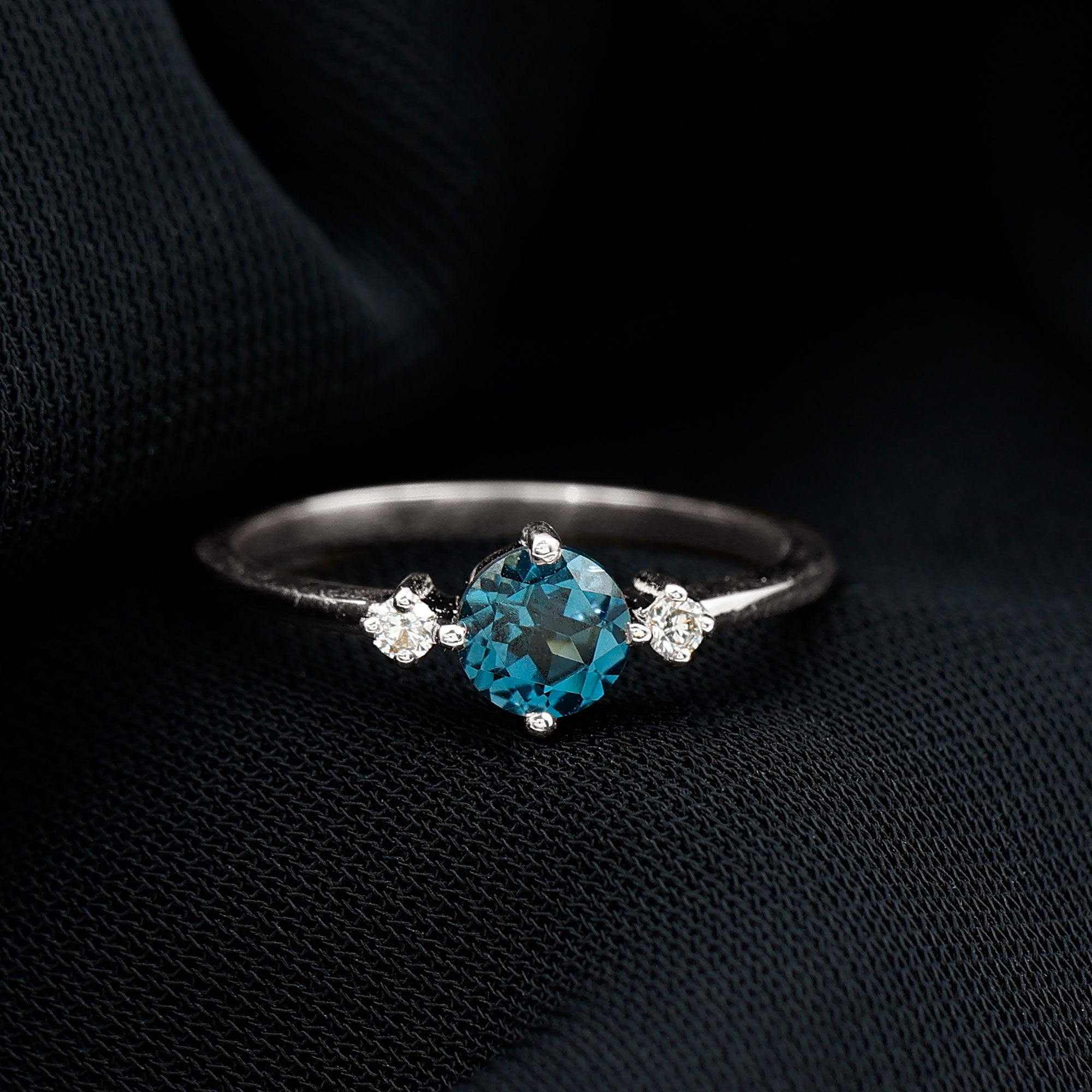 5mm Round London Blue Topaz Minimal Promise Ring with Diamond