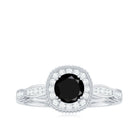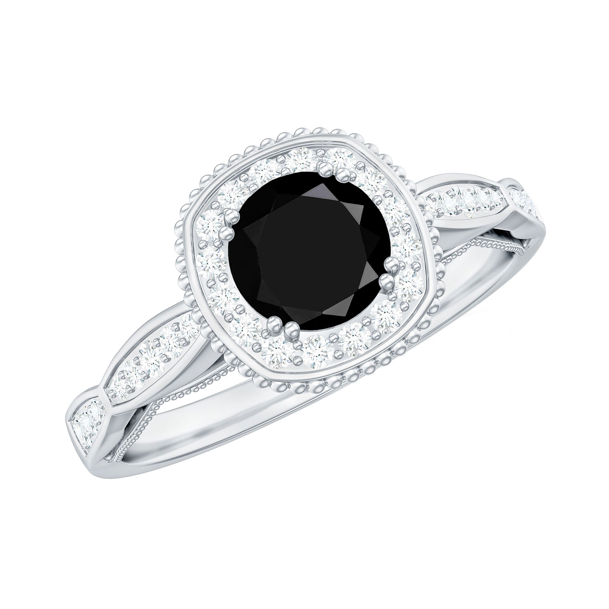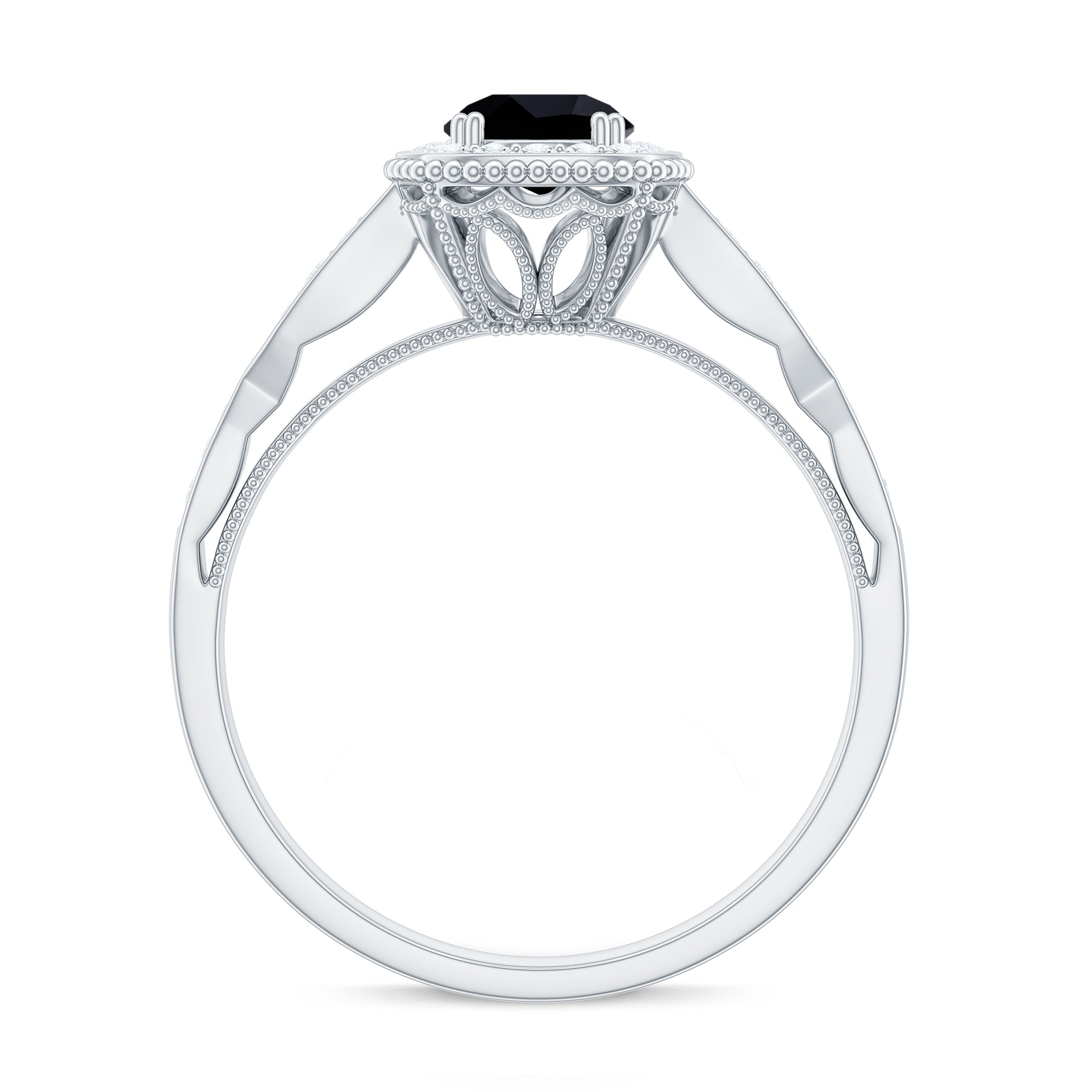 5mm Round Shape Black Onyx Vintage Engagement Ring with Diamond Halo