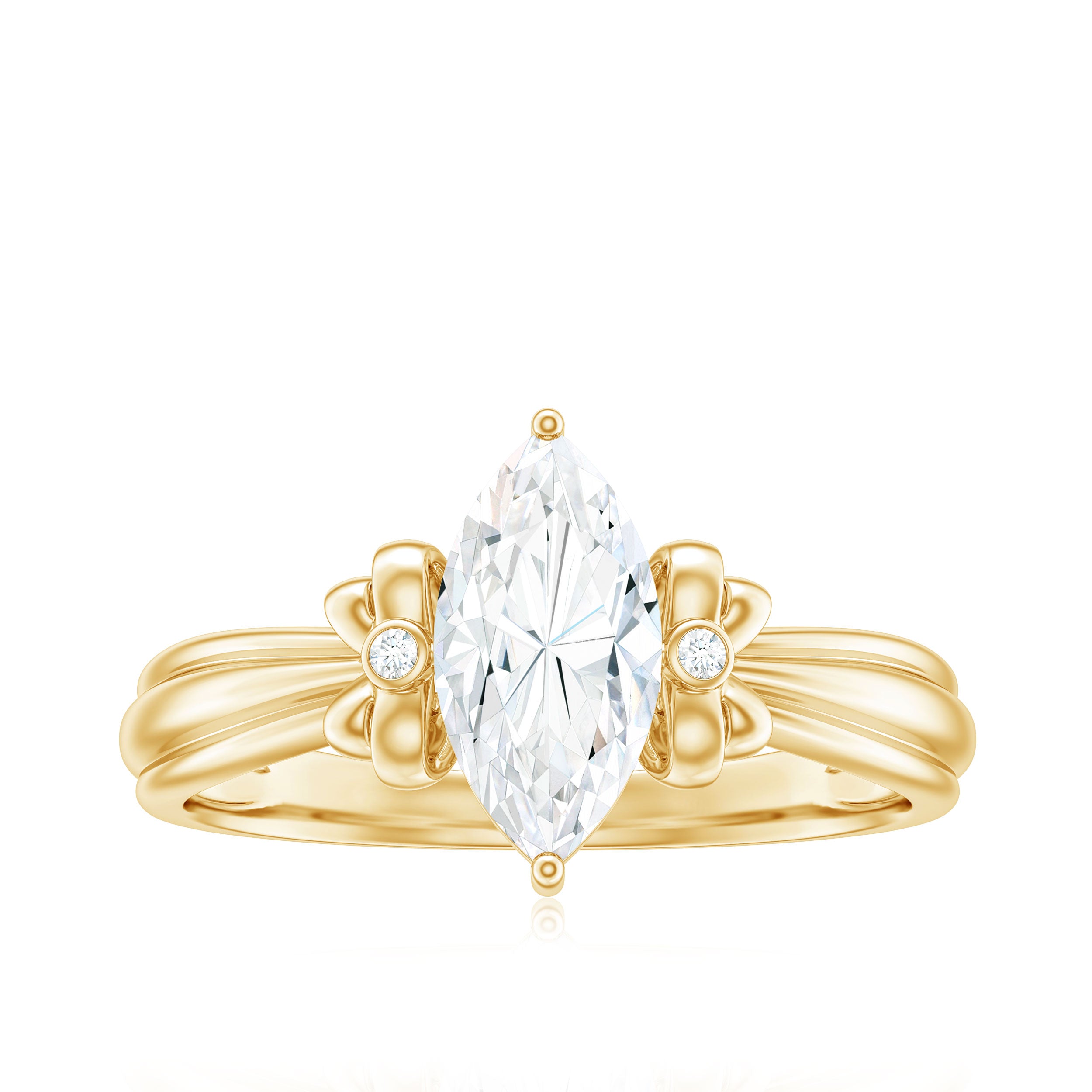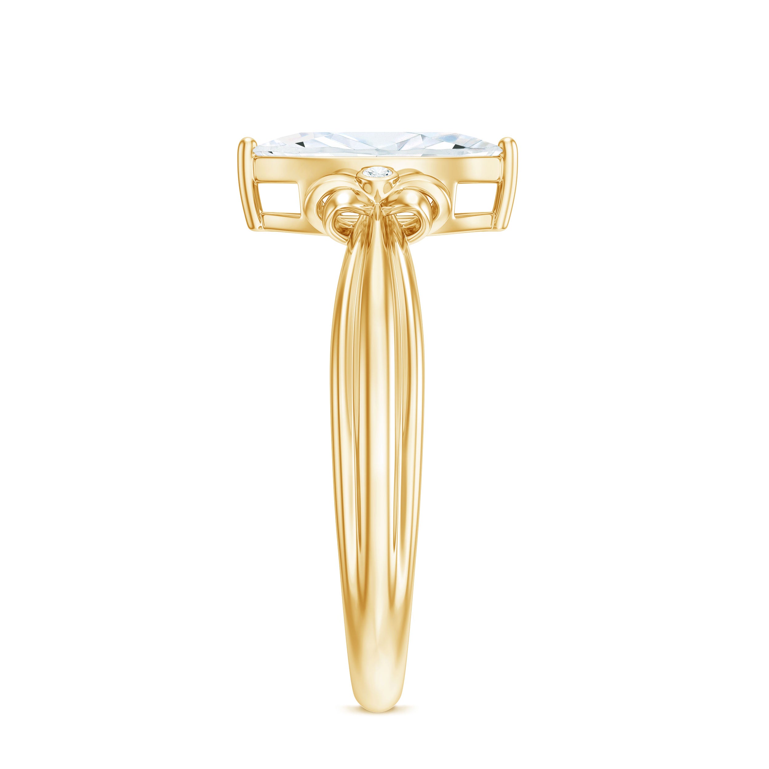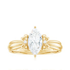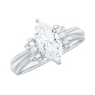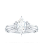 Make every proposal unforgettable with this dazzling Moissanite Engagement Ring, where elegance meets artistic charm. Crafted to capture the essence of romance and femininity, this Solitaire Ring features a captivating 5x10 MM marquise cut moissanite at the center, glimmering with intense fire and brilliance. The centerpiece is set in secure prong setting, allowing maximum light to pass through the stone, enhancing its natural sparkle. What makes this Designer Engagement Ring truly enchanting is its bow-like design, formed by intricate round moissanite stones on either side of the center. The design evokes a perfect blend of sophistication and whimsy, making it a standout choice for someone who adores unique yet timeless styles. The refined band provides a smooth finish, guaranteeing that all focus stays on the dazzling beauty of the bow-inspired design. Whether you are preparing for the ideal proposal or seeking a unique gift that represents commitment, this Marquise Cut Engagement Ring is sure to become a beloved keepsake. Available in multiple sizes and metal color choices, it adds a personalized element to your extraordinary moment. Timeless yet distinctive, it is a luminous promise enveloped in brilliance.