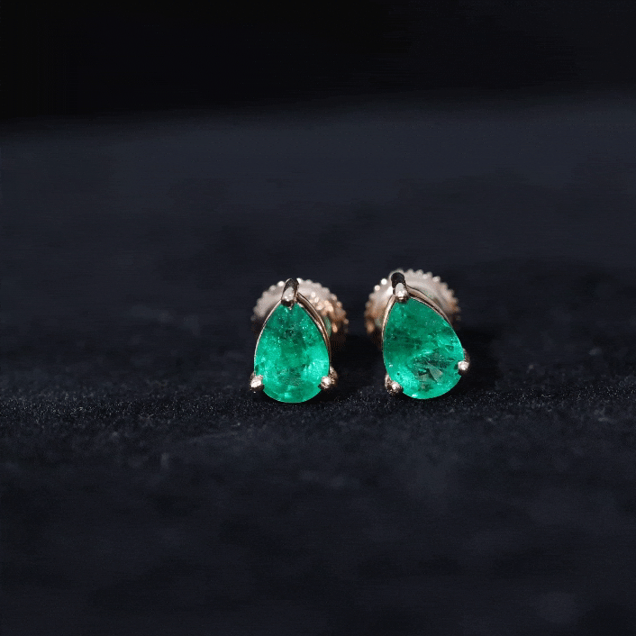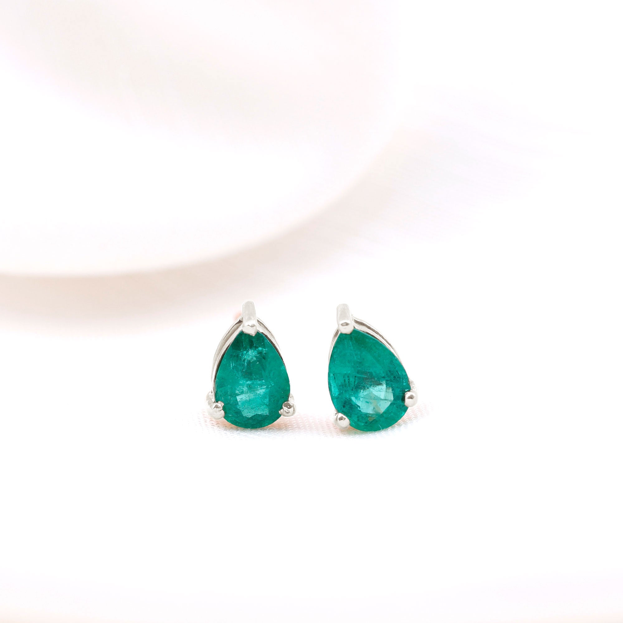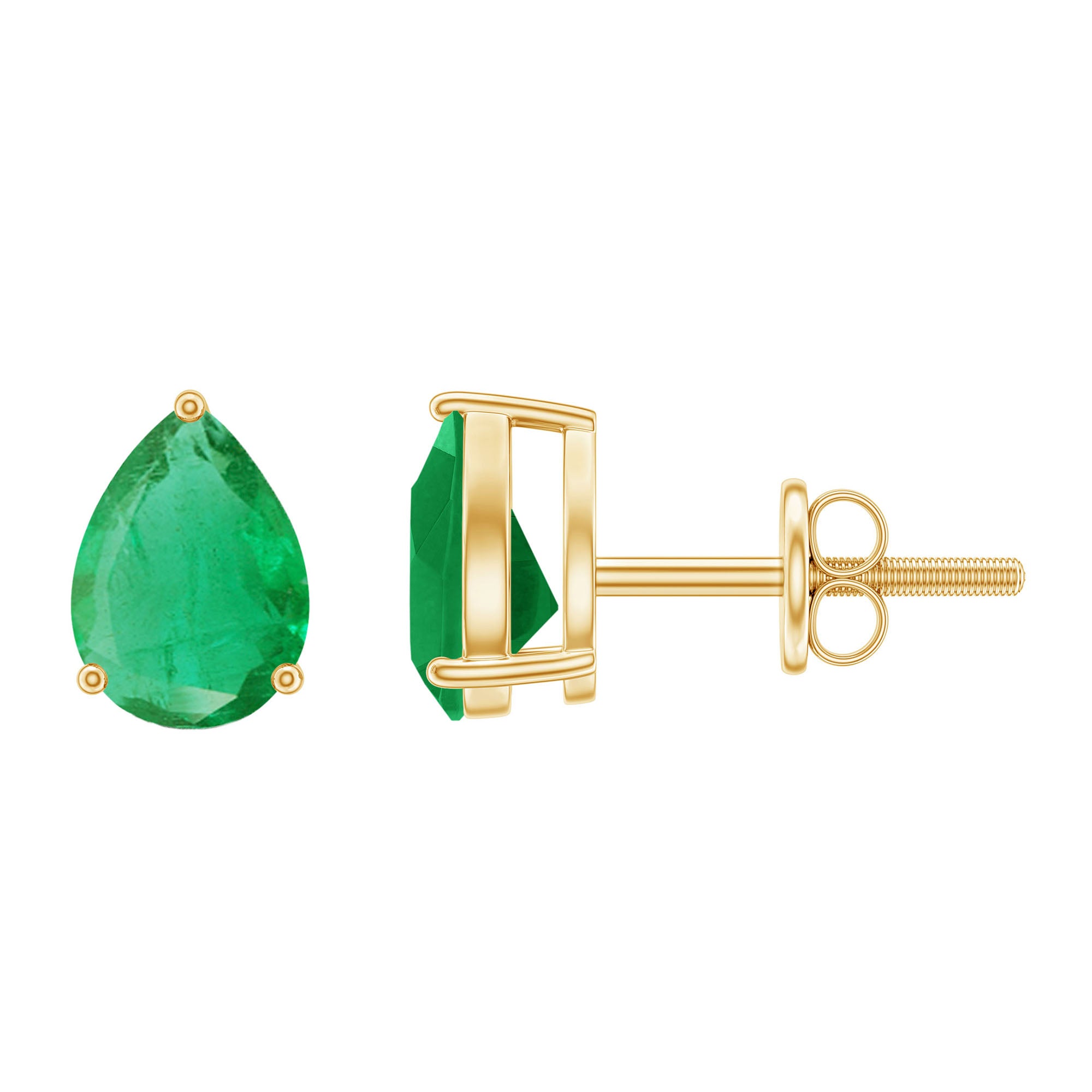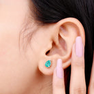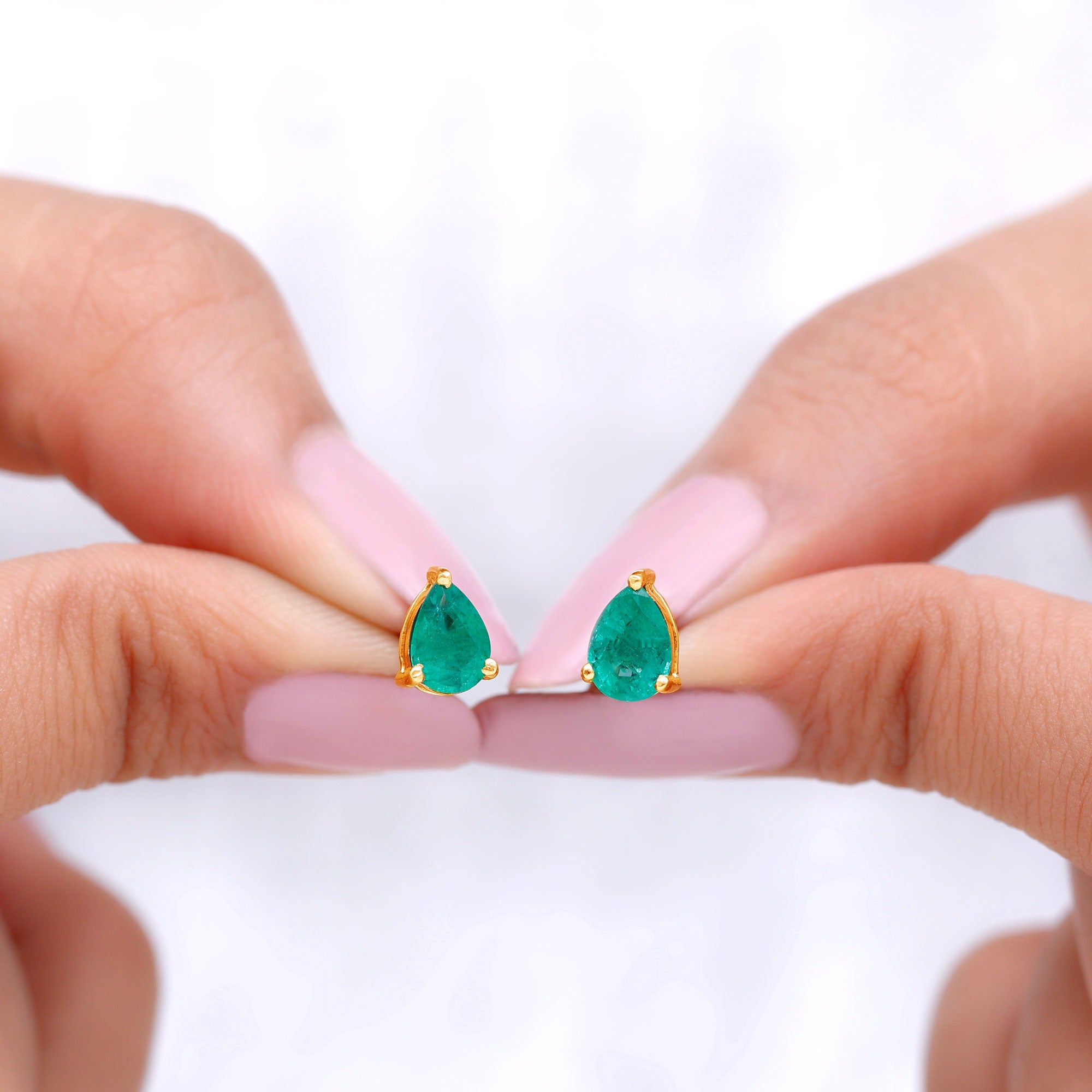 5X7 MM Pear Cut Emerald Solitaire Stud Earring
