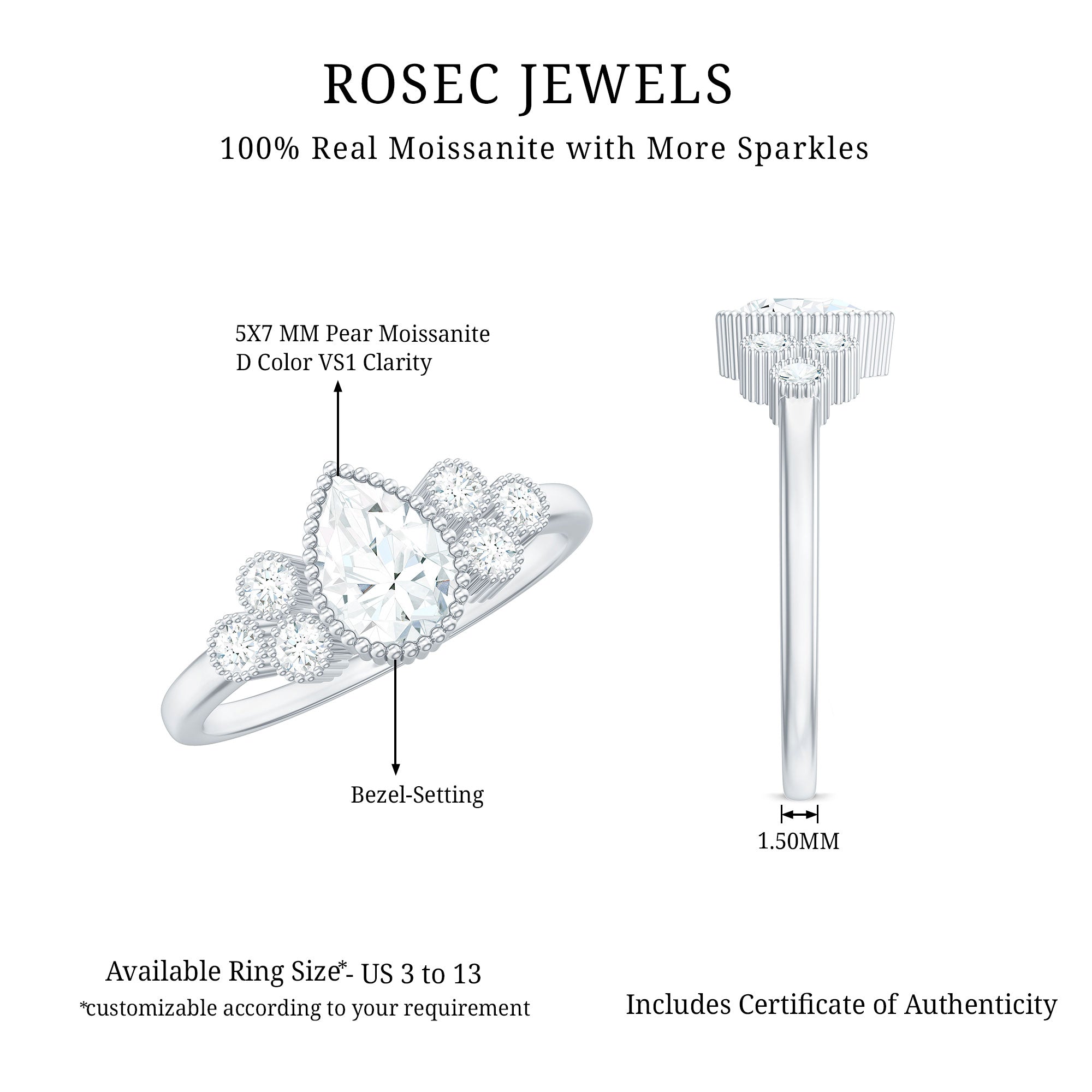 5X7mm Pear Shaped Moissanite Classic Engagement Ring with Beaded Details