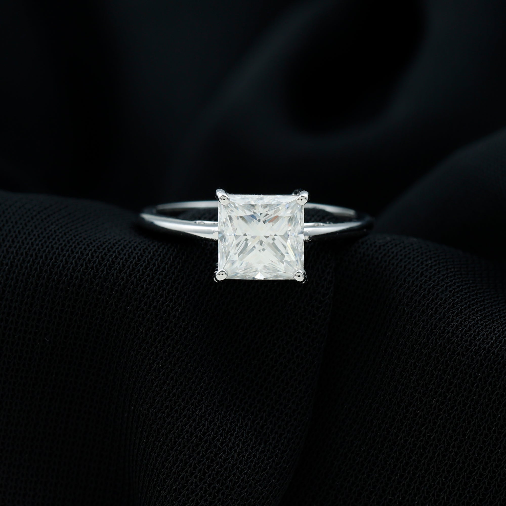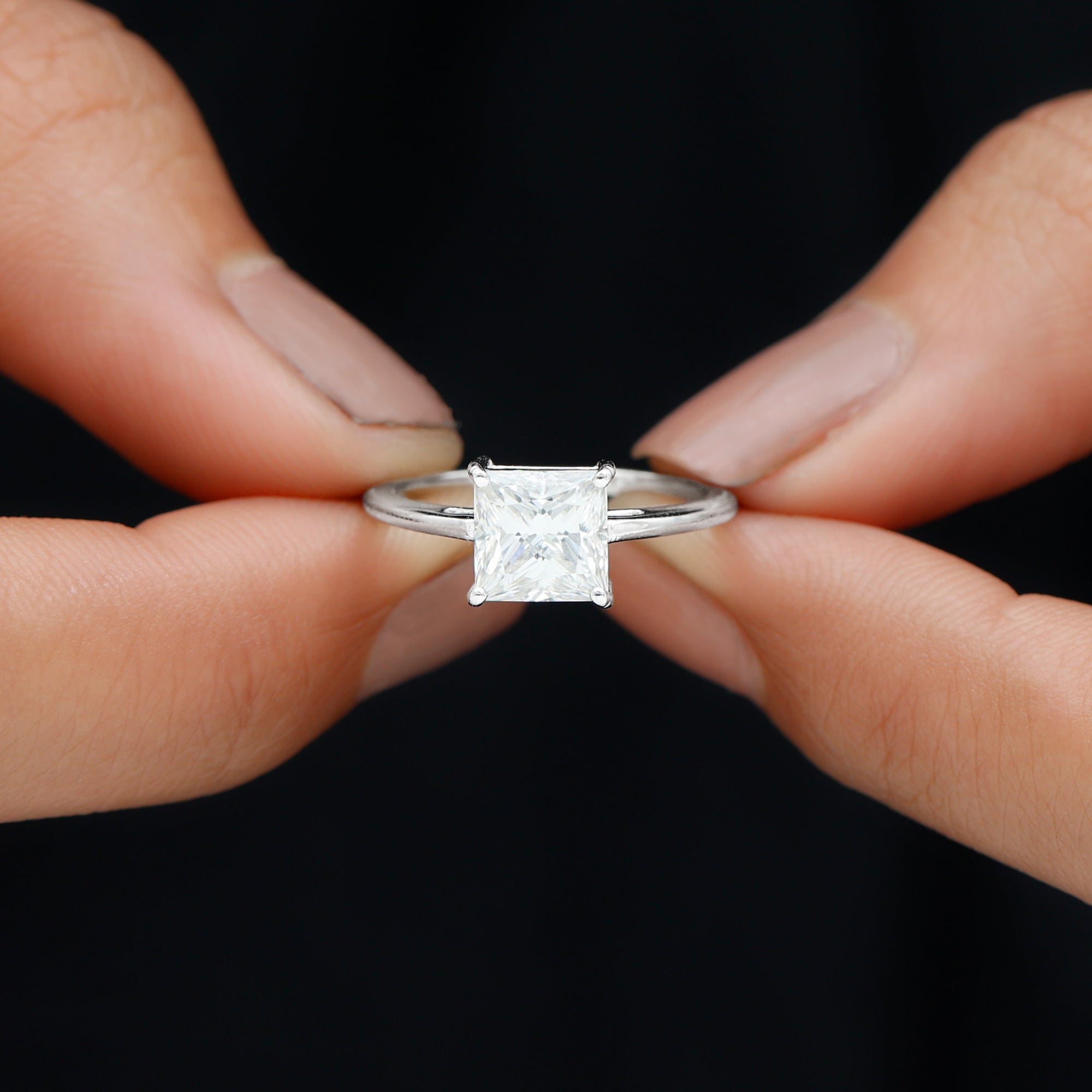 6.5 MM Princess Cut Moissanite Simple Solitaire Ring in 4 Prong Setting