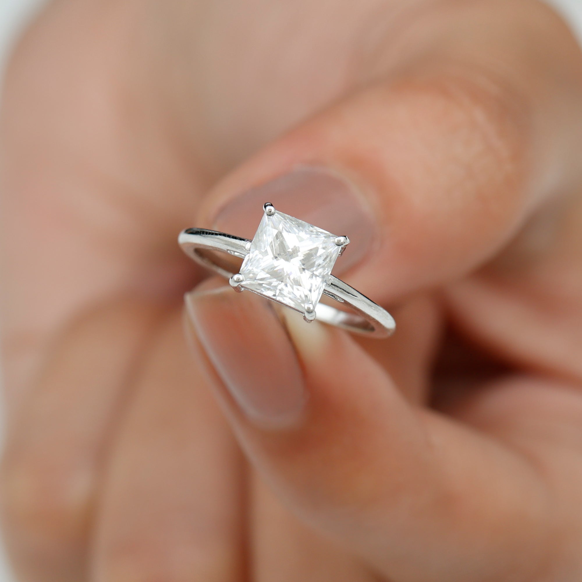 6.5 MM Princess Cut Moissanite Simple Solitaire Ring in 4 Prong Setting