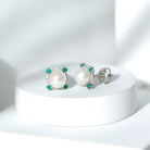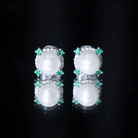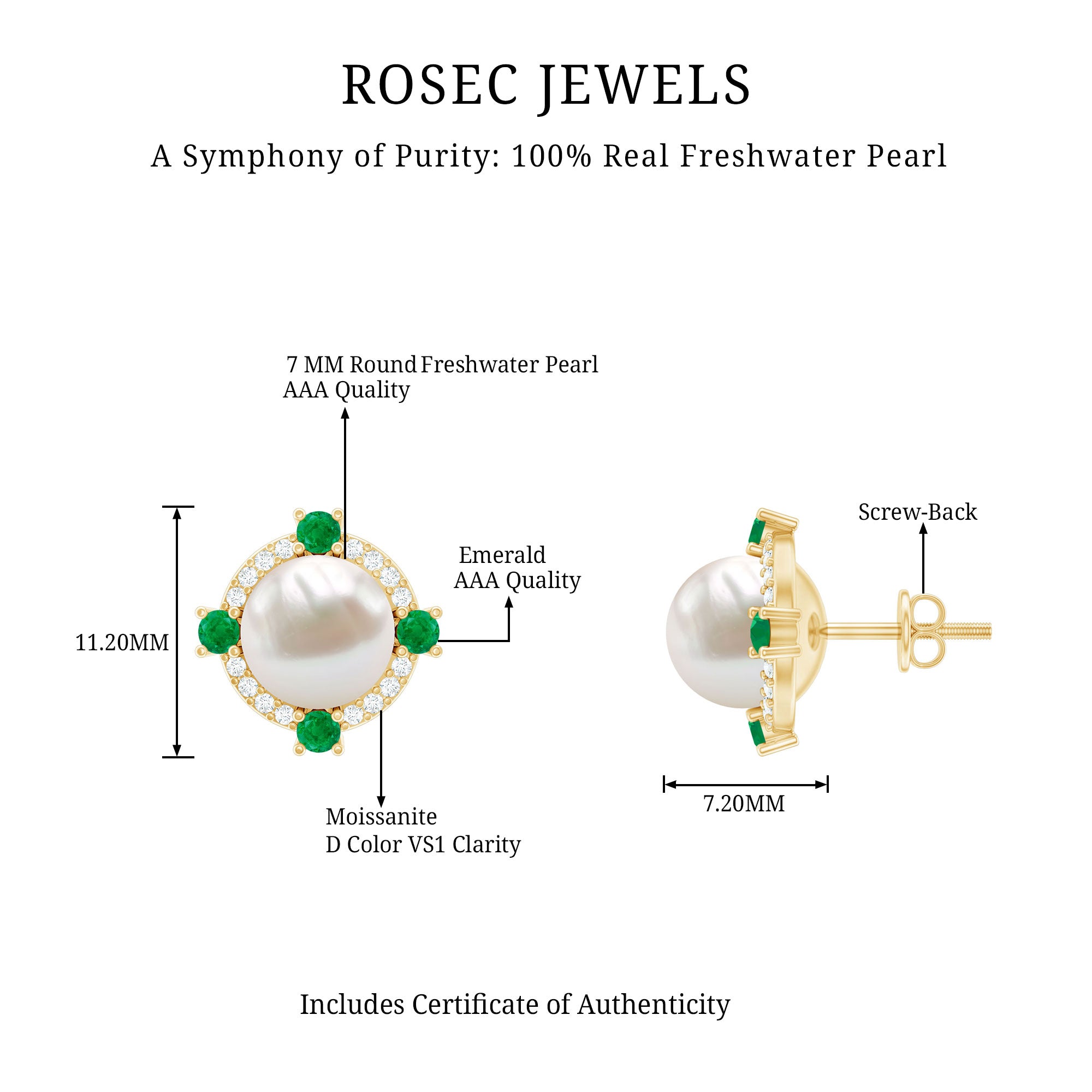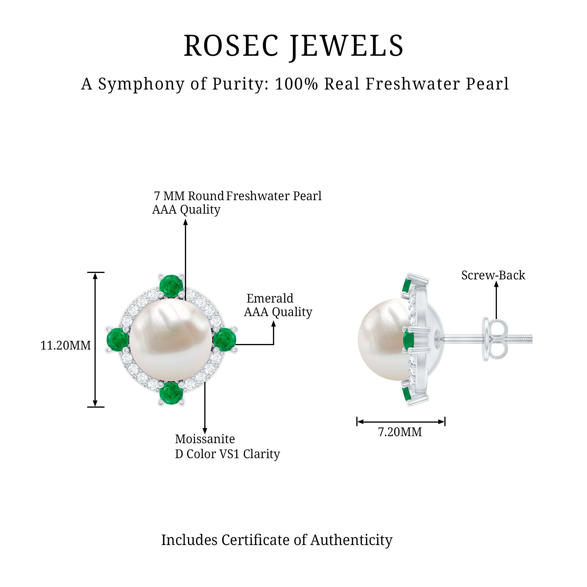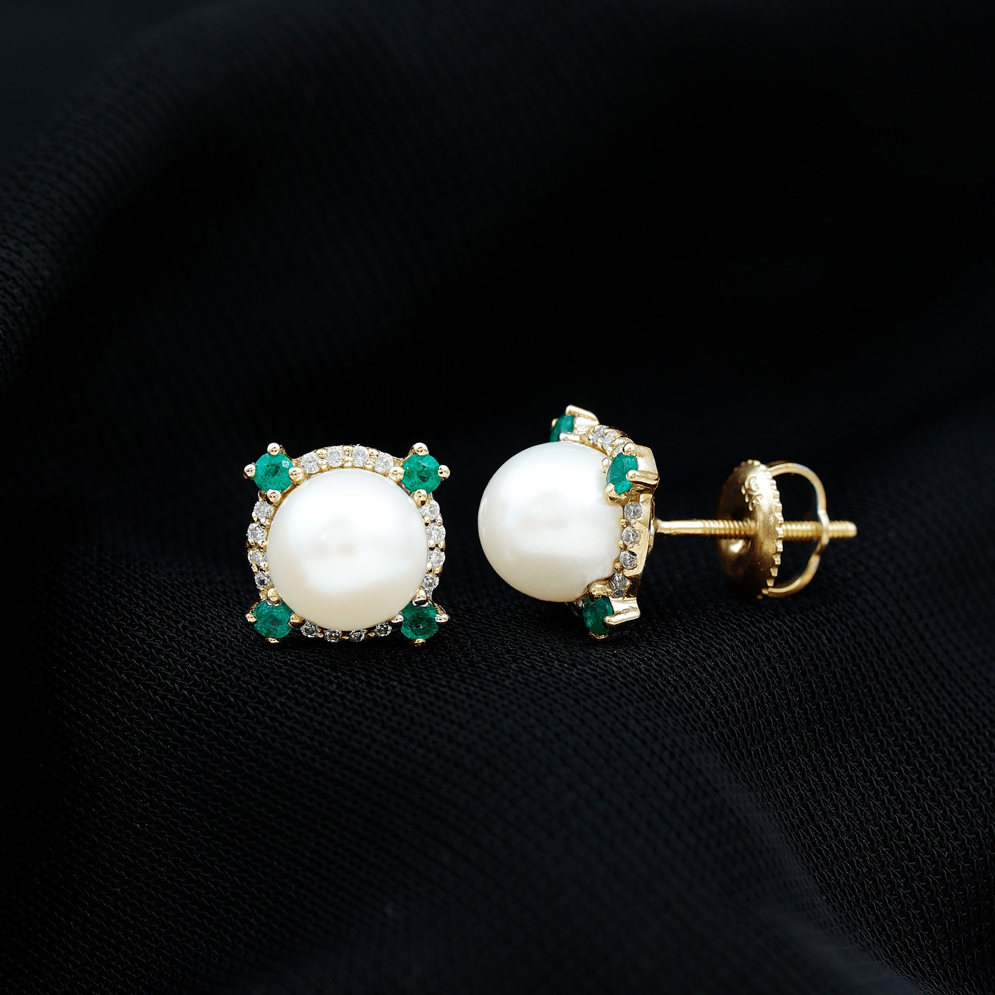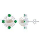 6.50 CT Freshwater Pearl Solitaire Studs with Emerald and Moissanite Halo