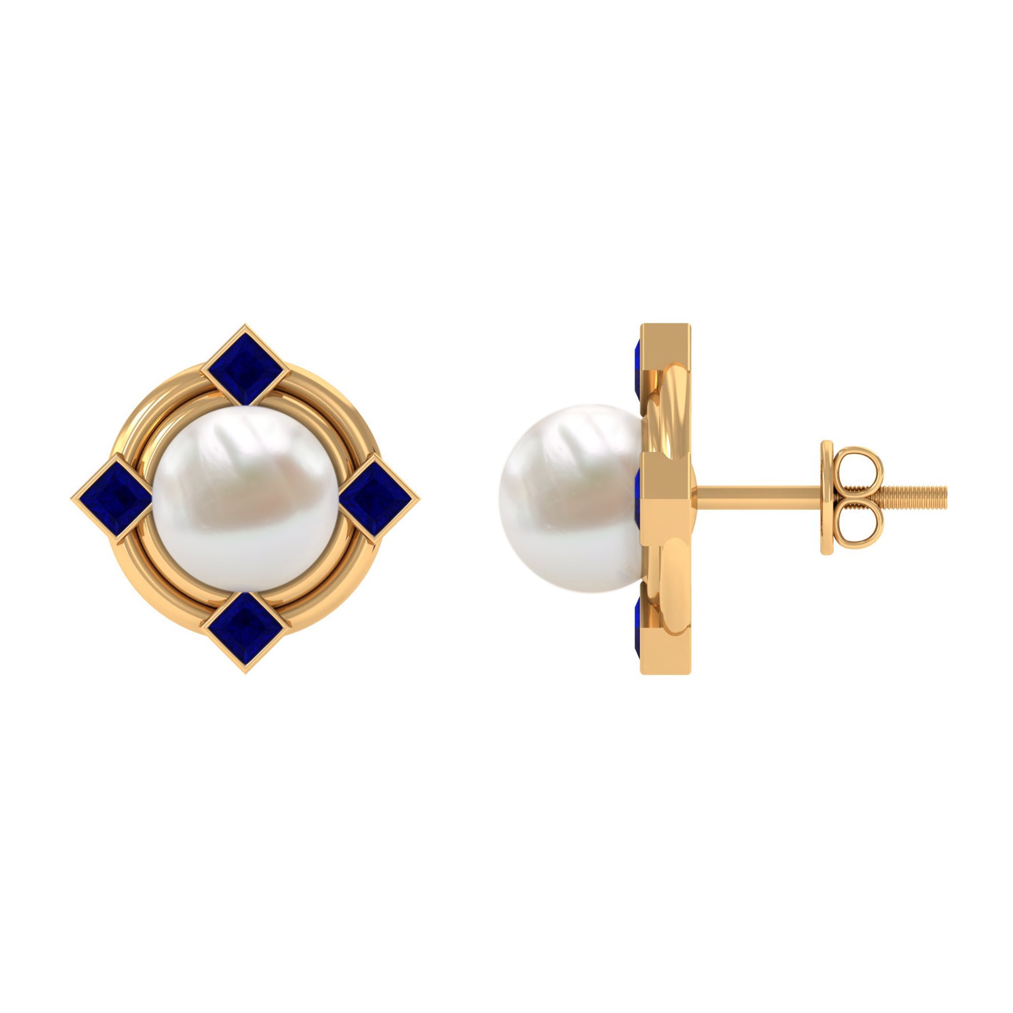 6.50 CT Modern Stud Earrings with Freshwater Pearl and Blue Sapphire