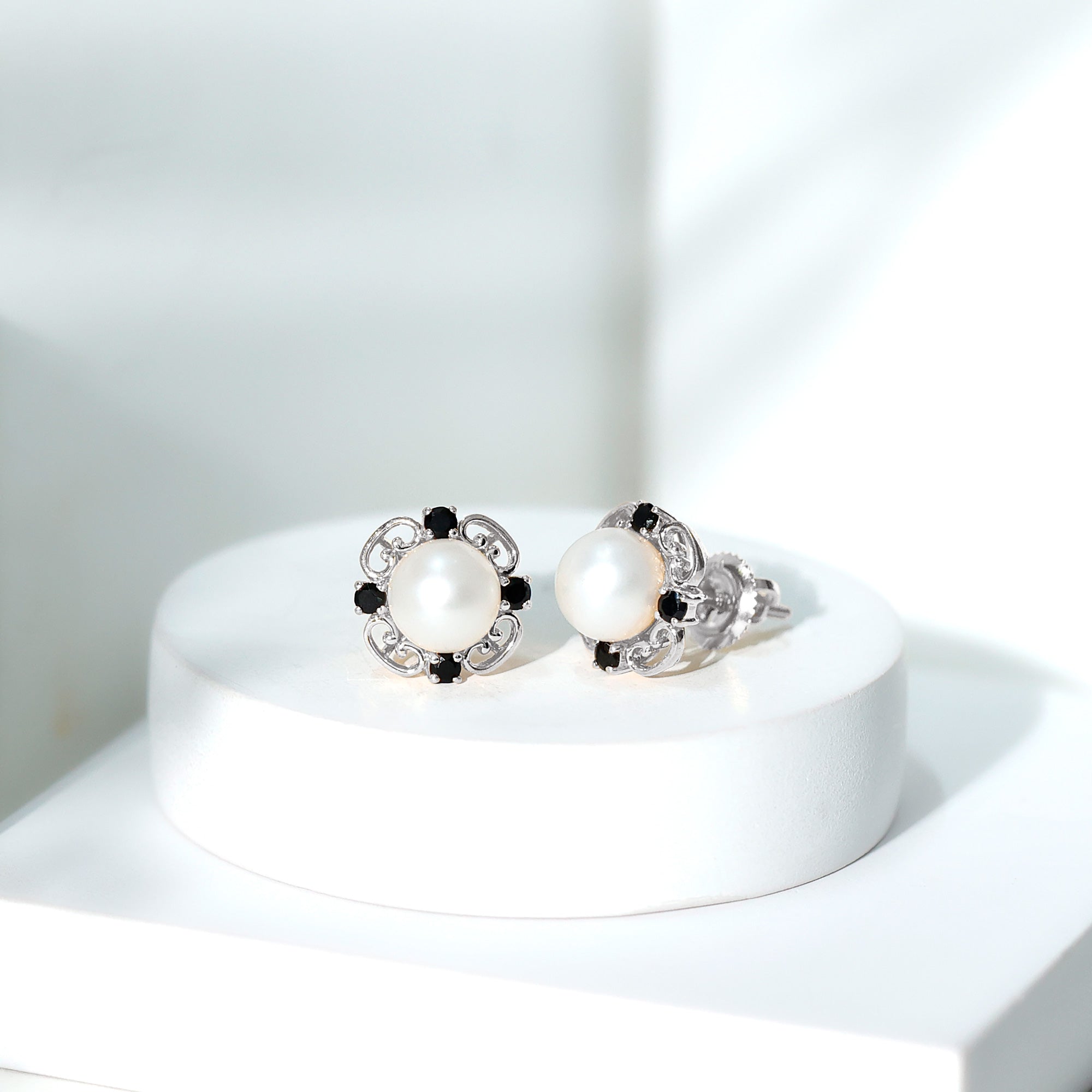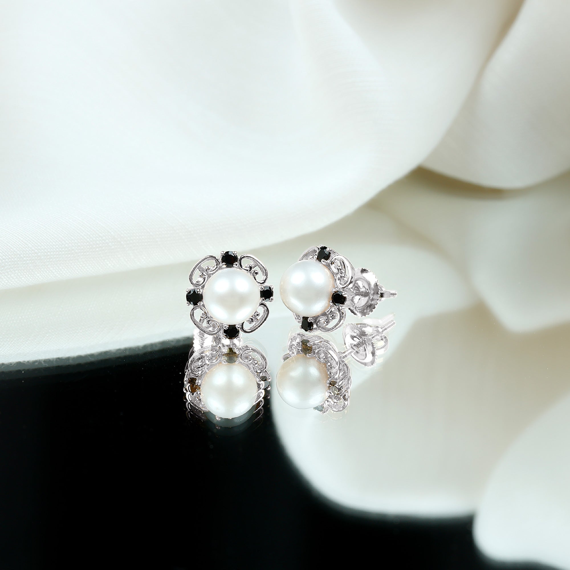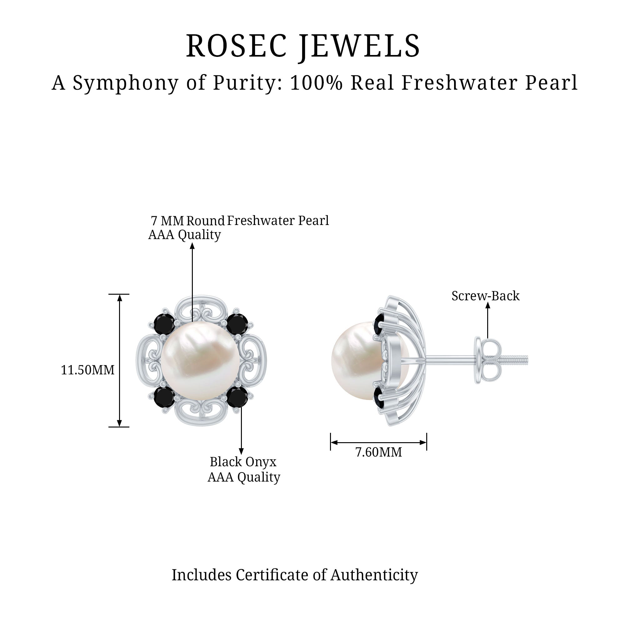 6.75 CT Vintage Stud Earrings with Freshwater Pearl and Black Onyx