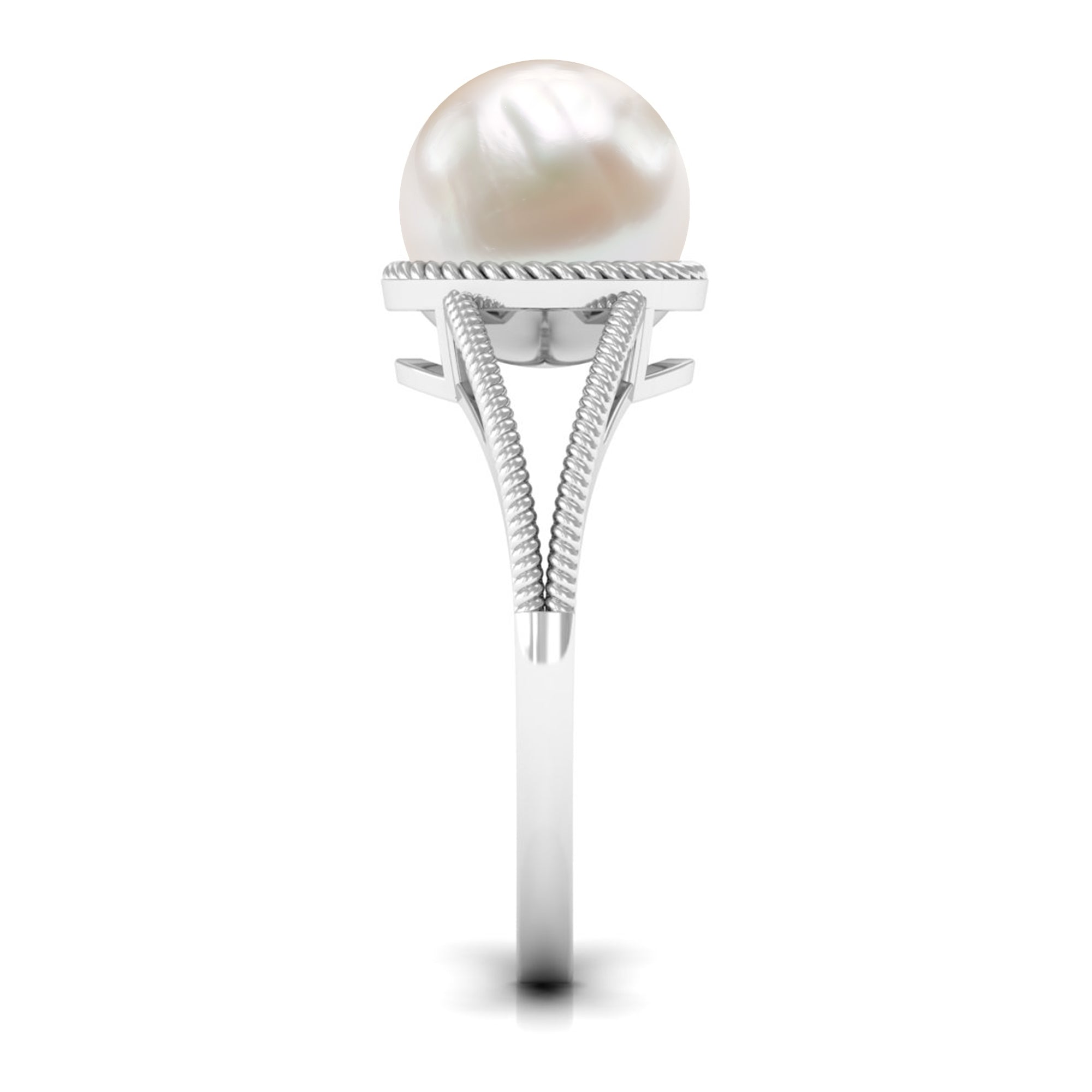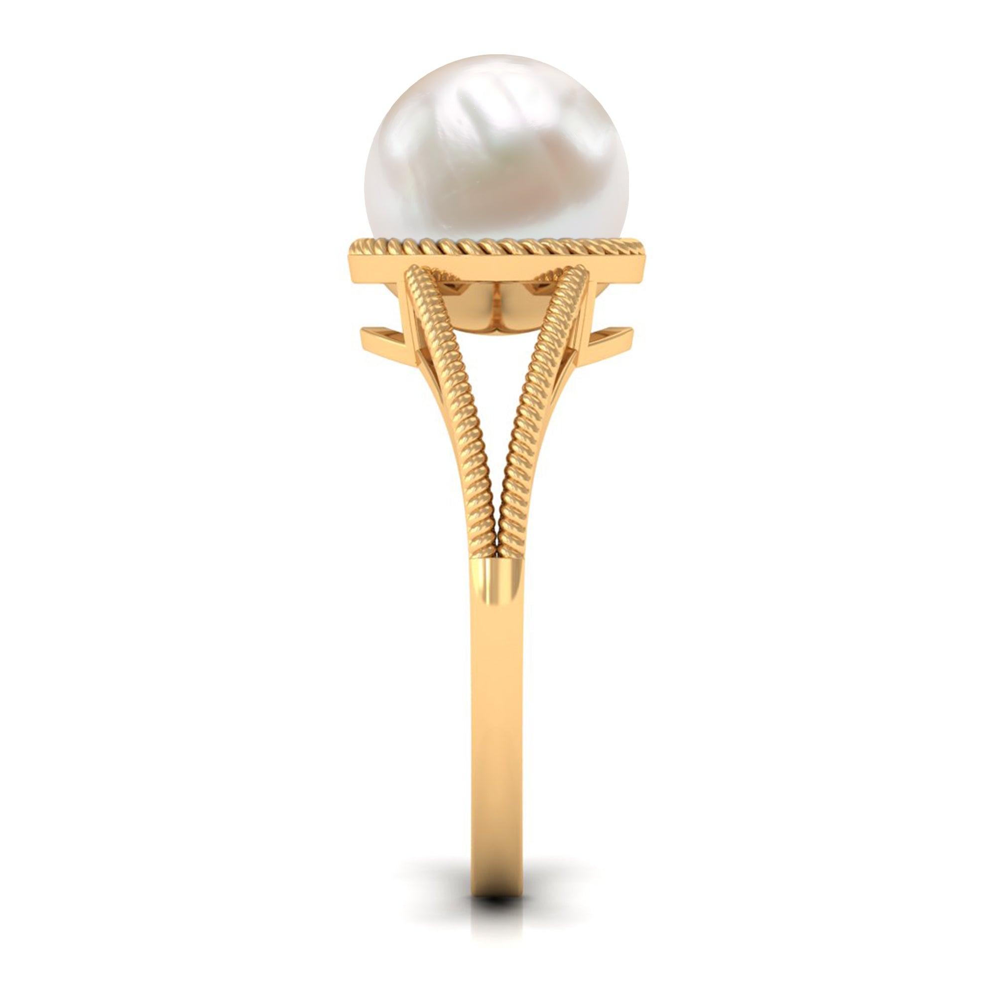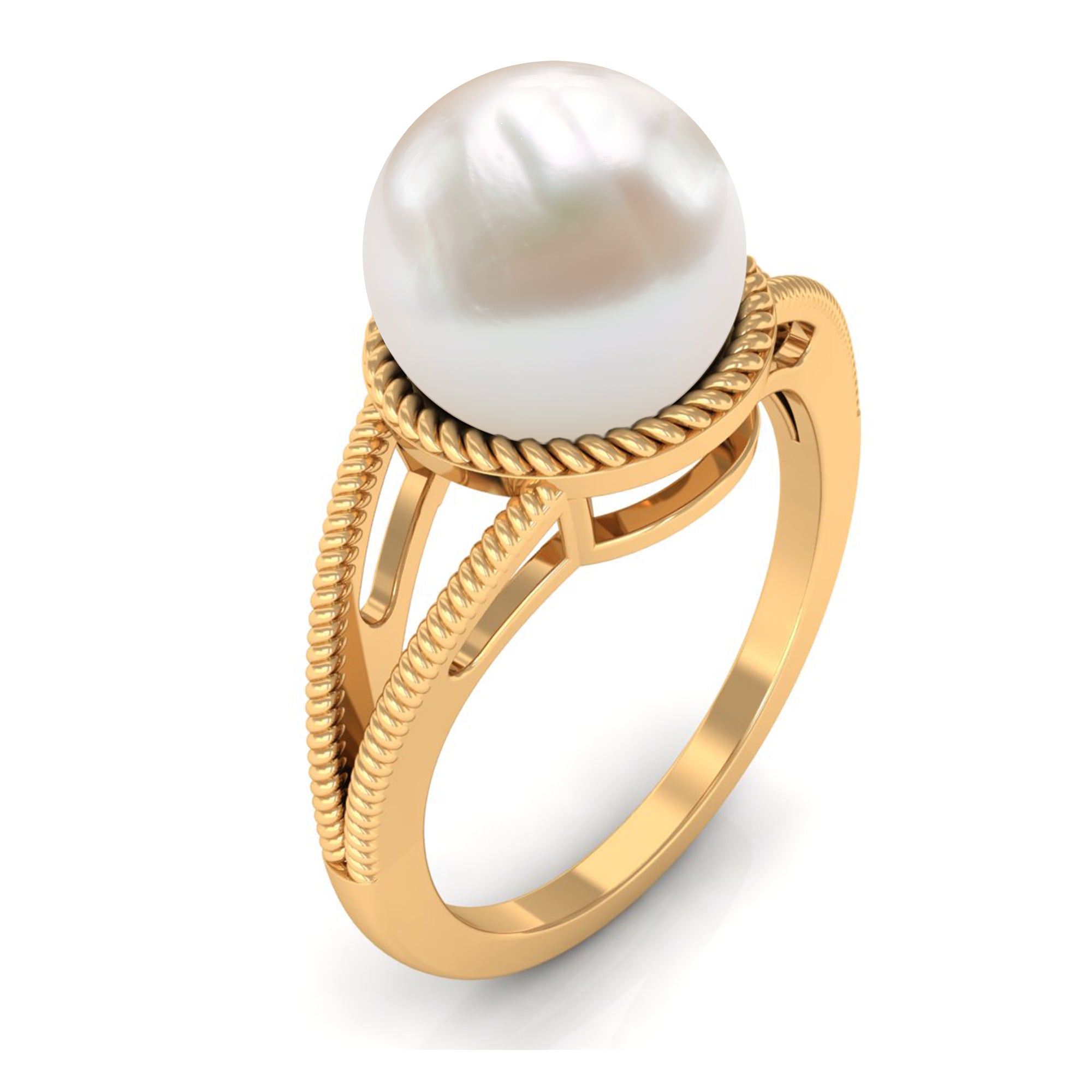 6 CT Split Shank Freshwater Pearl Solitaire Ring in Gold Rope frame