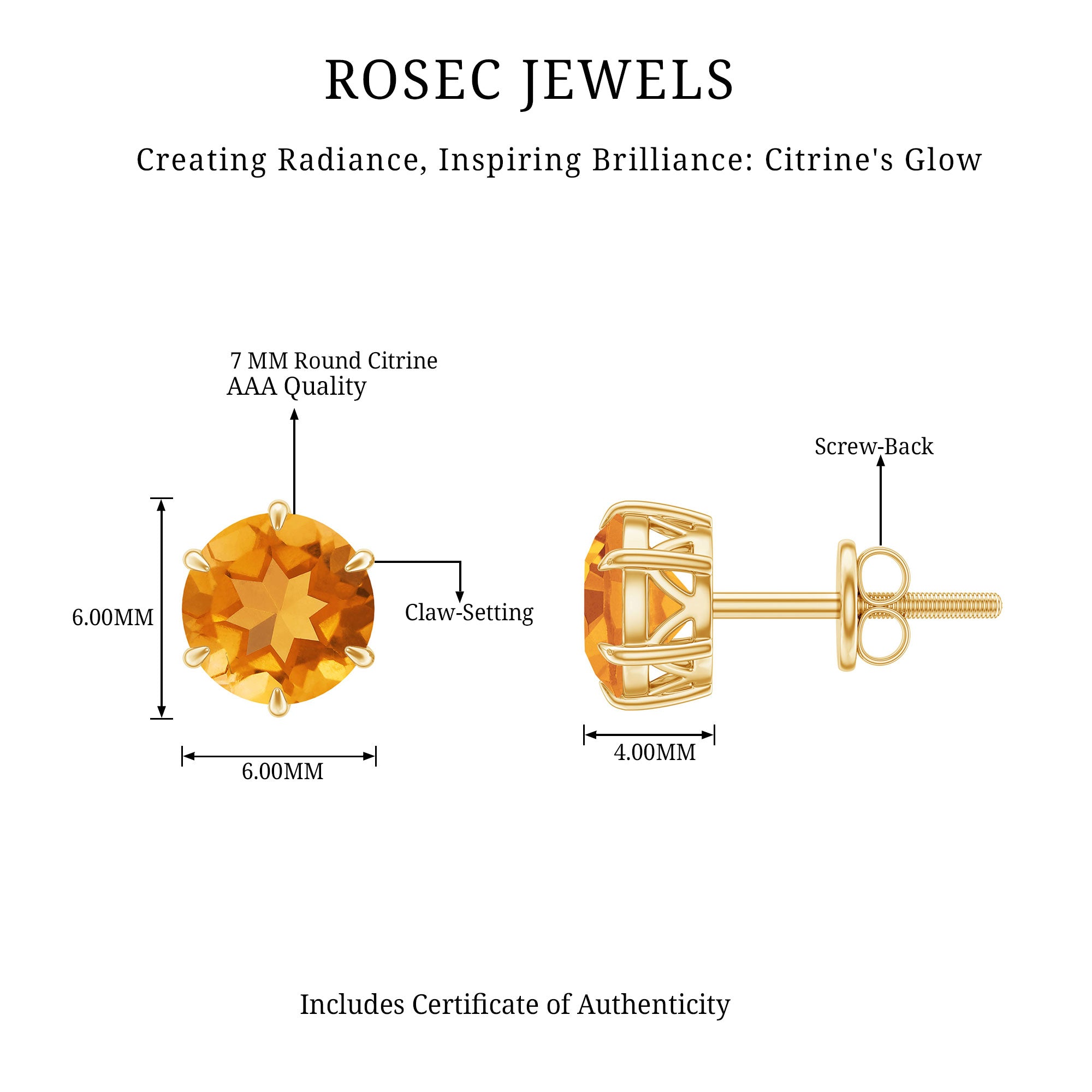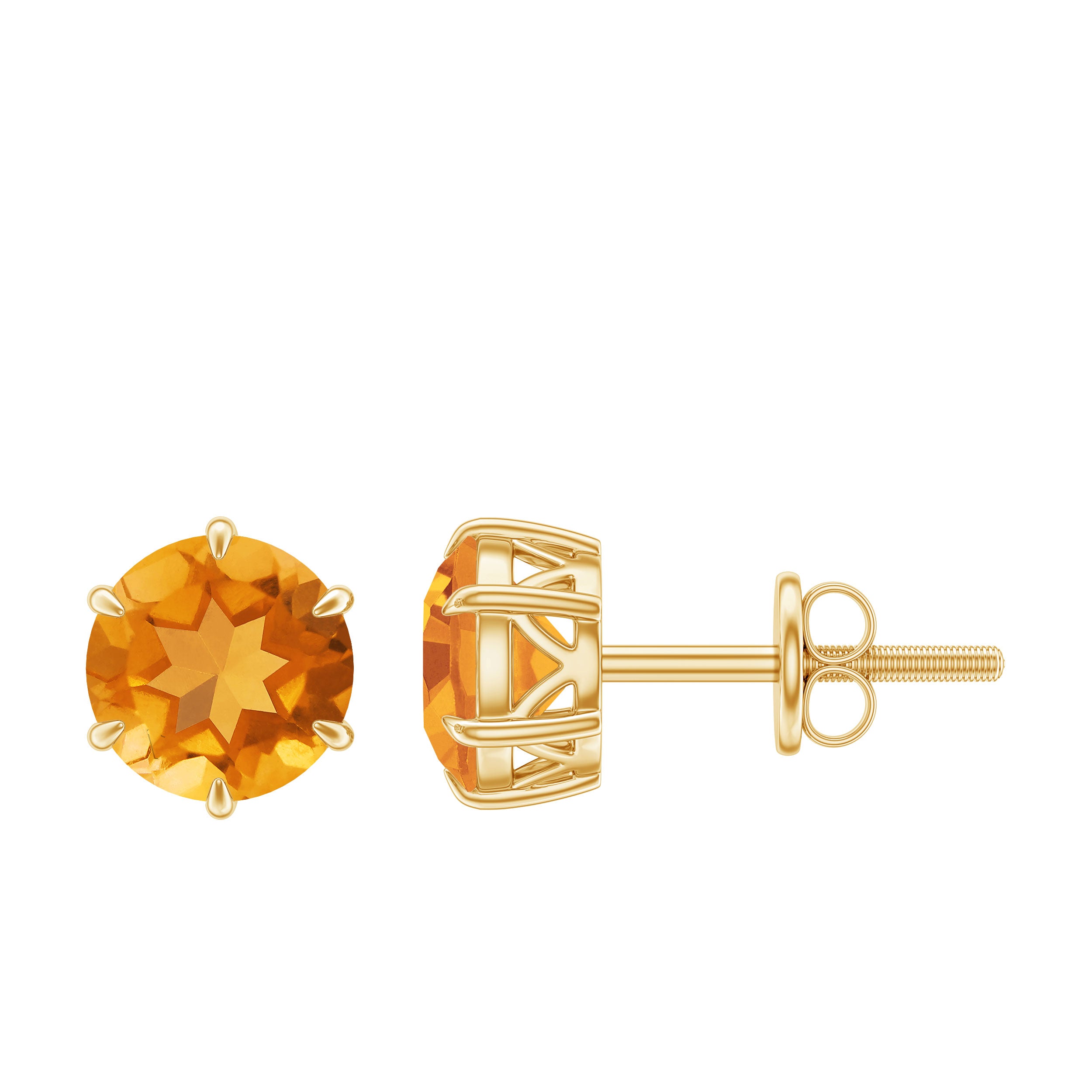 Make a Statement with this Simple Stud Earrings featuring Round Cut Citrine set in Claw setting and adorned in Solid Gold.