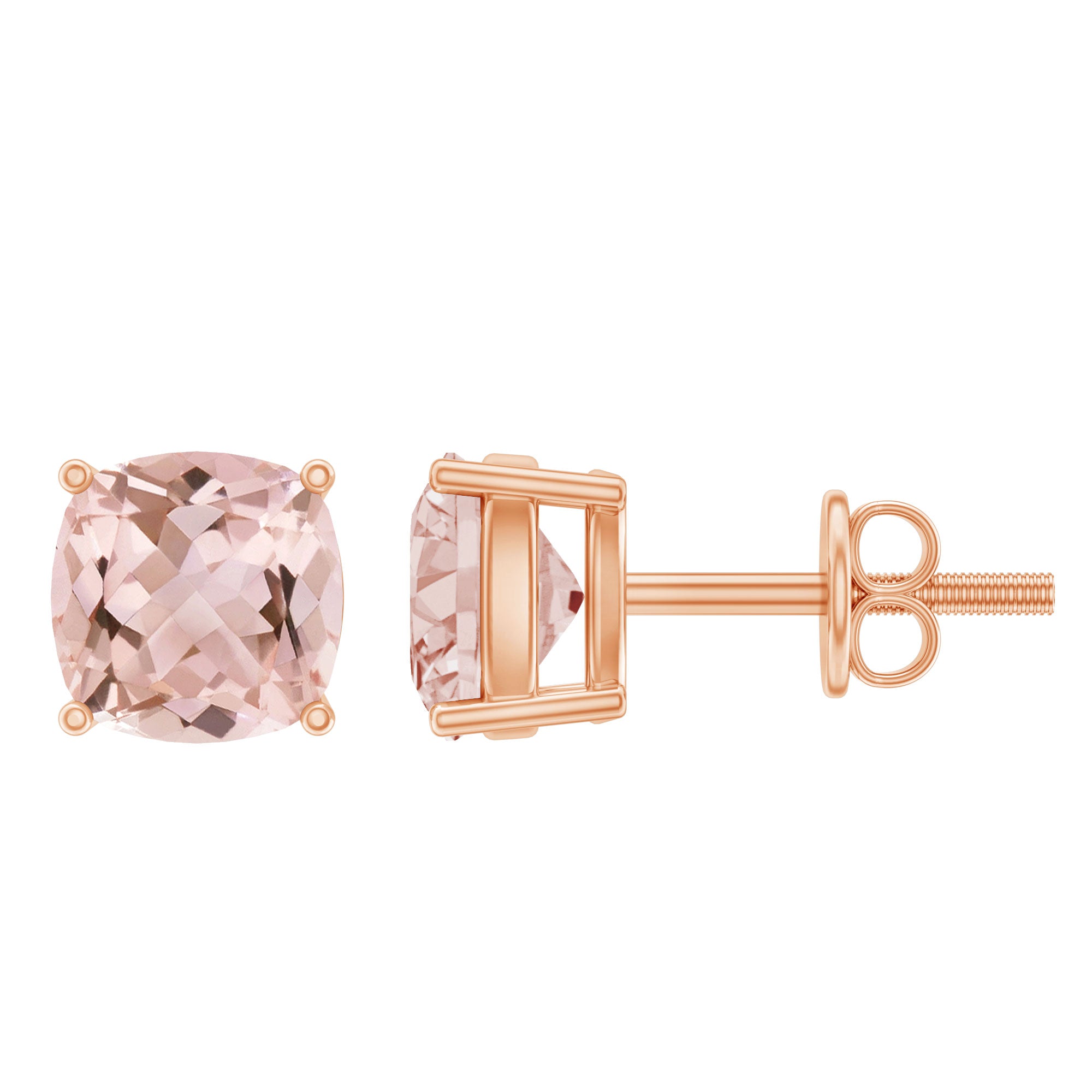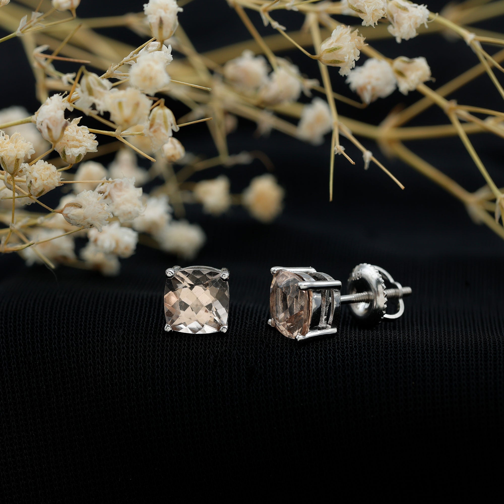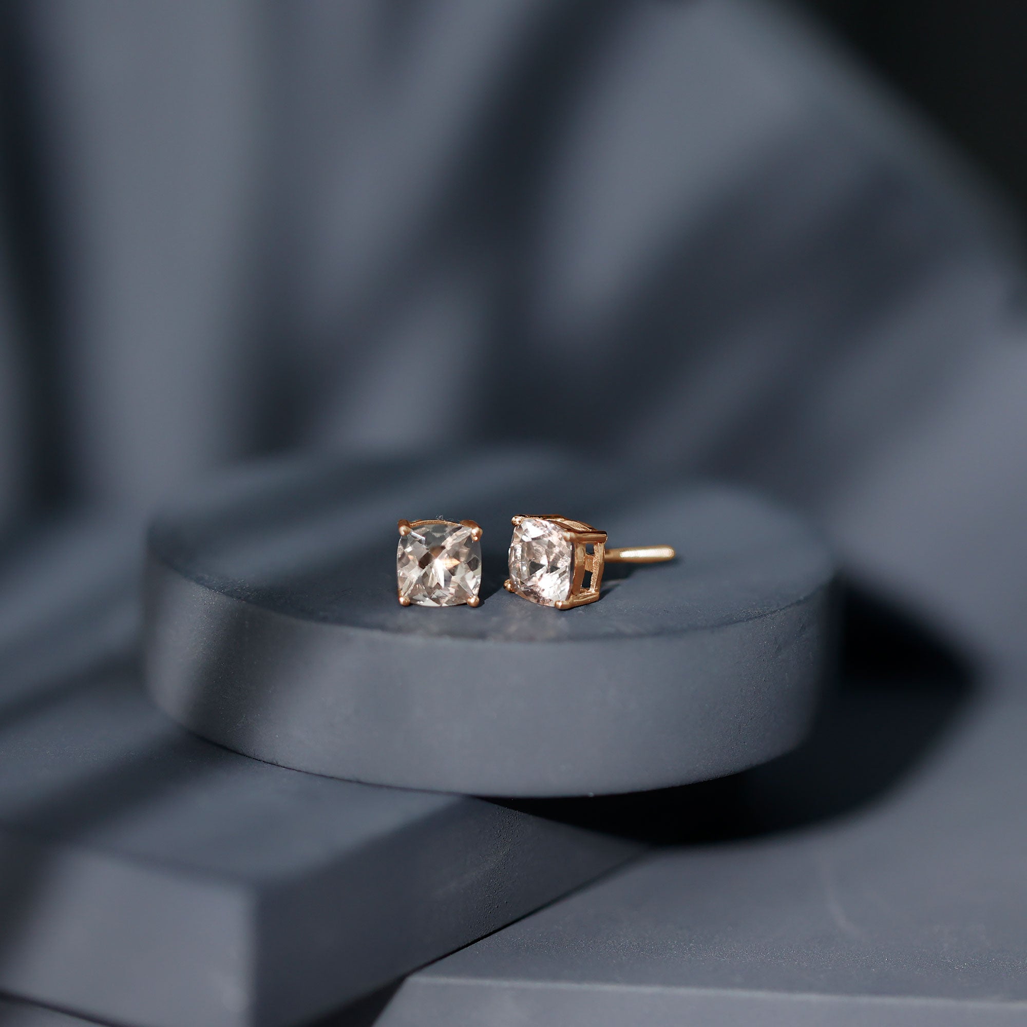 6 MM Cushion Cut Solitaire Morganite Stud Earrings