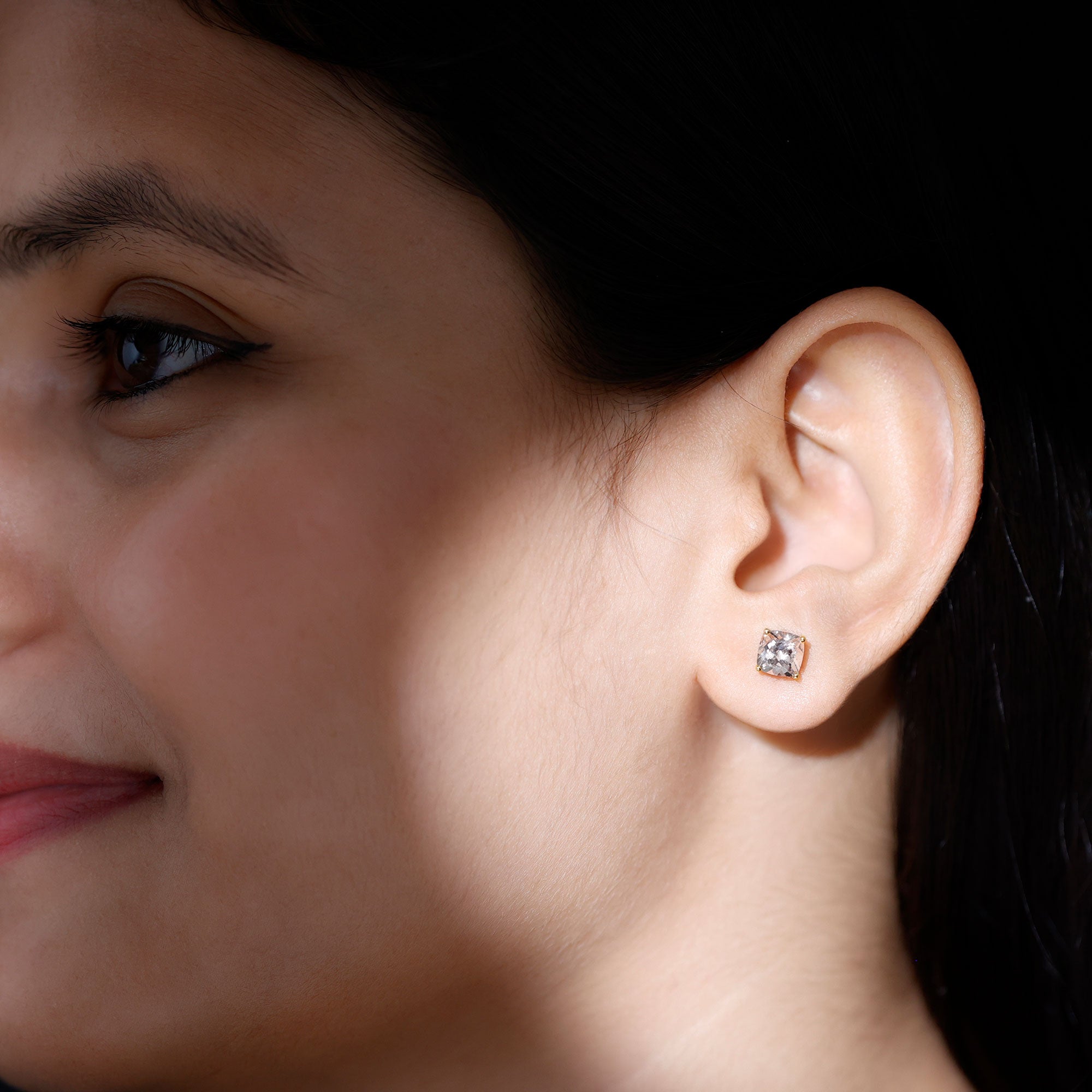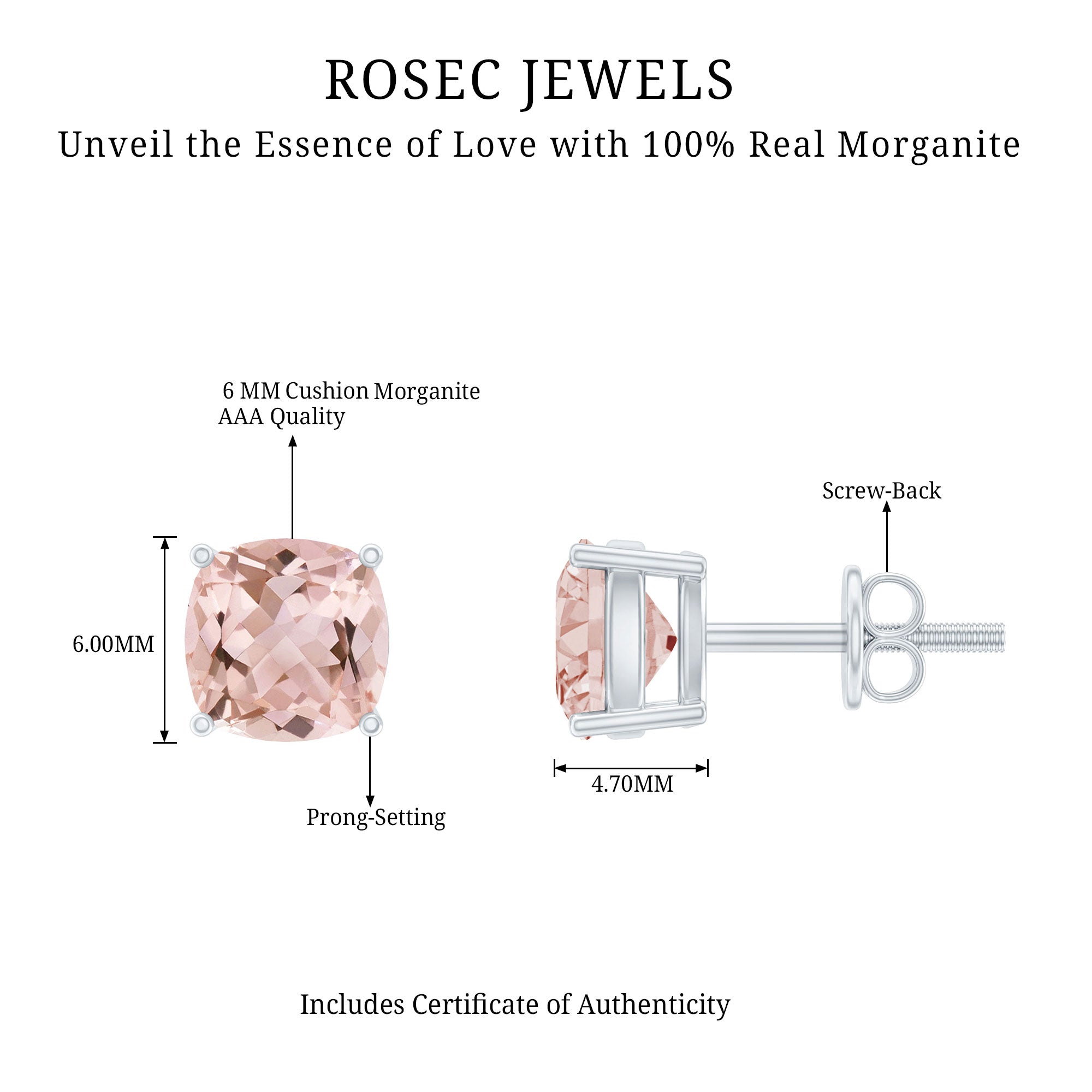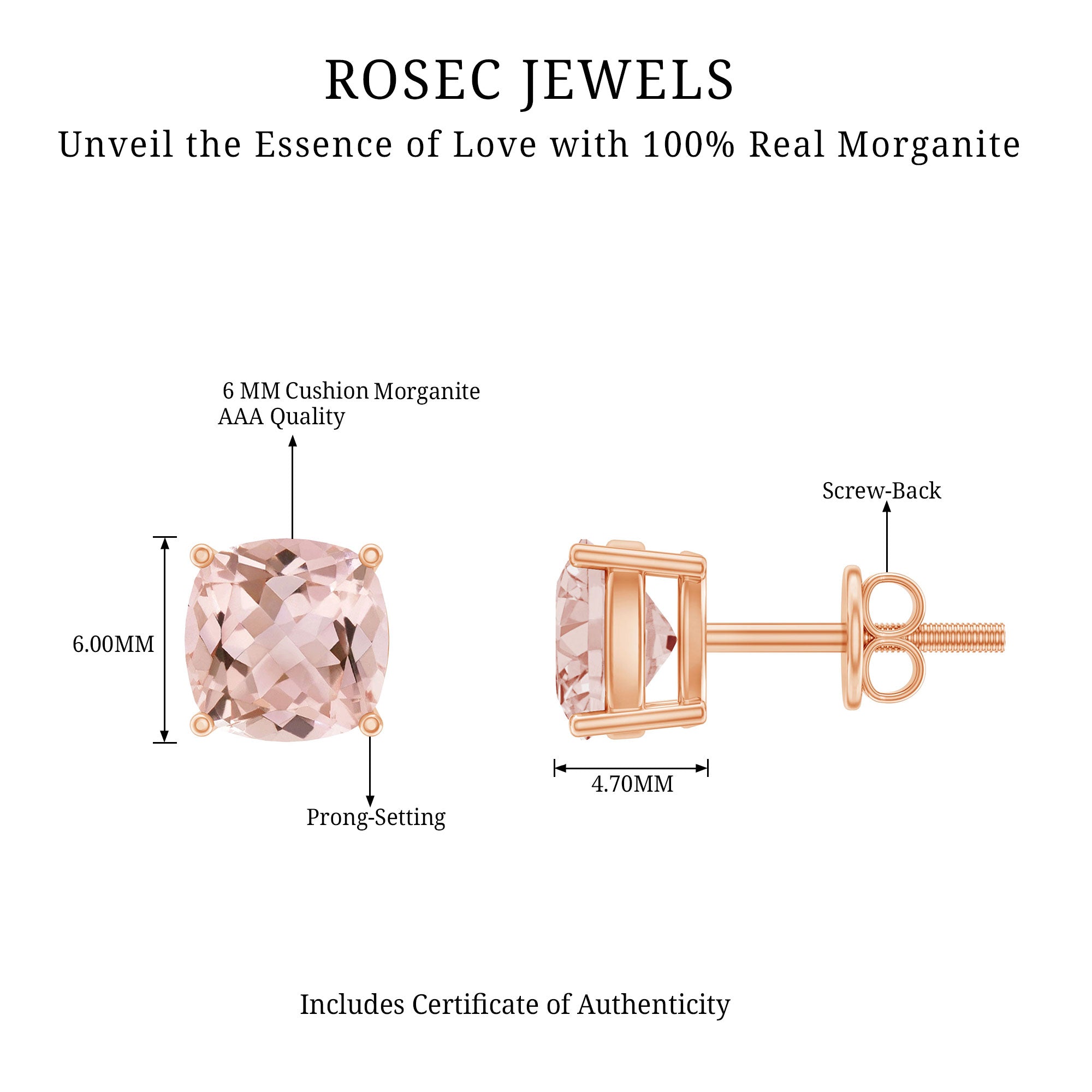 6 MM Cushion Cut Solitaire Morganite Stud Earrings