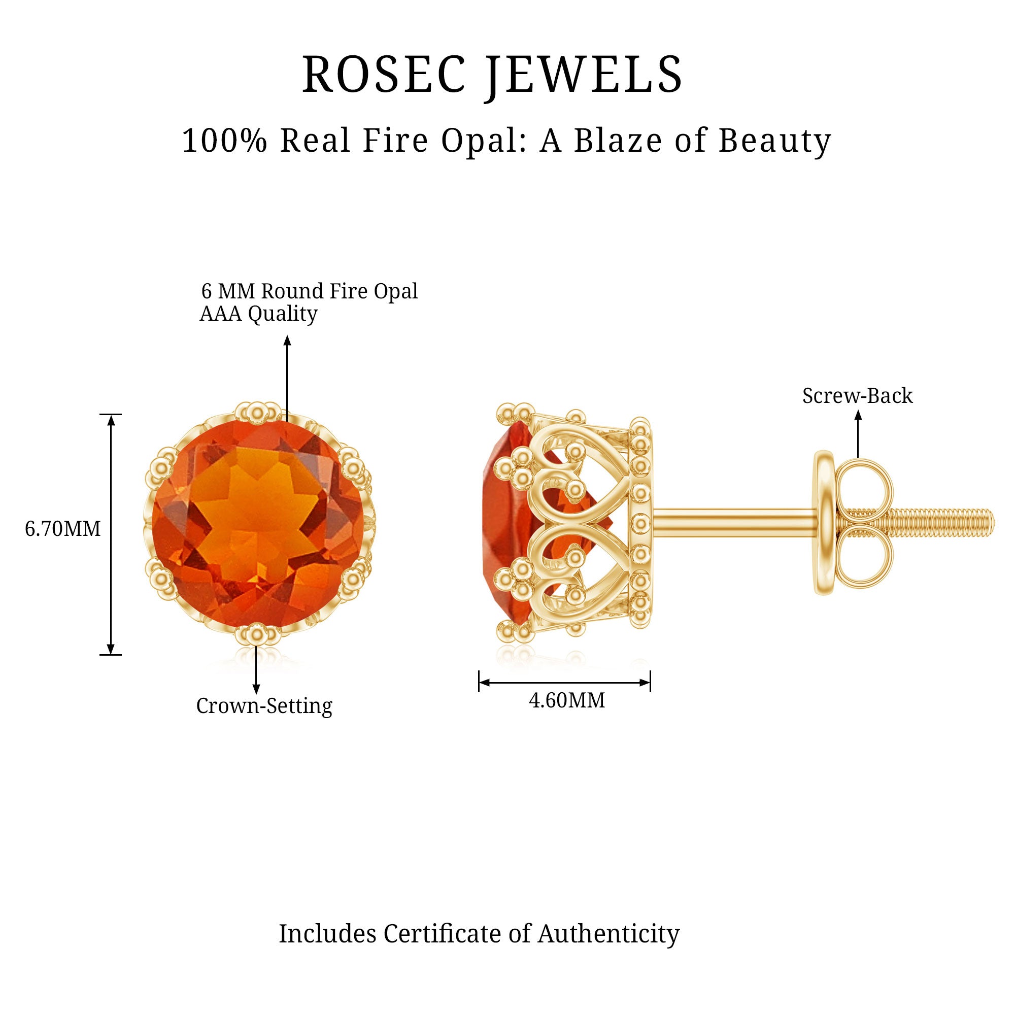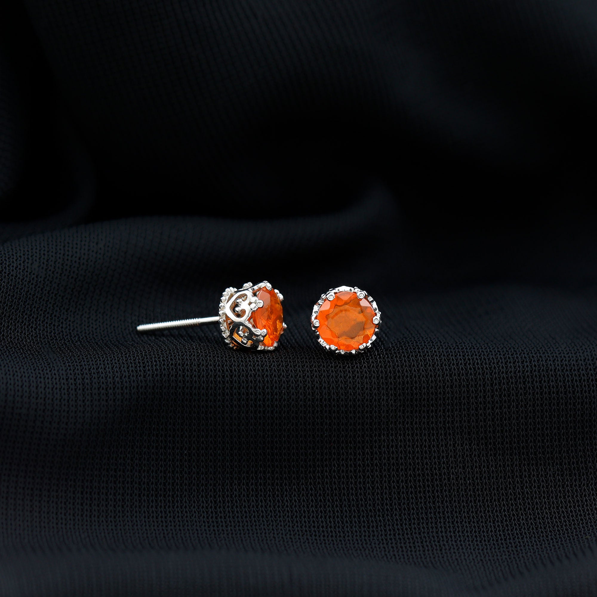 6 MM Fire Opal Solitaire Crown Stud Earrings