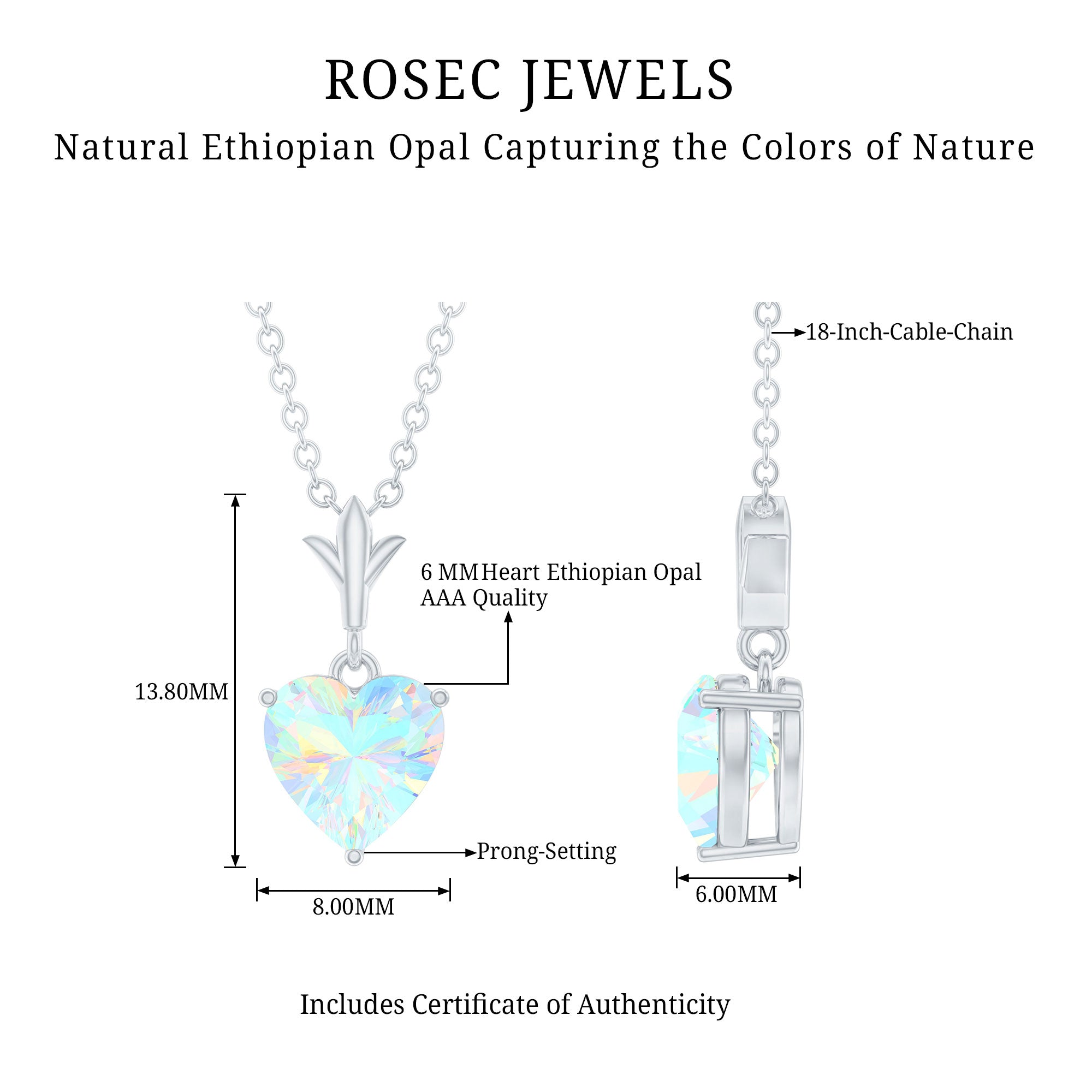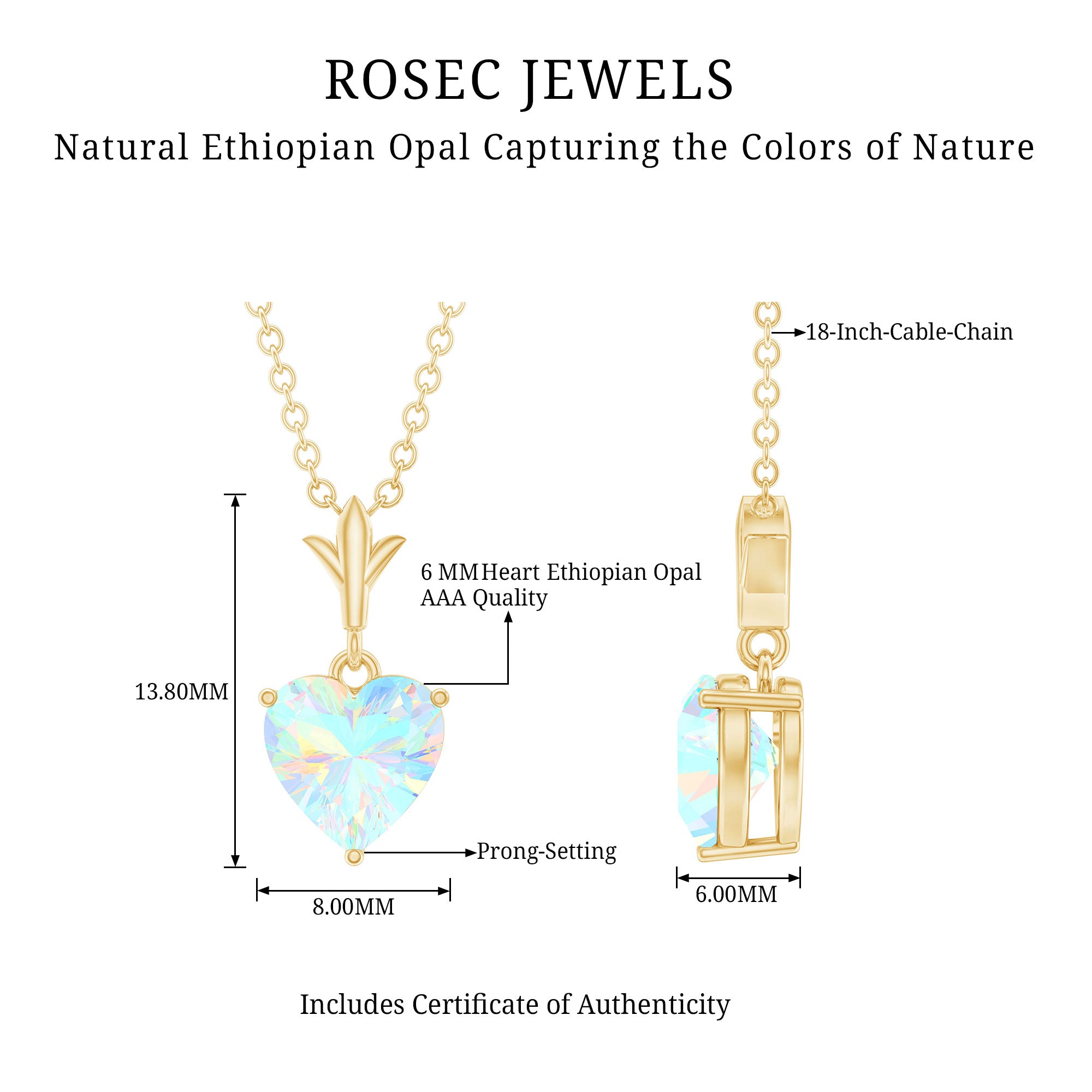 6MM Heart Shape Ethiopian Opal Necklace With Chain