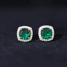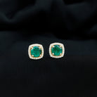 6 MM Lab Grown Emerald Stud Earrings with Diamond Halo