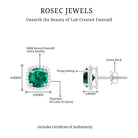 Experience pure joy with our Lab Grown Emerald Stud Earrings. It is adorned with 6 MM Round Shape Created Emerald and embellished with Round Shape Diamond Halo. The Prong and Pave setting techniques enhance the beauty and elegance of these Halo Stud Earrings, making them a perfect choice to add some sparkle and glamour to any outfit. This Emerald Screw Back Earrings beholds the captivating and timeless appeal that will surely turn heads. The classic earrings with screw on backs beholds the mesmerizing shine of AAAA quality Lab-Grown Emeralds and HI-SI quality Diamonds. These Square Earrings will elevate the normal to a glamorous look.