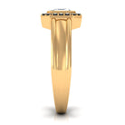A dazzling moissanite engagement ring with a black diamond that captures the essence of eternal love. A sparkling 6 MM moissanite center stone surrounded by a halo of black diamonds, makes this piece more astonishing. The bezel setting ensures the stability and durability of the center stone. This stunning ring is sure to captivate your beloved. It is a symbol of a love that is as rare and precious as a star, destined to shine forever.