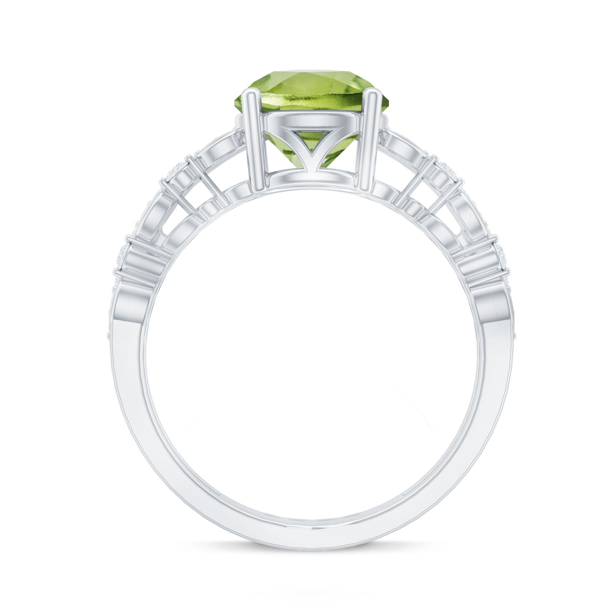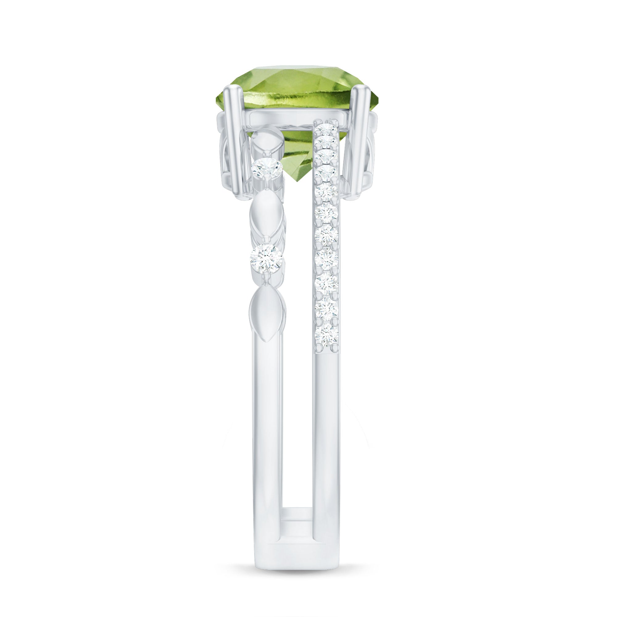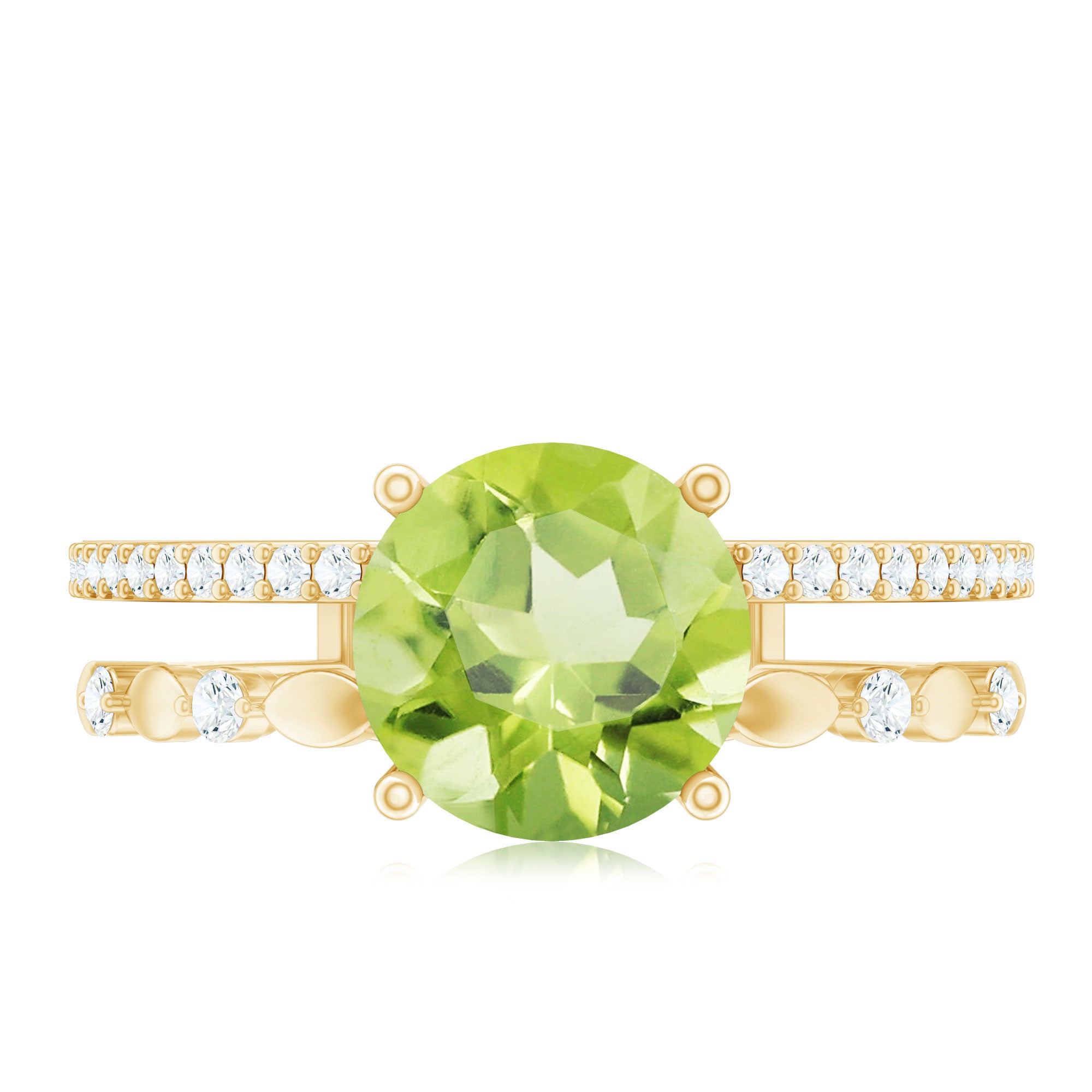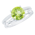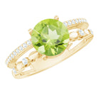 6 MM Peridot Double Band Solitaire Engagement Ring with Diamond
