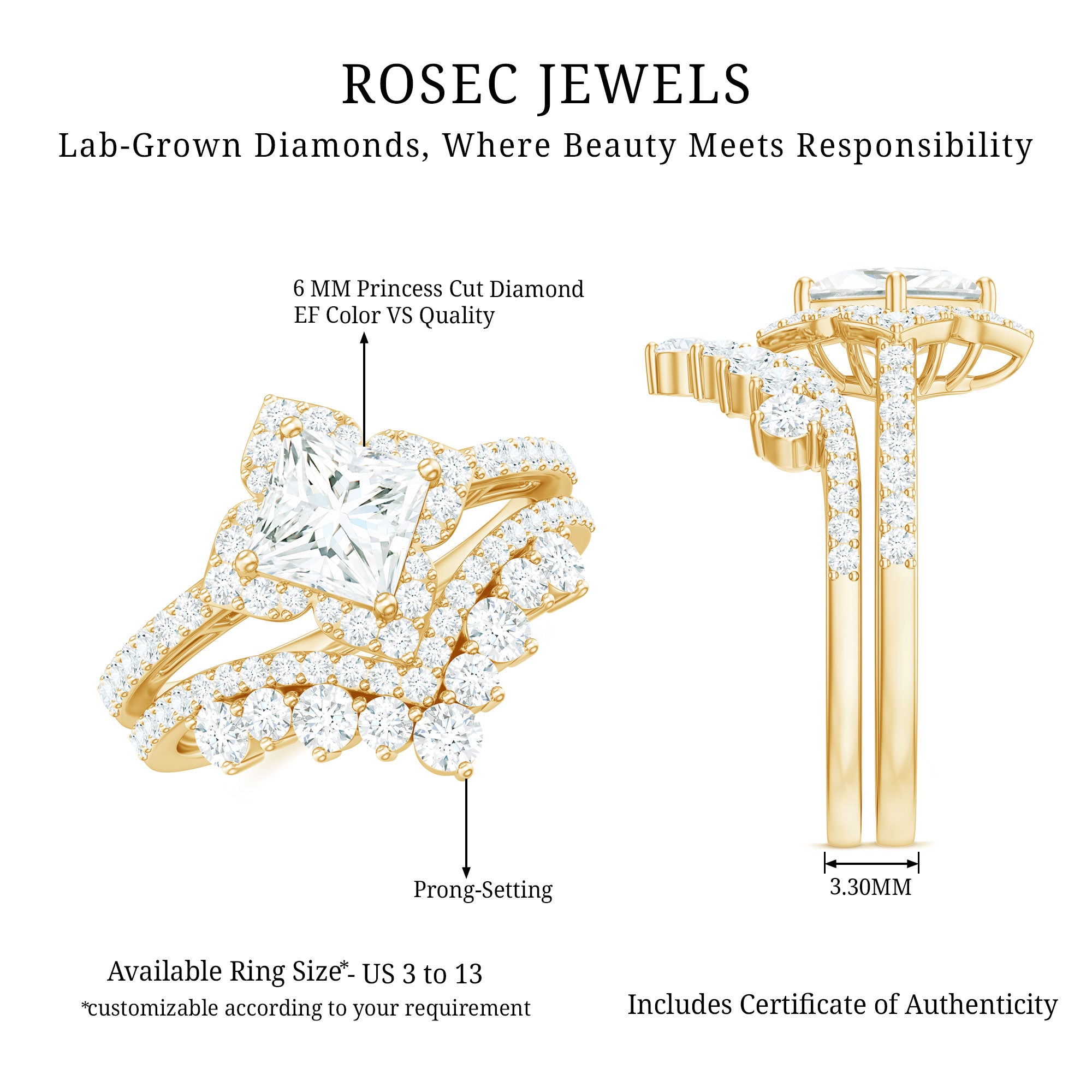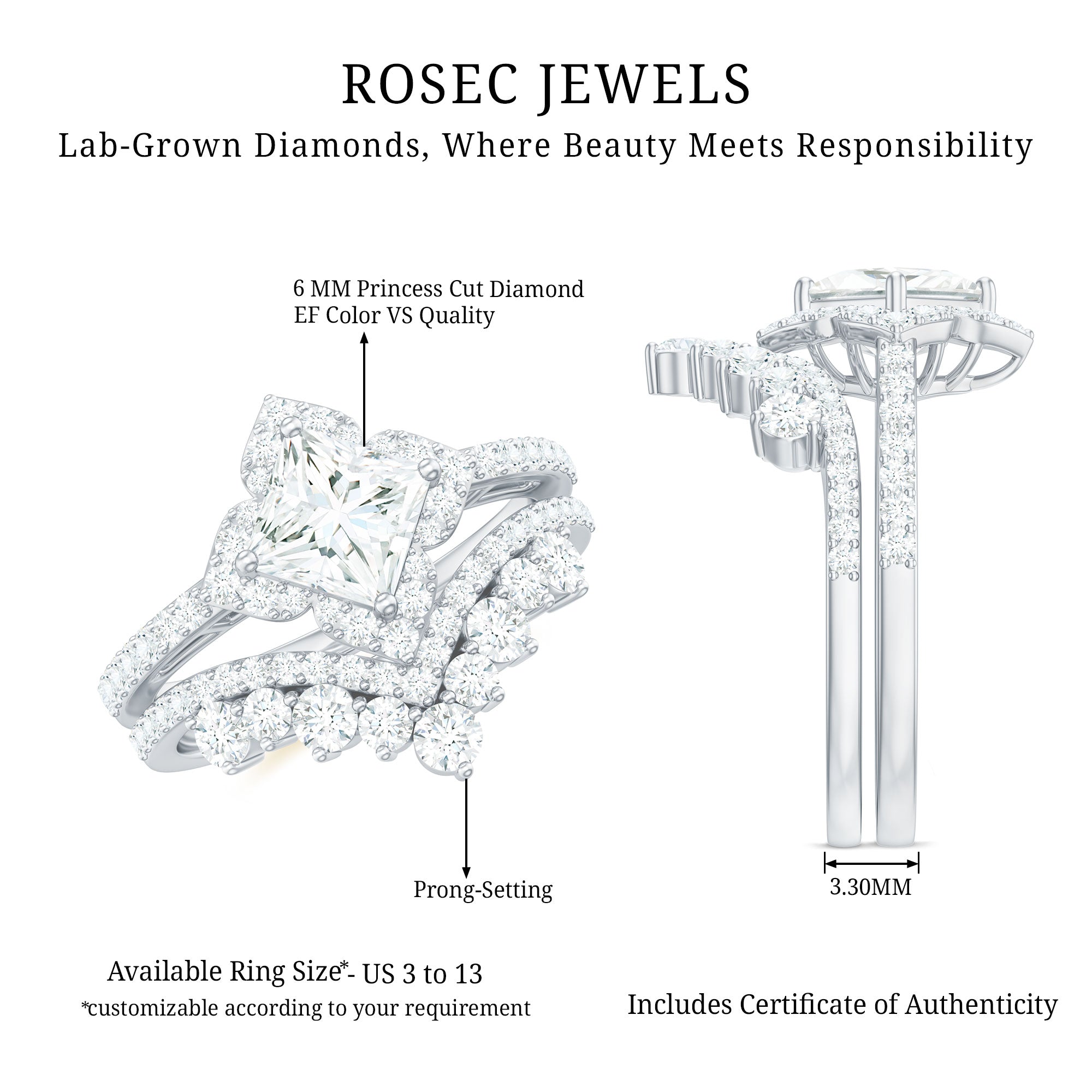 6 MM Princess Cut Lab Grown Diamond Designer Bridal Ring Set