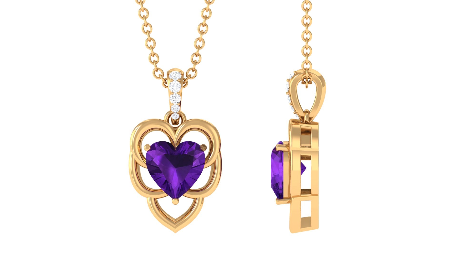 6 MM Real Amethyst Heart Pendant with Diamond