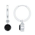 Natural Black Spinel Drop Hoop Earrings