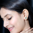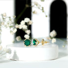 Designed elegantly, these Solitaire Stud Earrings are adorned with Round Cut Created Emerald in Lotus Basket Setting and crafted in Solid Gold to make for a classic choice for different occasions.