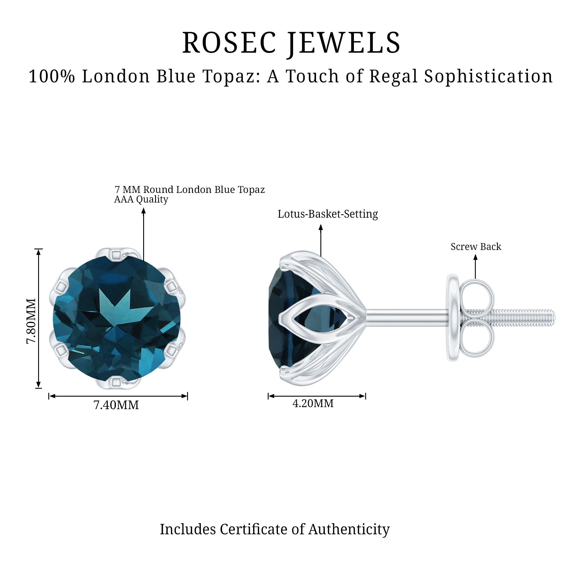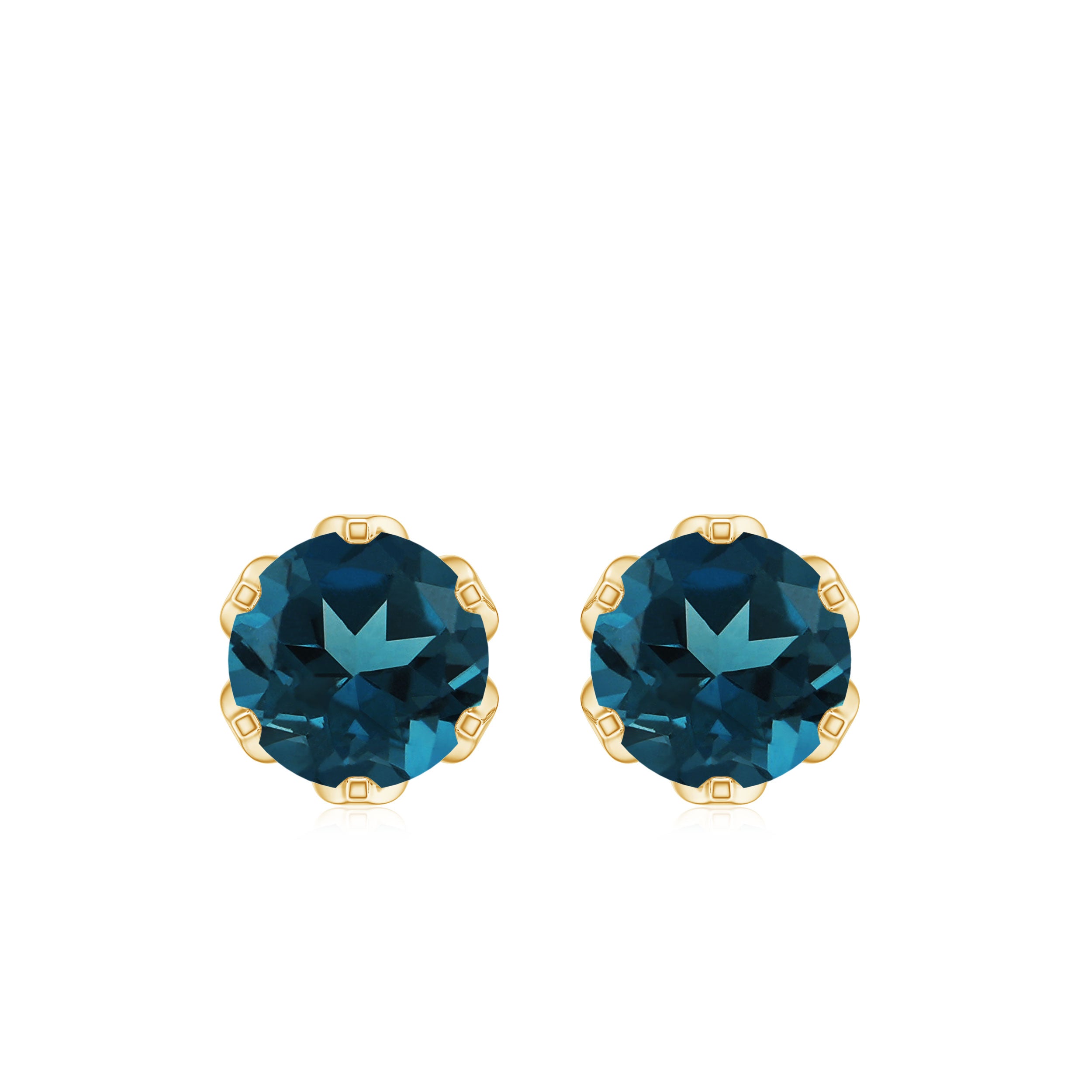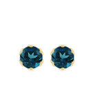 Grace yourself with this beautiful pair of Solitaire Stud Earrings embellished with sparkling London Blue Topaz Solitaire set in Lotus Basket Setting and appears as flower. Solid Gold composed London Blue Topaz Earrings will steal the spotlight for you in the parties and celebrations.