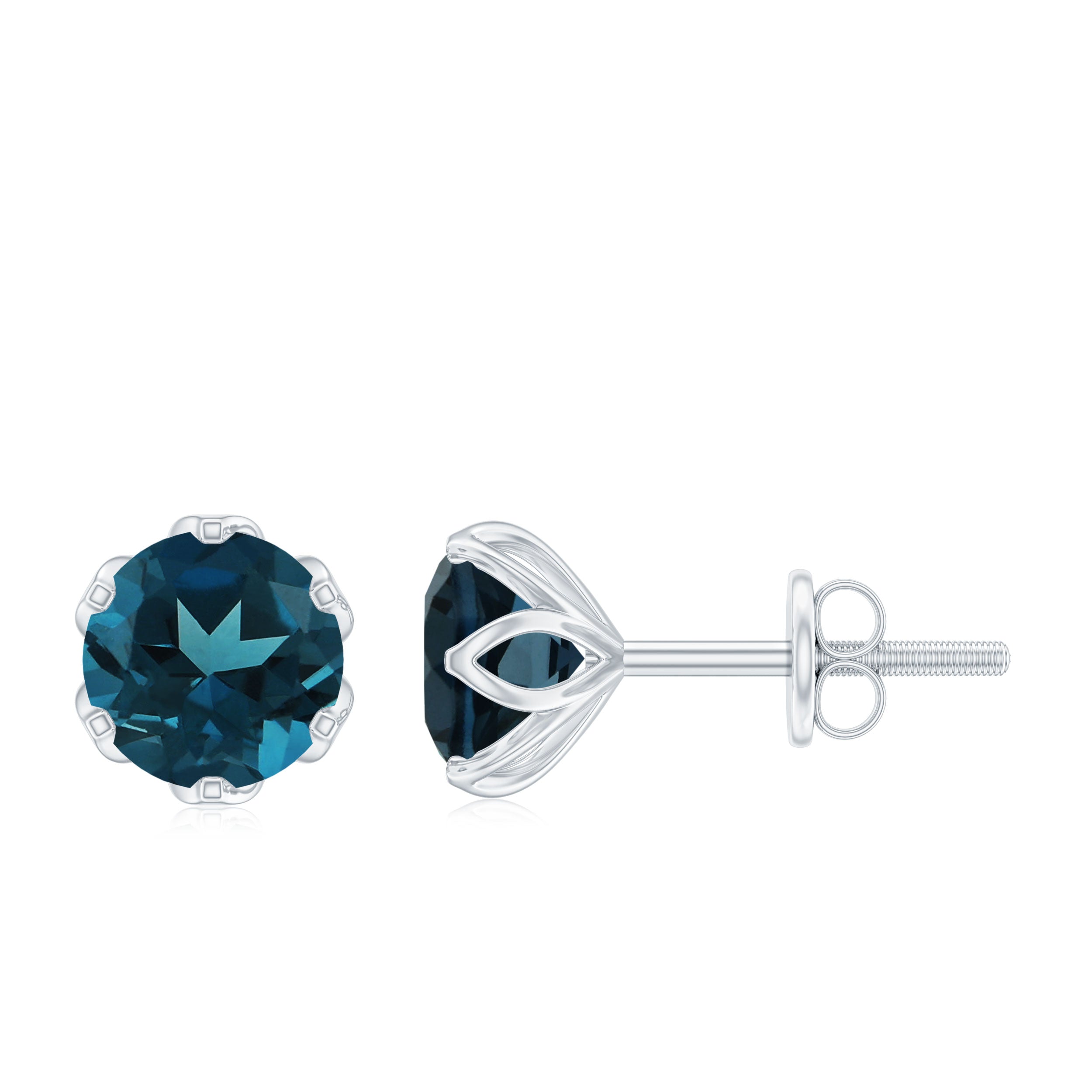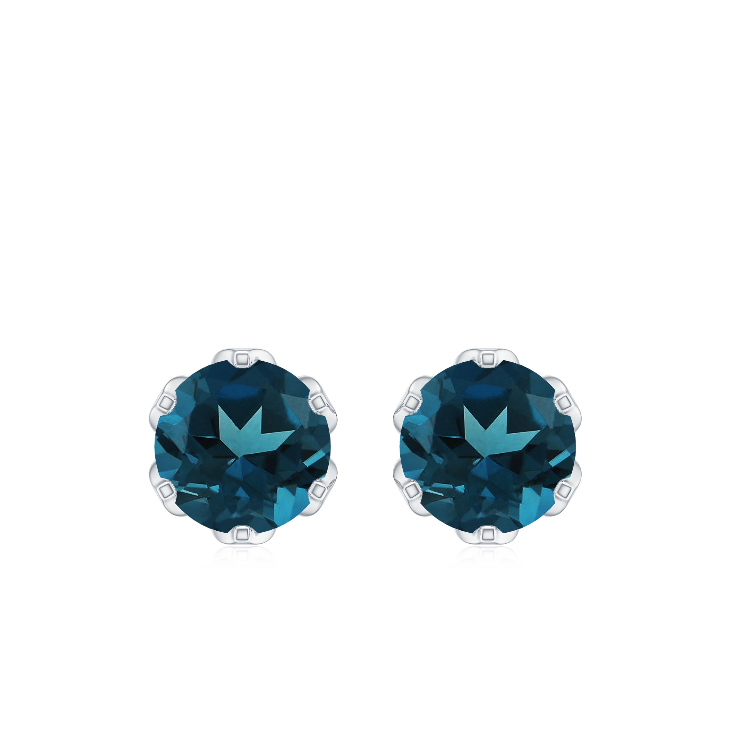 6 MM Round Cut London Blue Topaz Solitaire Stud Earrings for Women