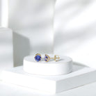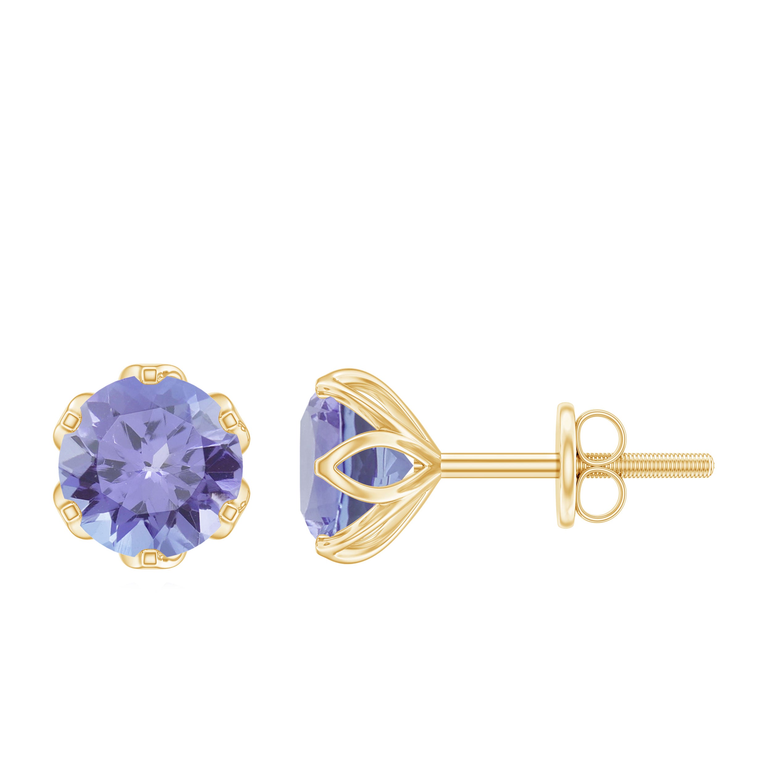 Grace yourself with this beautiful pair of Solitaire Stud Earrings embellished with sparkling Tanzanite Solitaire set in Lotus Basket Setting and appears as flower. Solid Gold composed Tanzanite Earrings will steal the spotlight for you in the parties and celebrations.