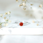 6 MM Round Fire Opal Solitaire Ring in Lotus Basket Setting