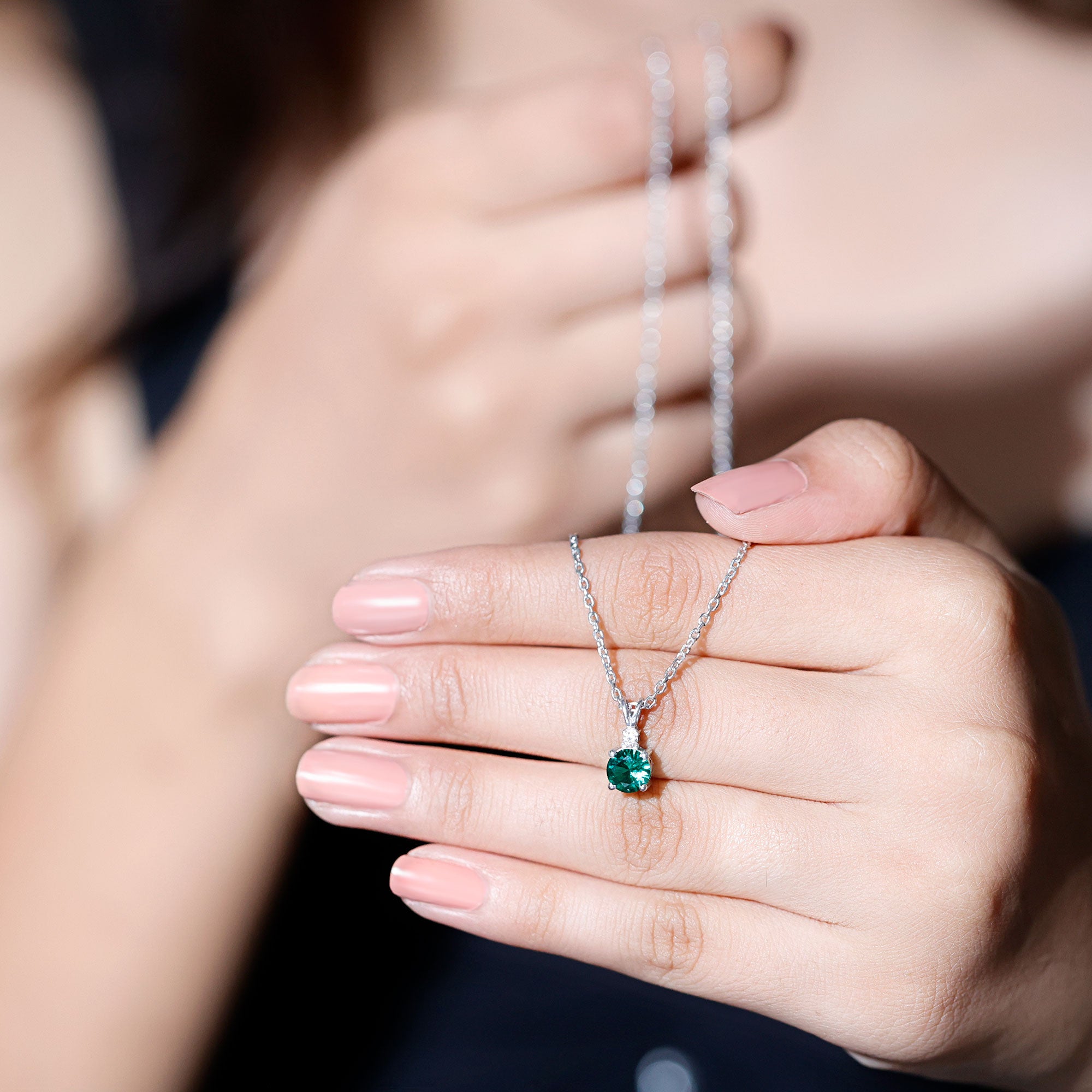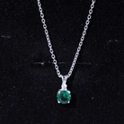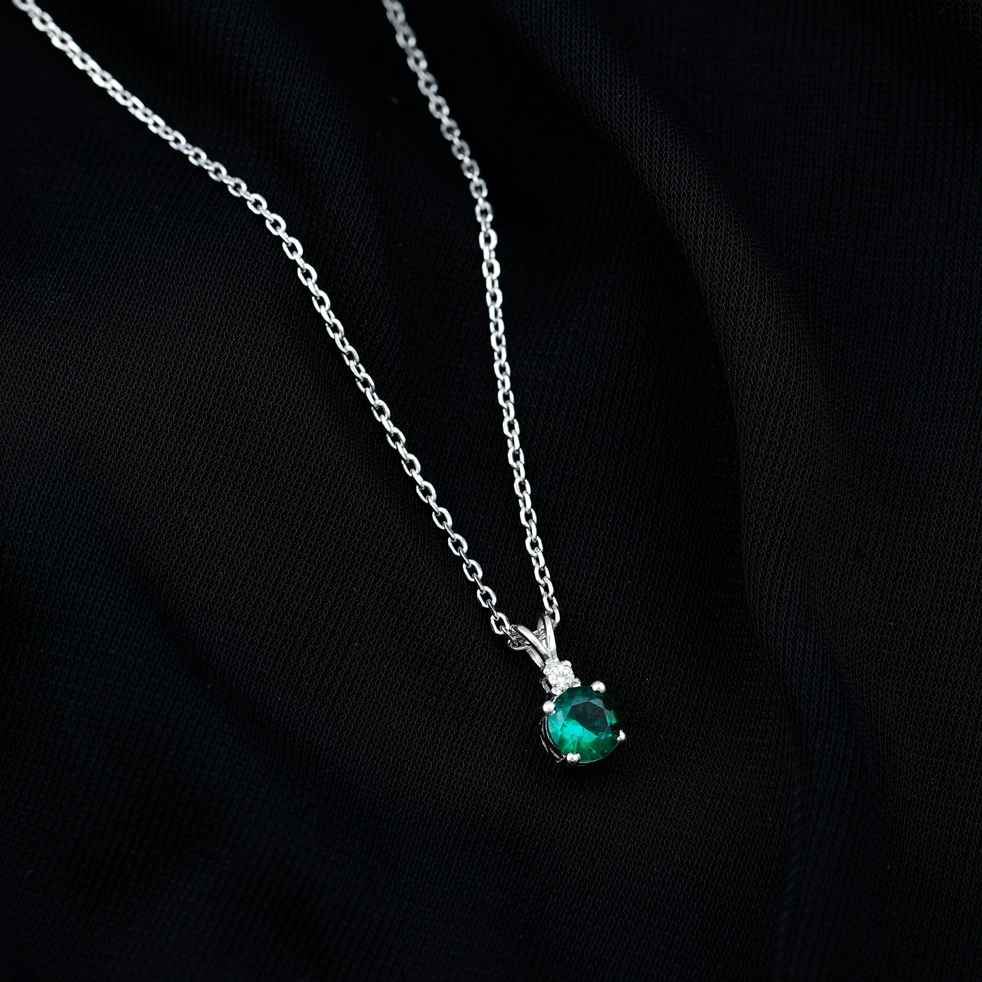 6 MM Round Lab Grown Emerald Solitaire Pendant Necklace With Silver Chain