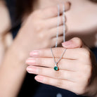 Create an unforgettable experience with this classic Round Cut Pendant, crafted to enchant the heart of every woman. This sophisticated Solitaire Pendant Necklace is made from 14k white gold plated sterling silver and features a stunning 6 MM lab grown emerald round cut gemstone accompanied by a delicate moissanite. The Emerald Solitaire Necklace is paired with a matching cable chain that fastens with a lobster clasp, allowing for easy length adjustments. The pendant bail showcases a rabbit ear design, giving it a unique appearance. The secure prong setting maximizes the visibility of the dazzling gemstone for all to admire. Its timeless round cut design makes it easy to layer with different chain or another gemstone necklace. The AAAA quality emerald boasts a mesmerizing deep green hue that sparkles beautifully in the light. The simple yet refined design of this Lab Grown Emerald Necklace makes it suitable for any occasion, whether casual or formal. It is the ideal accessory to elevate any outfit with a hint of elegance. With its enduring design and classic charm, this Green Gem Necklace is destined to become a cherished piece for many years ahead.