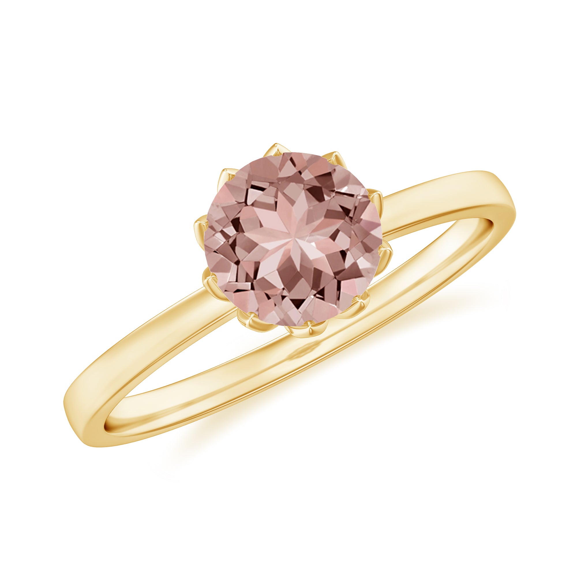 6 MM Round Morganite Solitaire Ring in Lotus Basket Setting