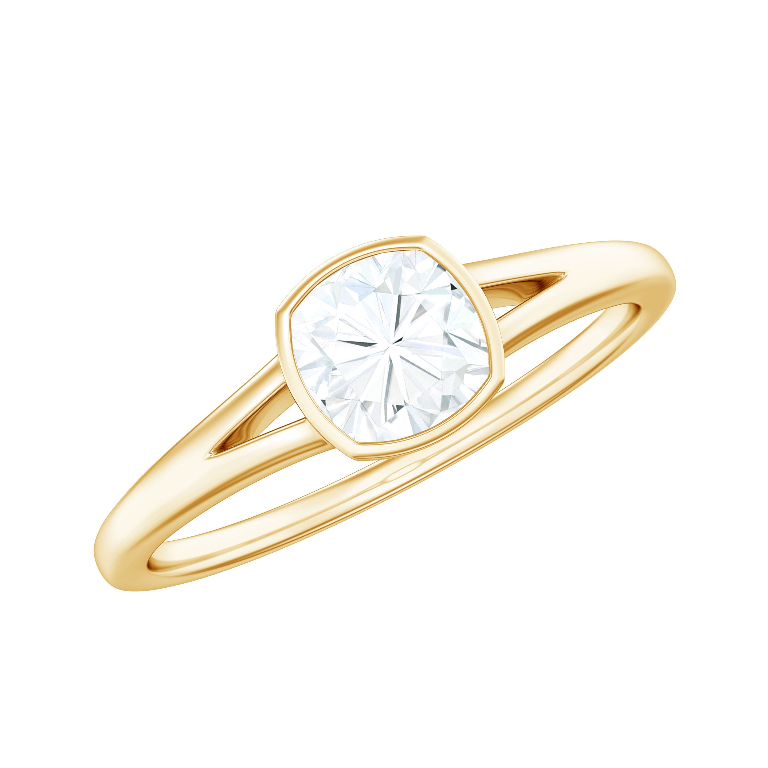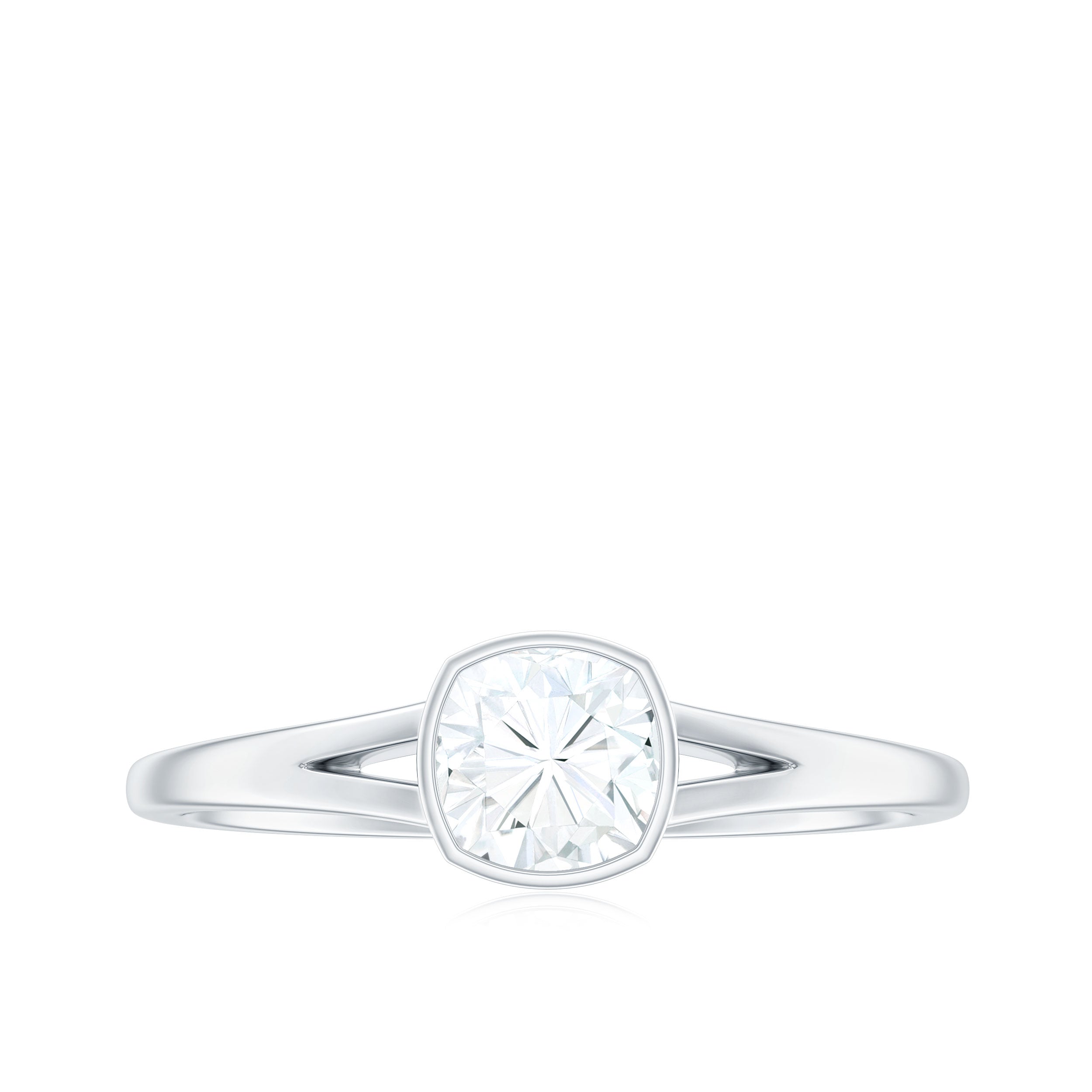 6mm Cushion Cut Moissanite Solitaire Split Shank Ring