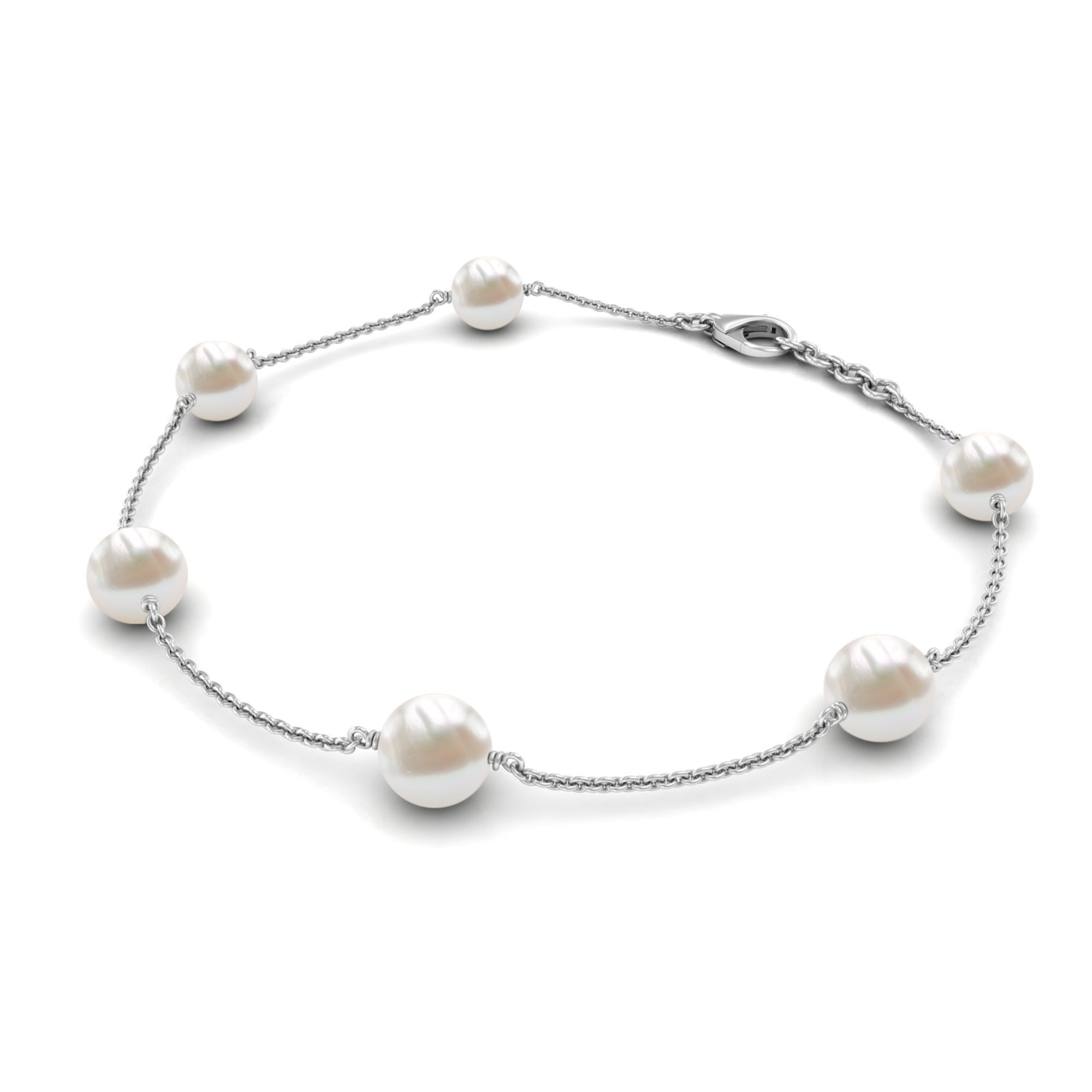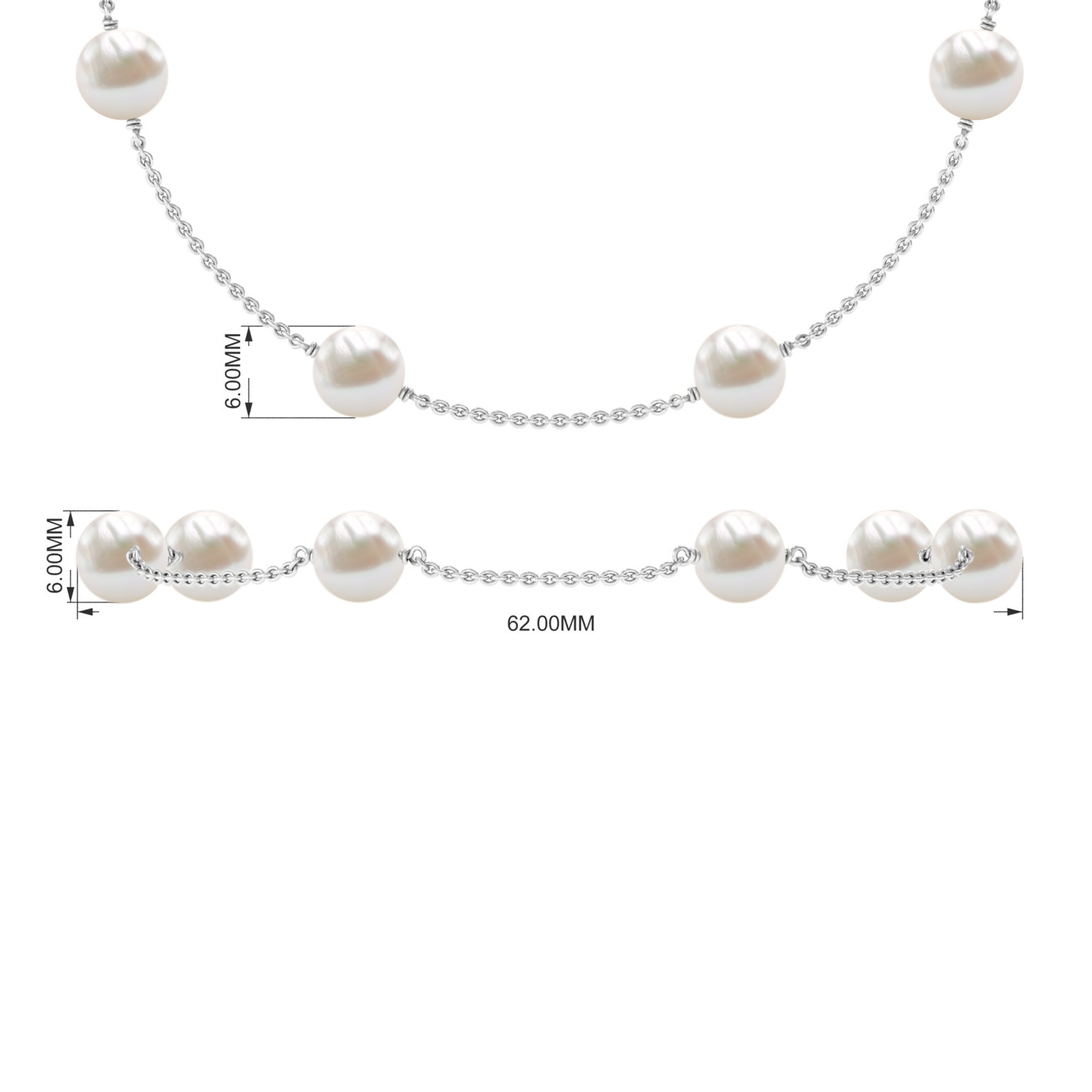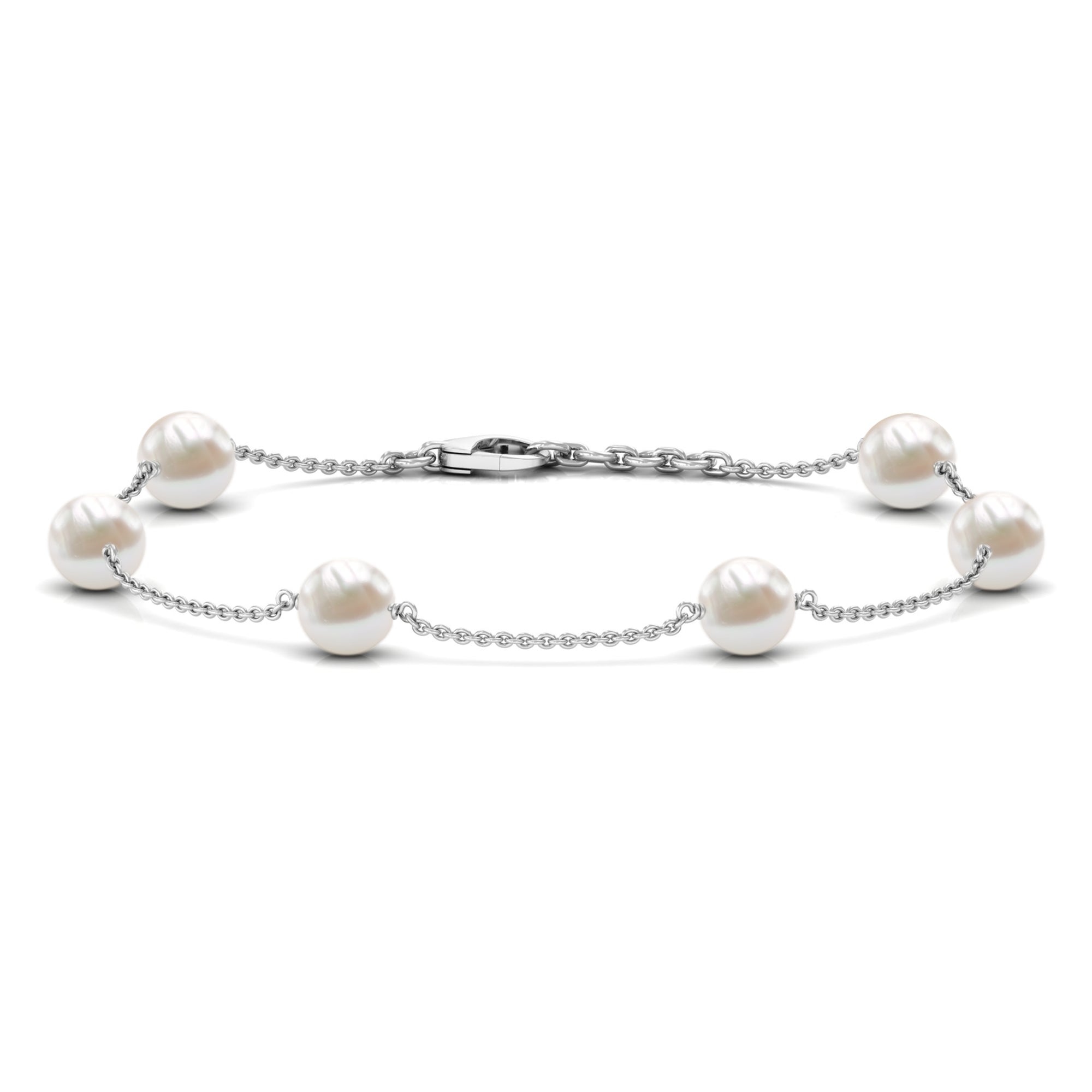 6mm Round Freshwater White Pearl Station Chain Bracelet